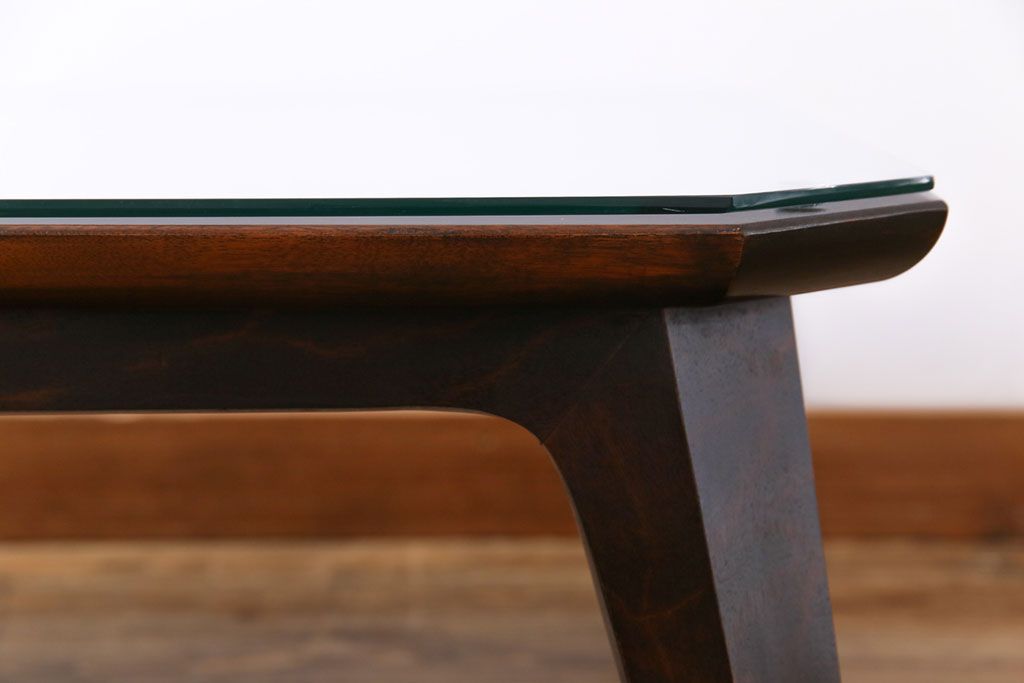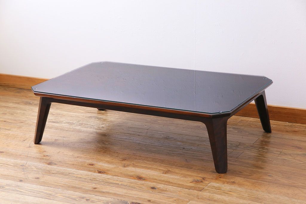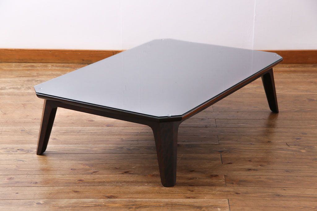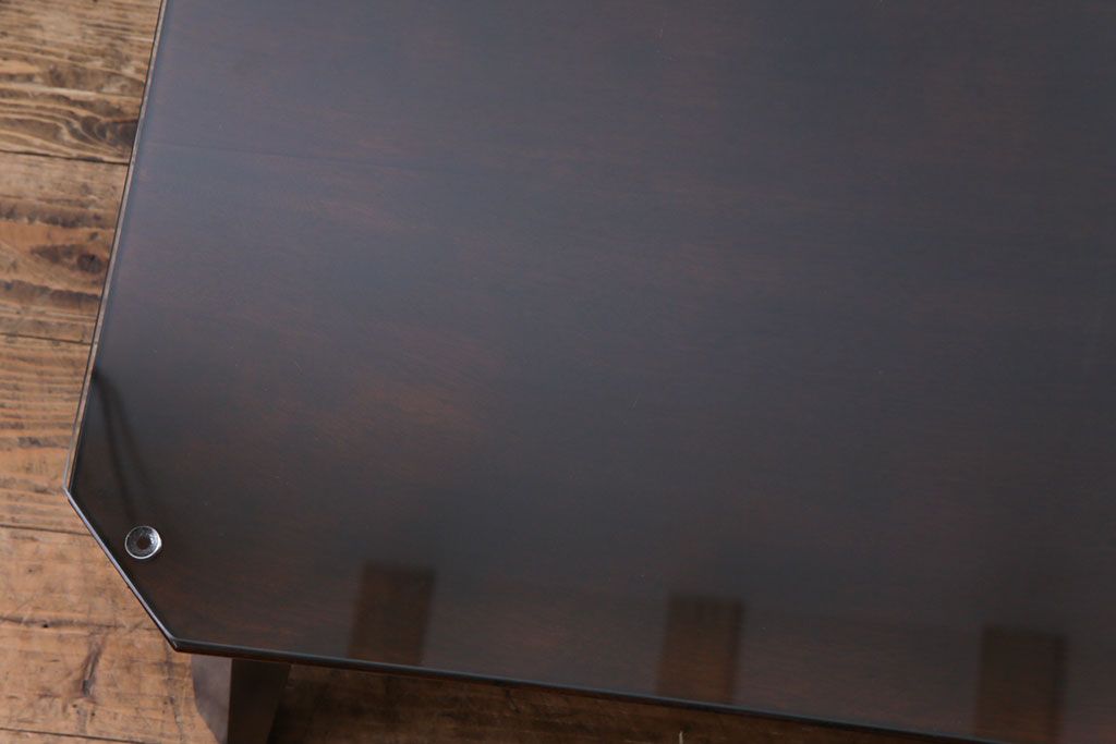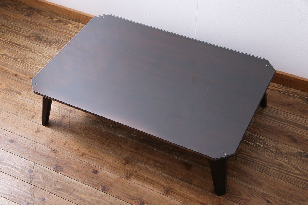 ラフジュ工房> テーブル> 座卓 > ビンテージ 松本民芸家具 面取りデザインがおしゃれなガラス天板付きセンターテーブル(ローテーブル、座卓)