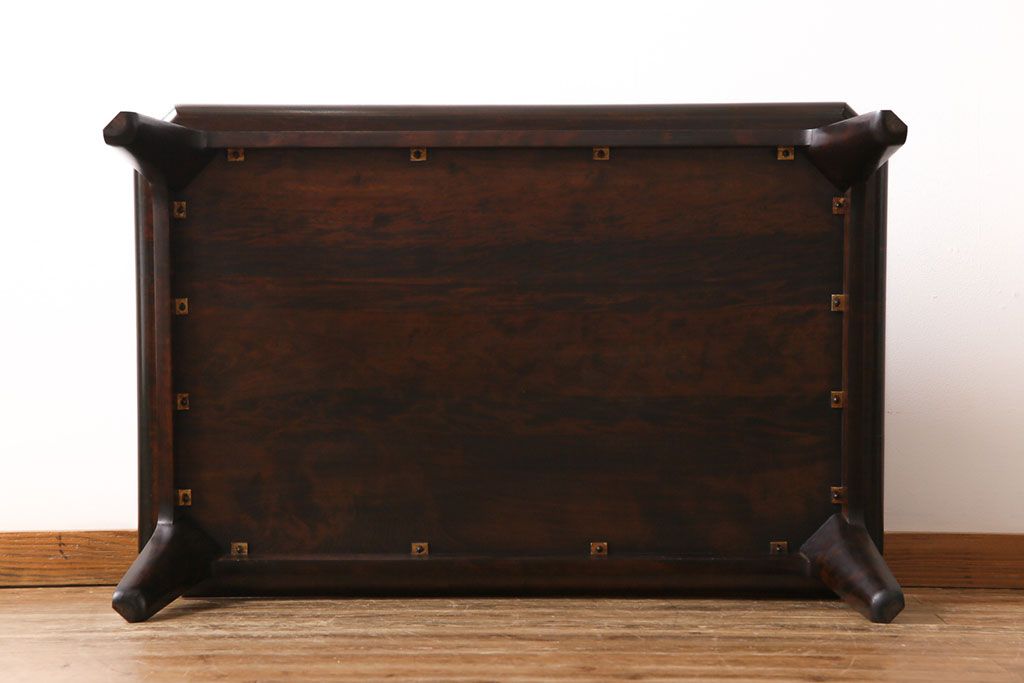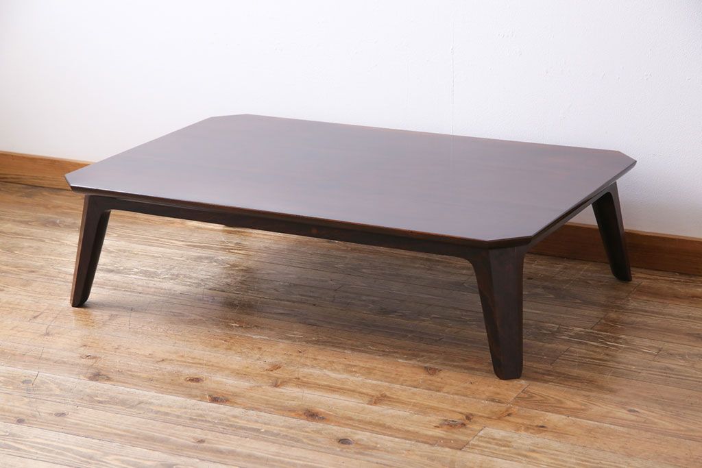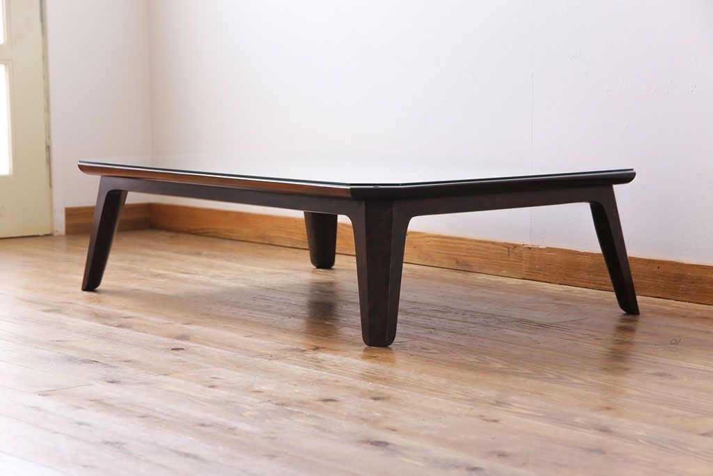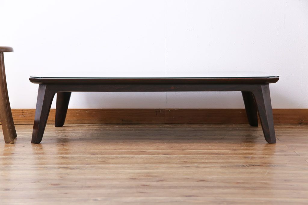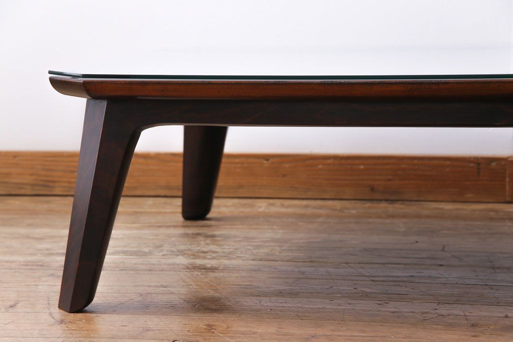 ラフジュ工房> テーブル> 座卓 > ビンテージ 松本民芸家具 面取りデザインがおしゃれなガラス天板付きセンターテーブル(ローテーブル、座卓)