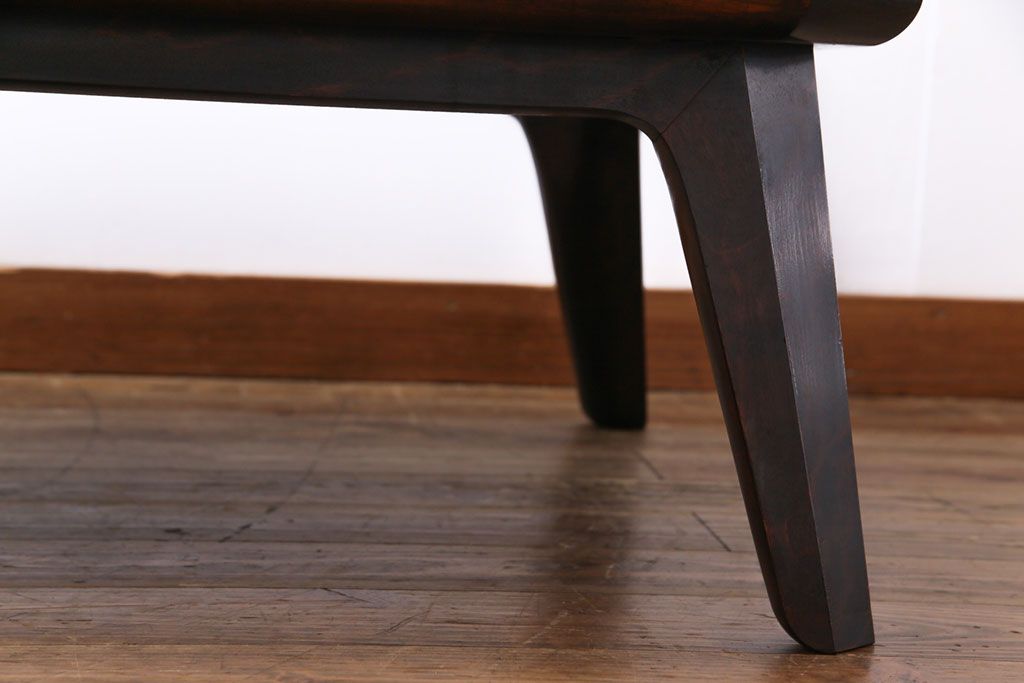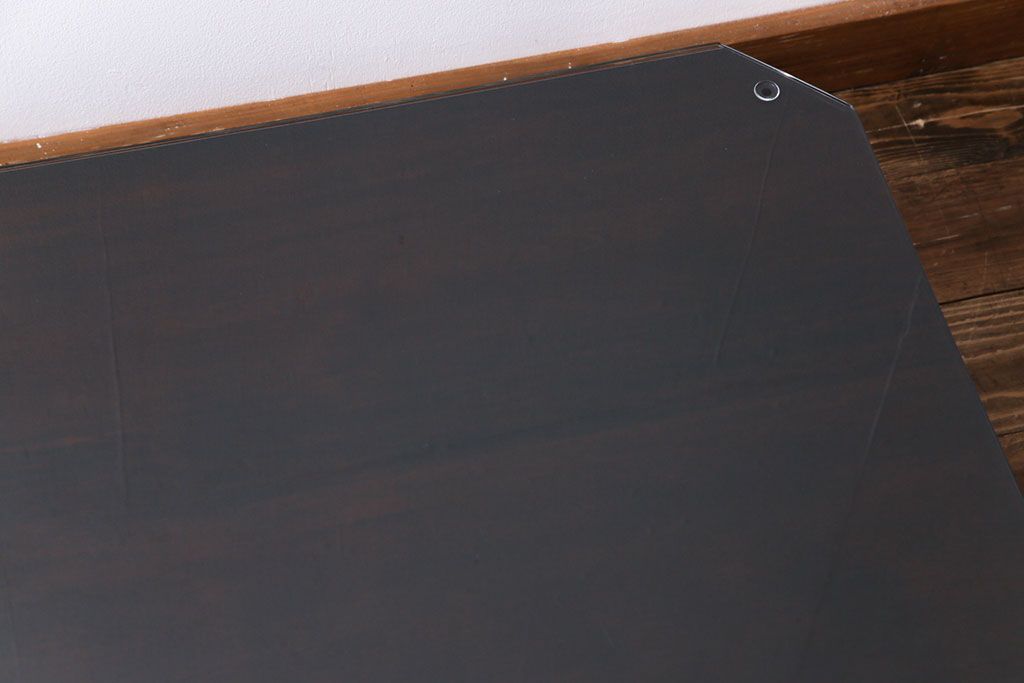 ラフジュ工房> 民芸家具 > ビンテージ 松本民芸家具 面取りデザインがおしゃれなガラス天板付きセンターテーブル(ローテーブル、座卓)