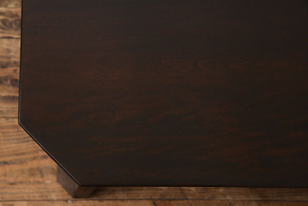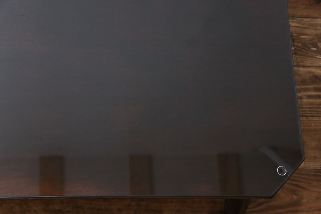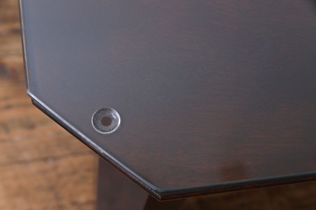 ビンテージ 松本民芸家具 面取りデザインがおしゃれなガラス天板付きセンターテーブル(ローテーブル、座卓)