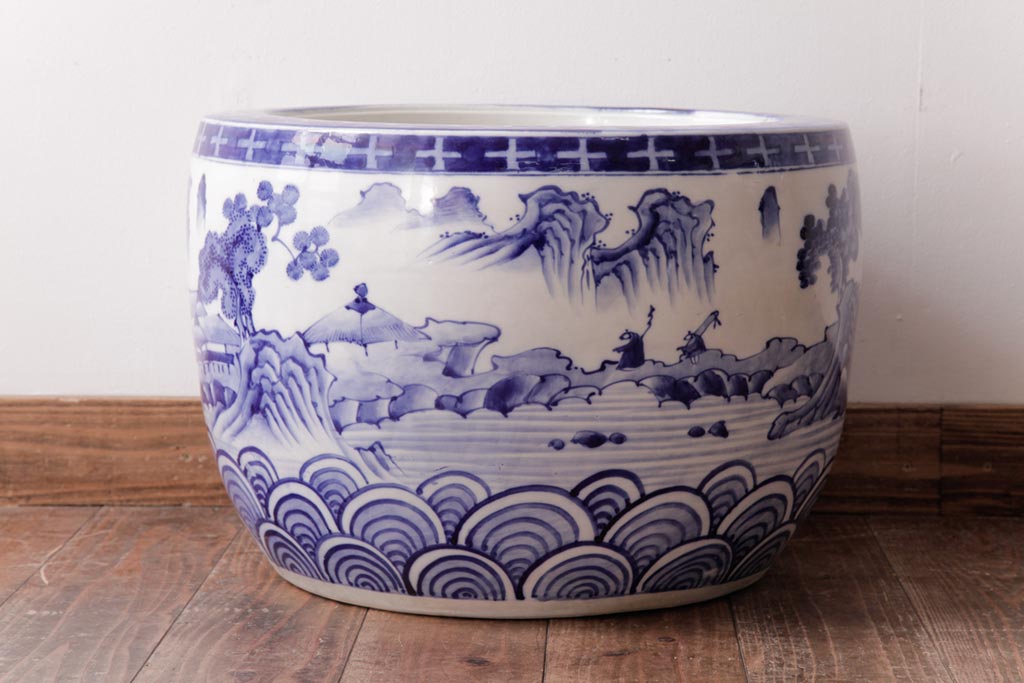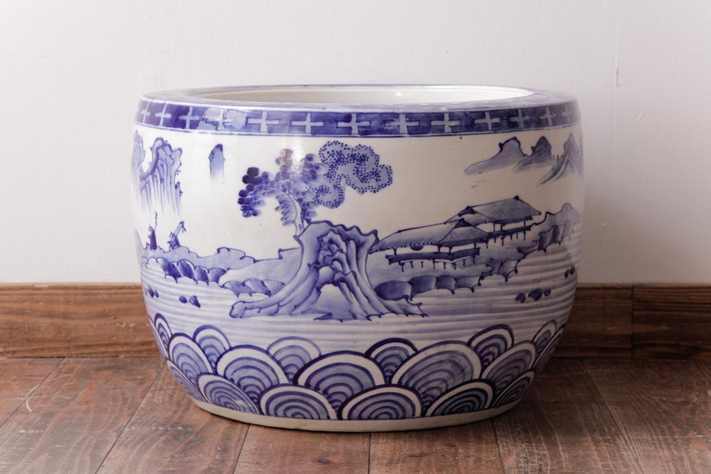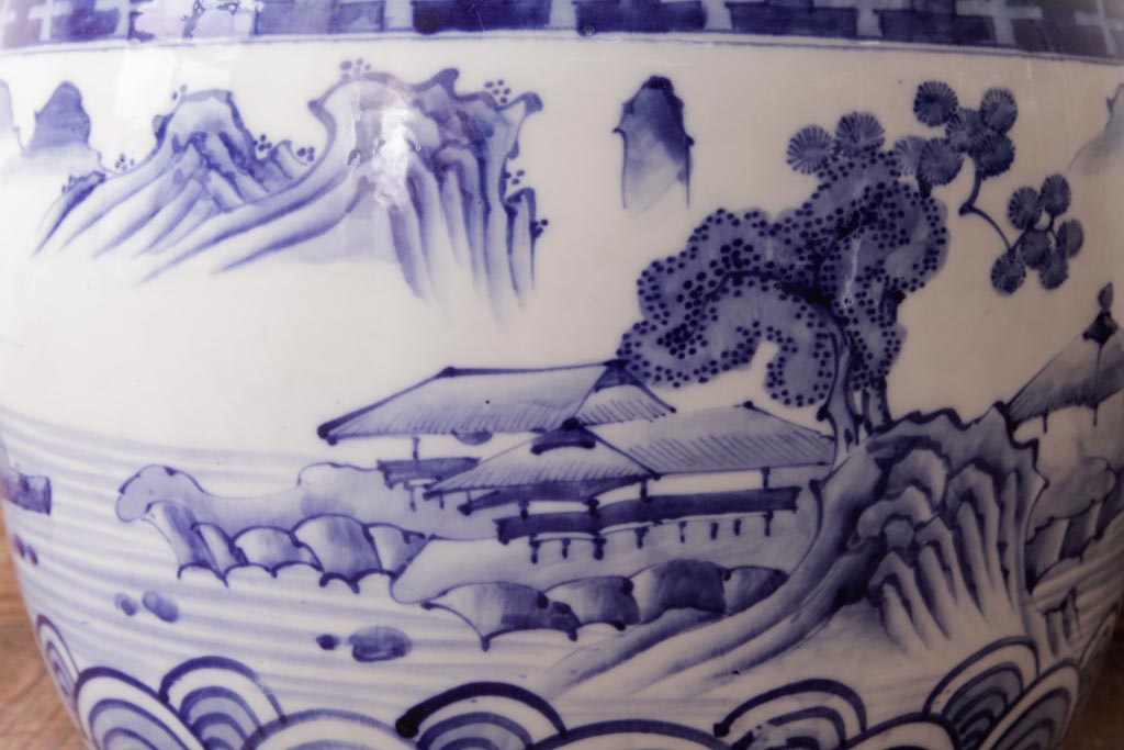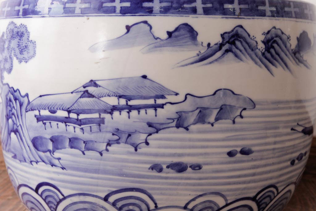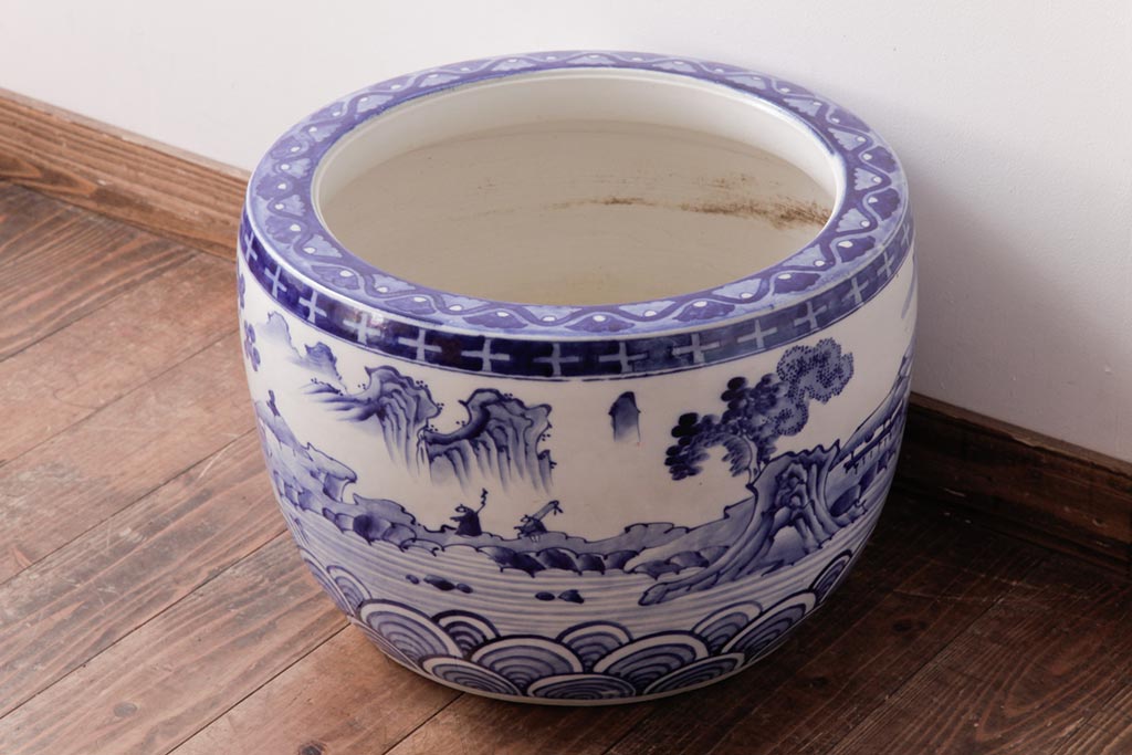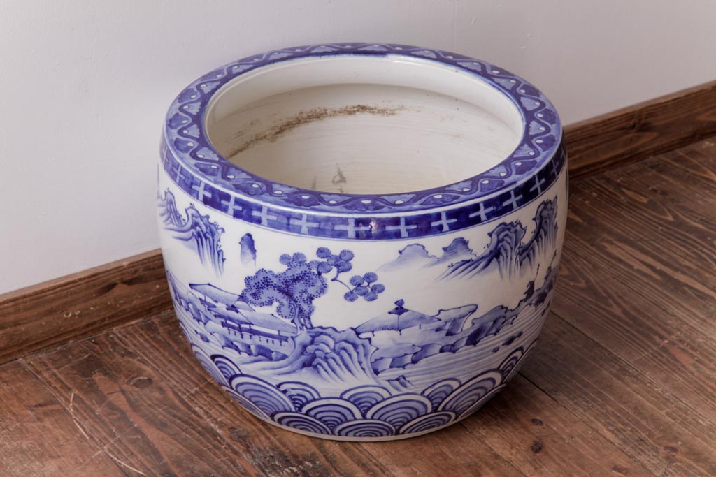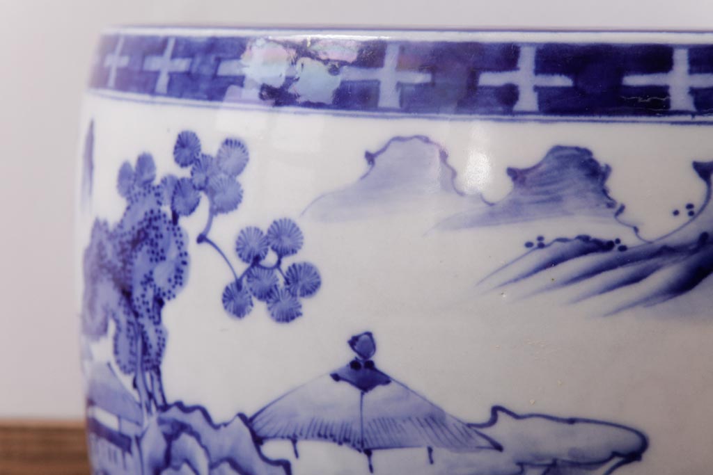 アンティーク雑貨 昭和初期 和の雰囲気を高める山水図の瀬戸火鉢(鉢カバー)