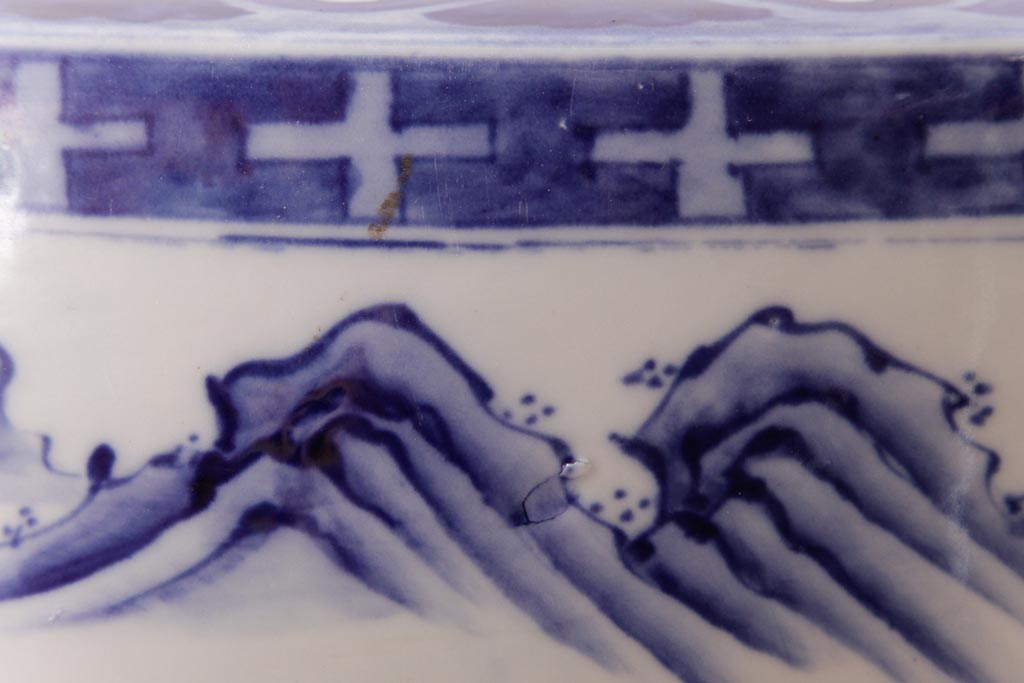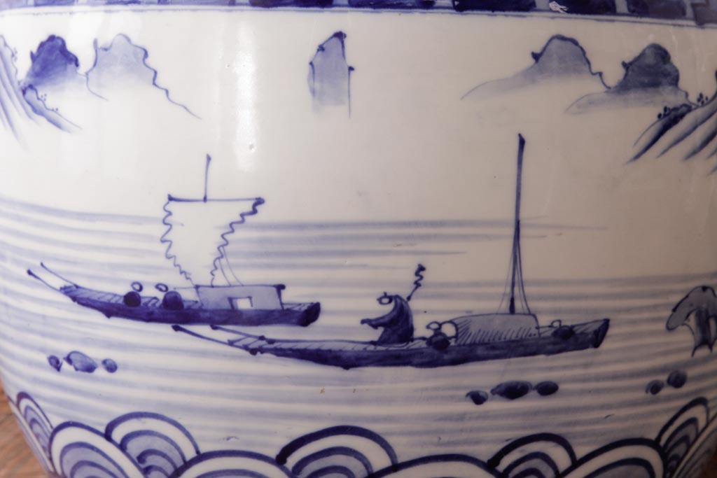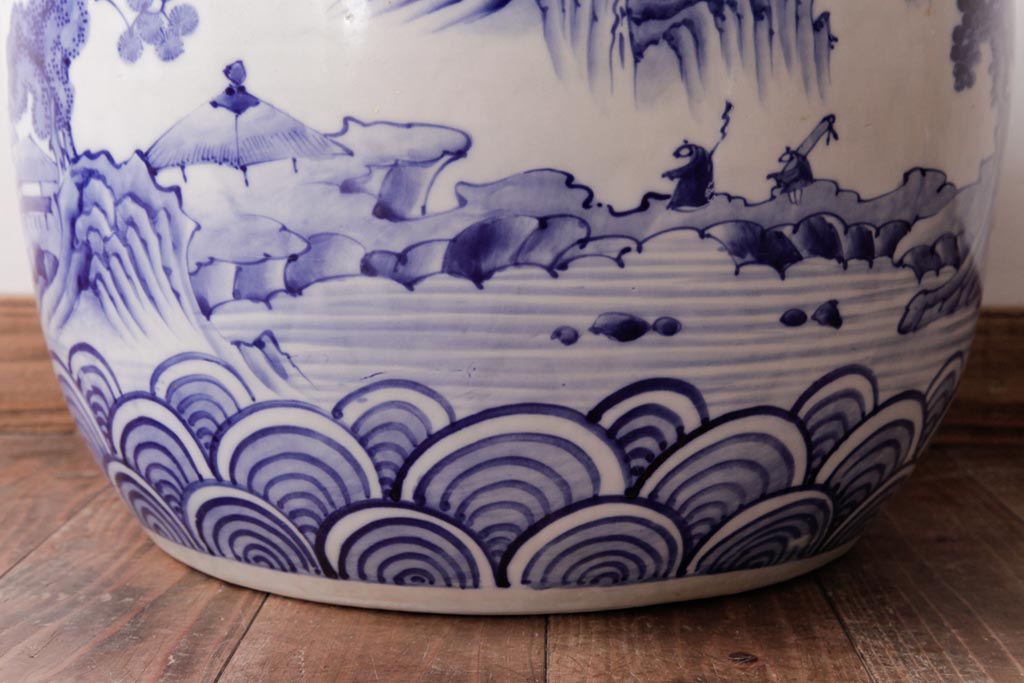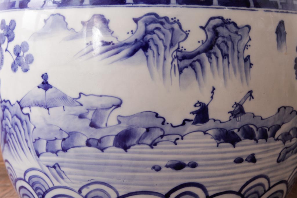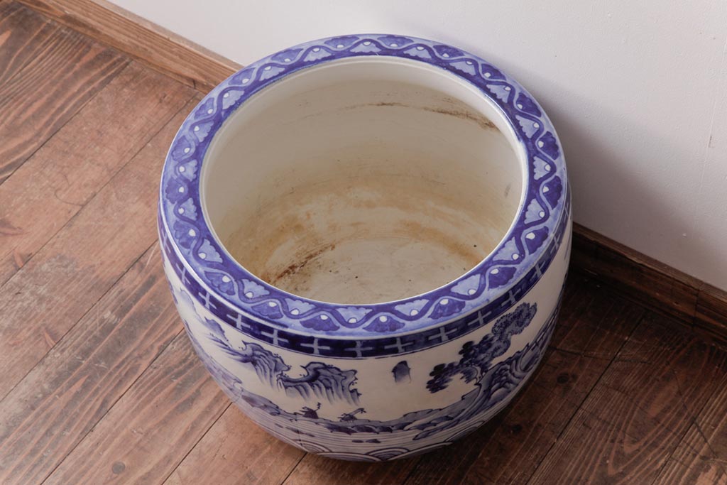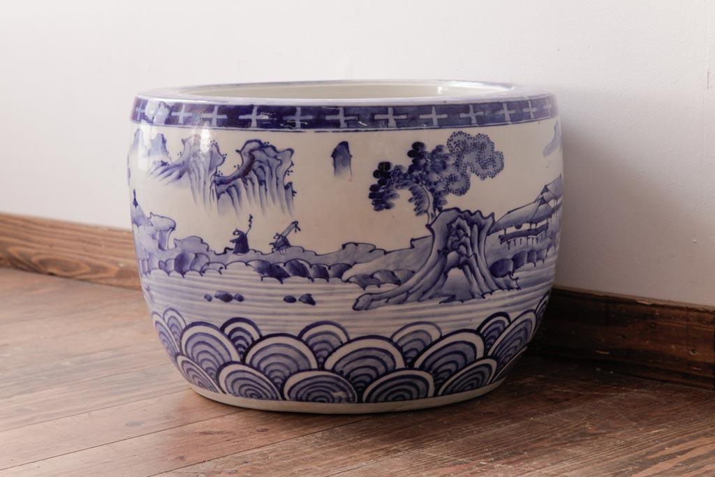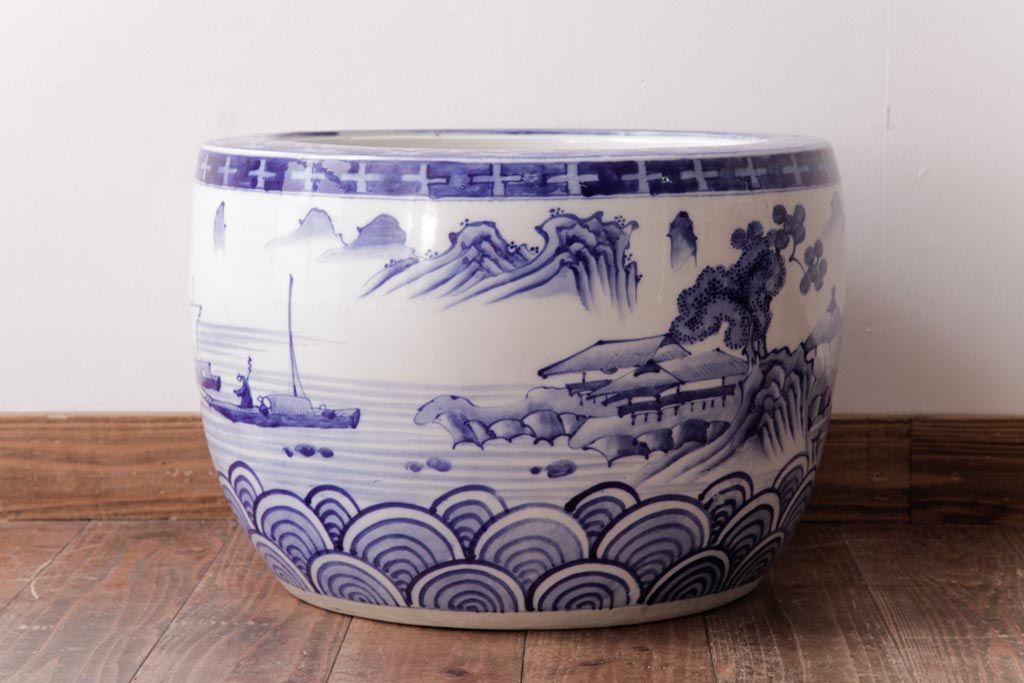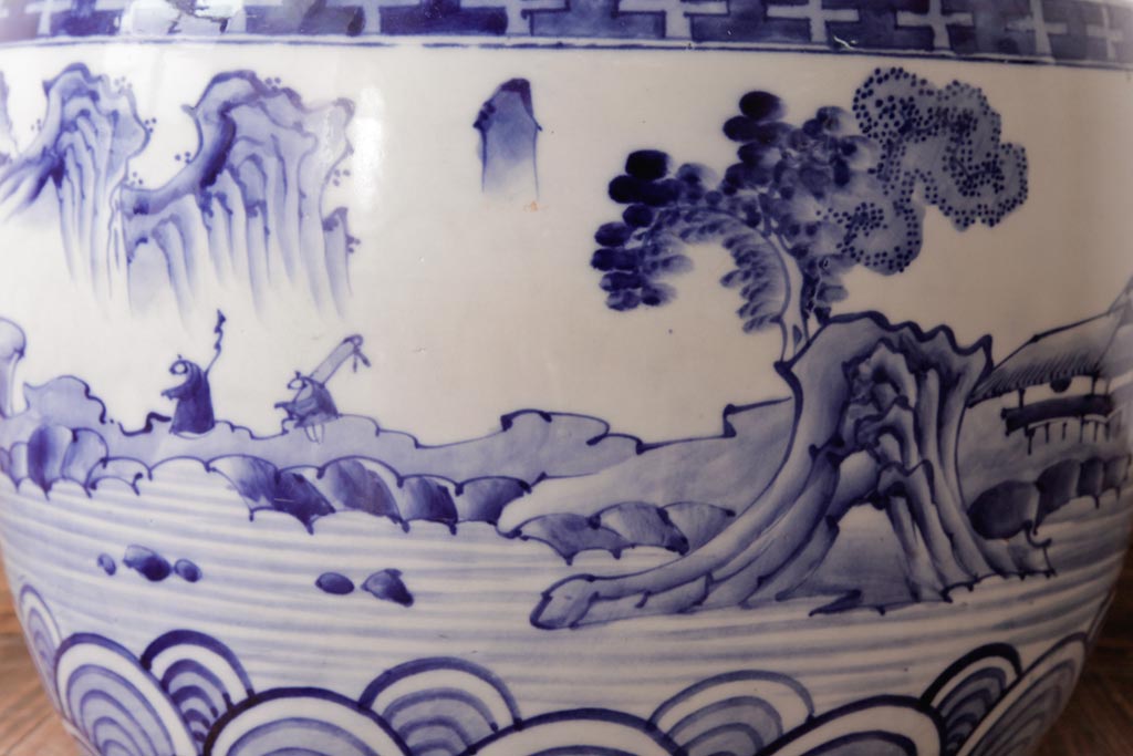 アンティーク雑貨 昭和初期 和の雰囲気を高める山水図の瀬戸火鉢(鉢カバー)
