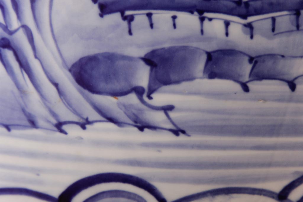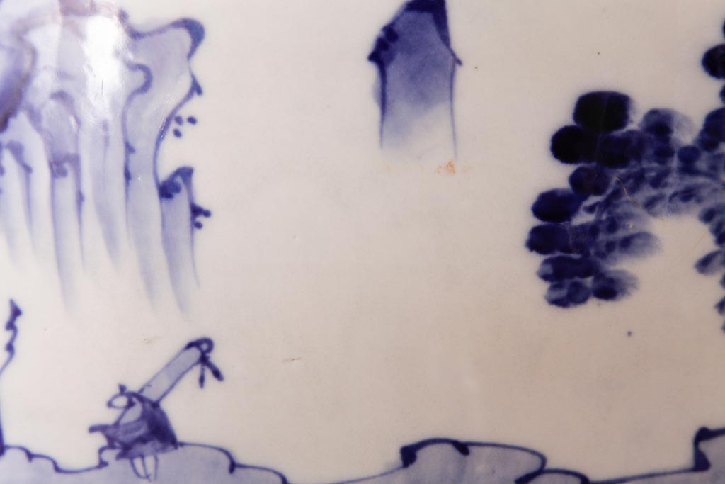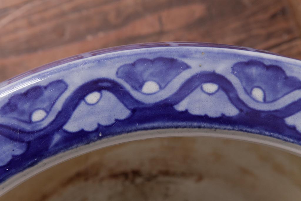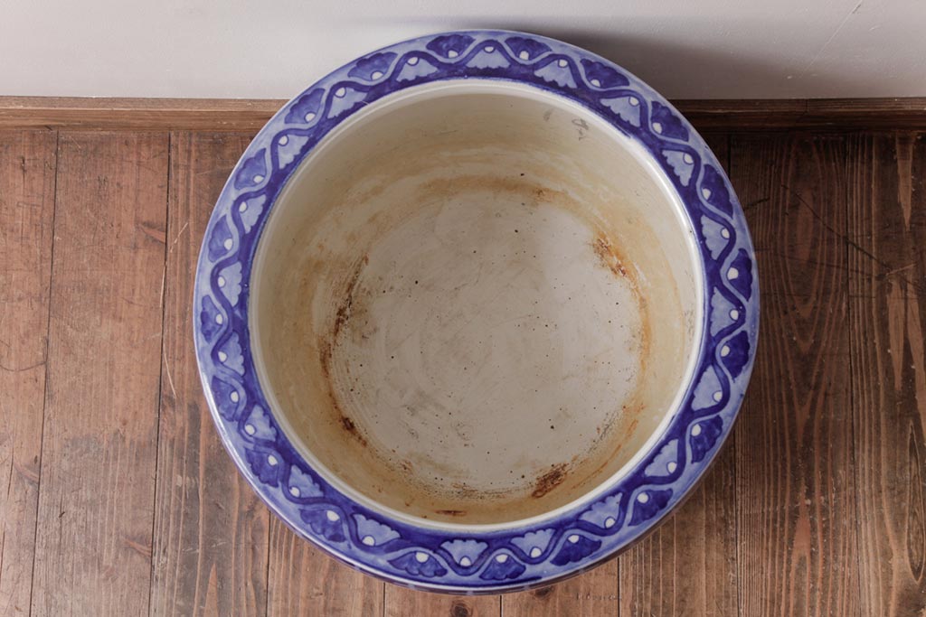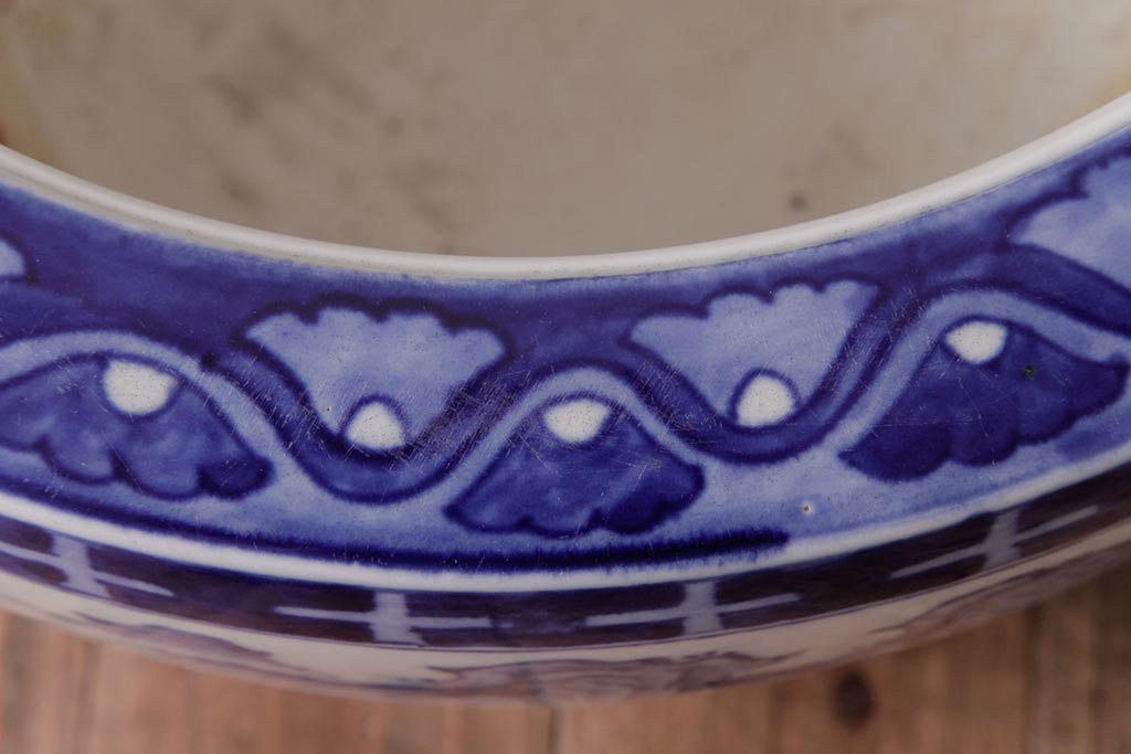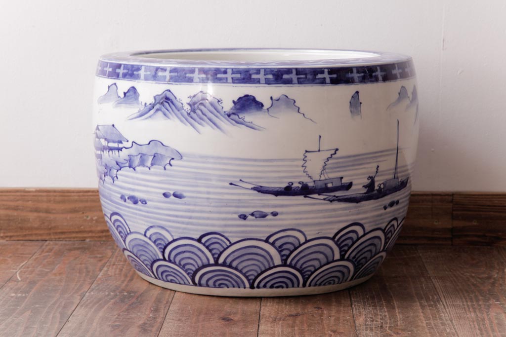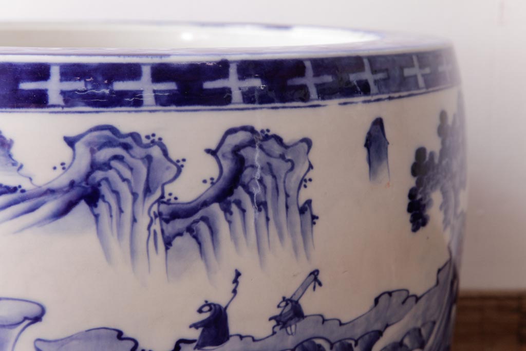 アンティーク雑貨 昭和初期 和の雰囲気を高める山水図の瀬戸火鉢(鉢カバー)