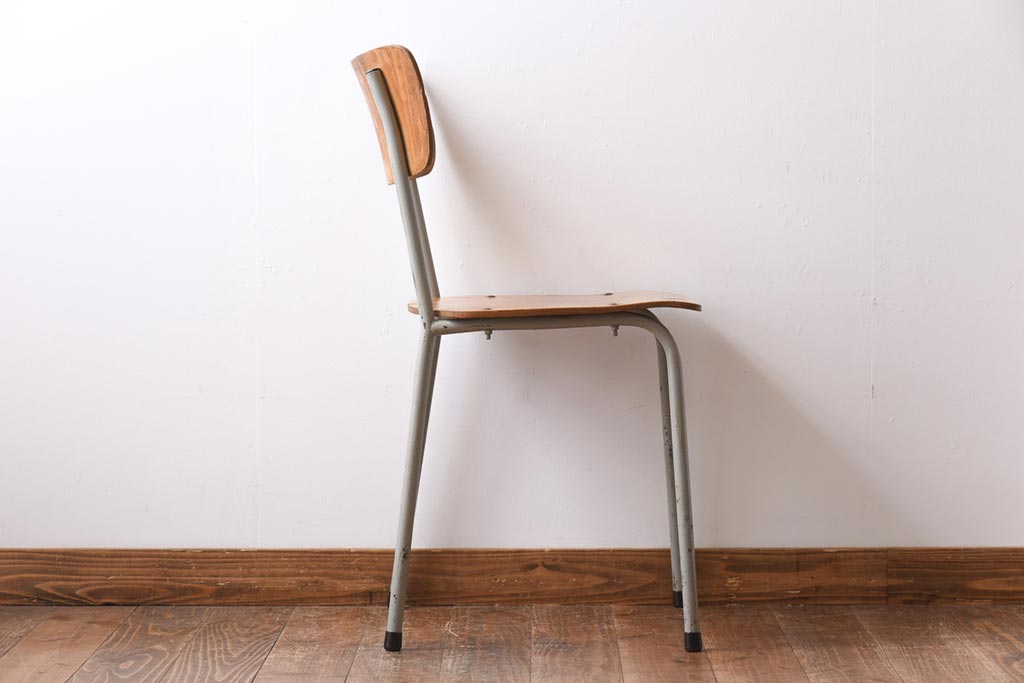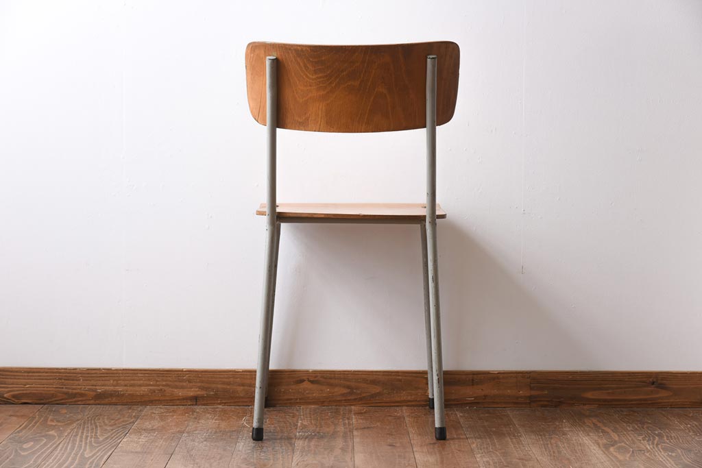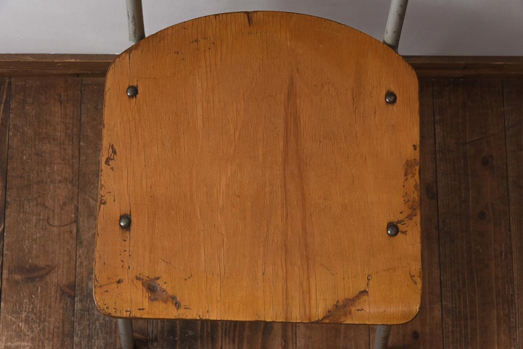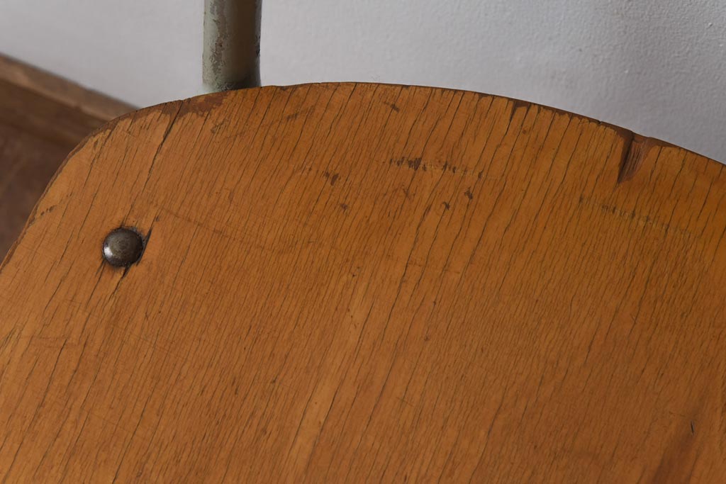 イギリスビンテージ 古い木と鉄脚がレトロなスクールチェア(ワークチェア)(3)です。