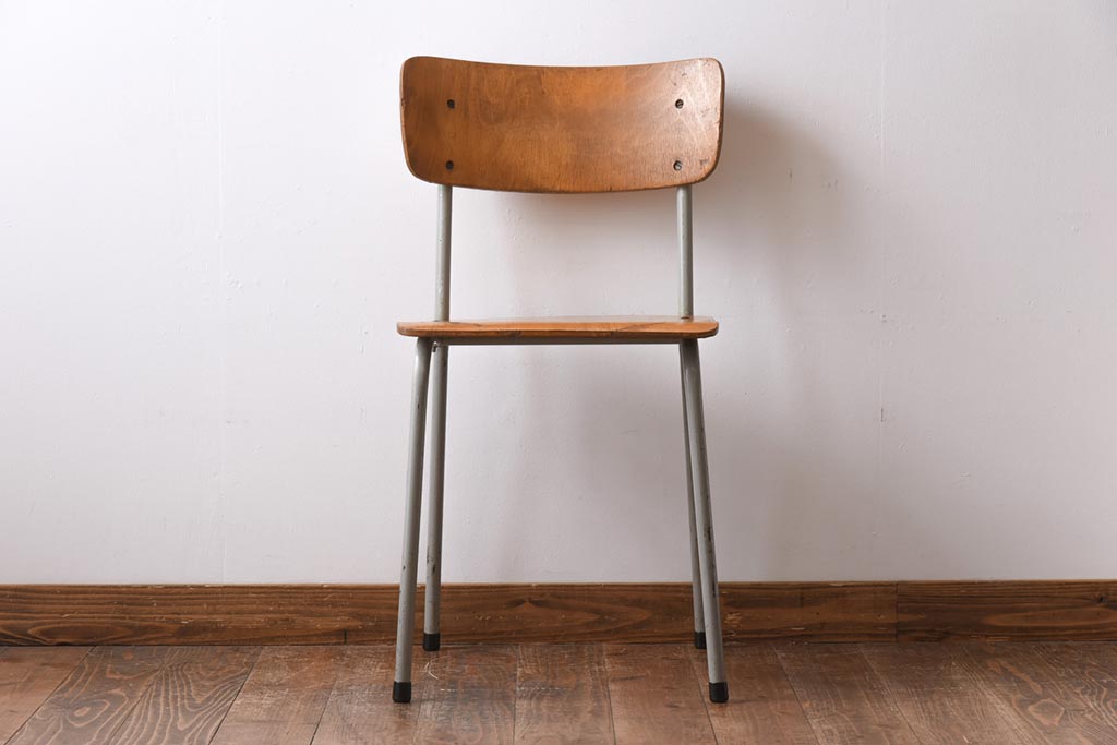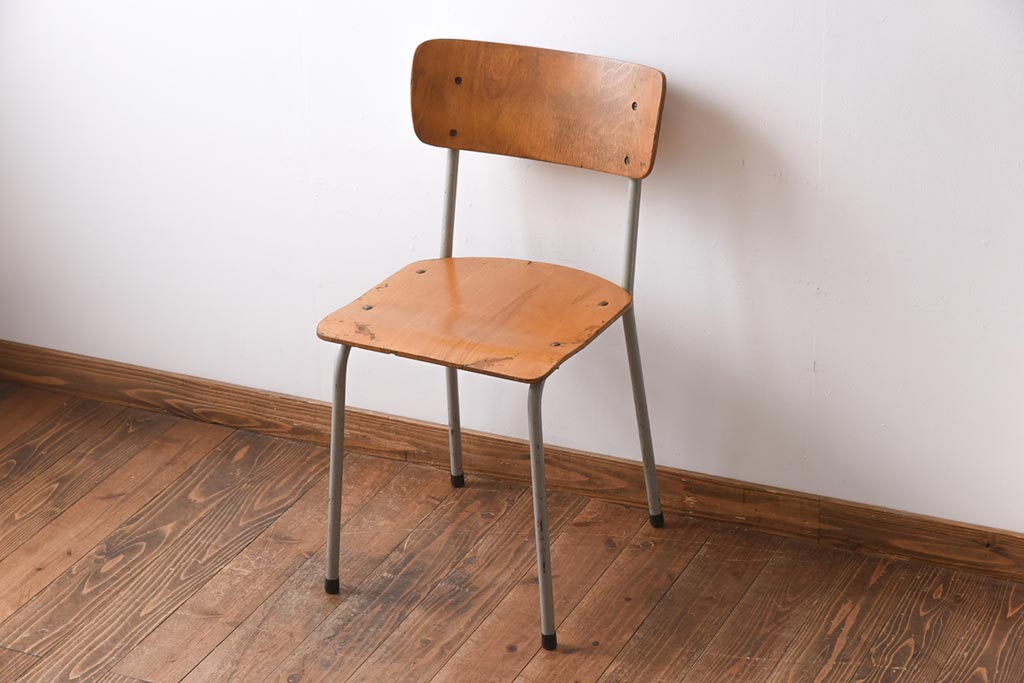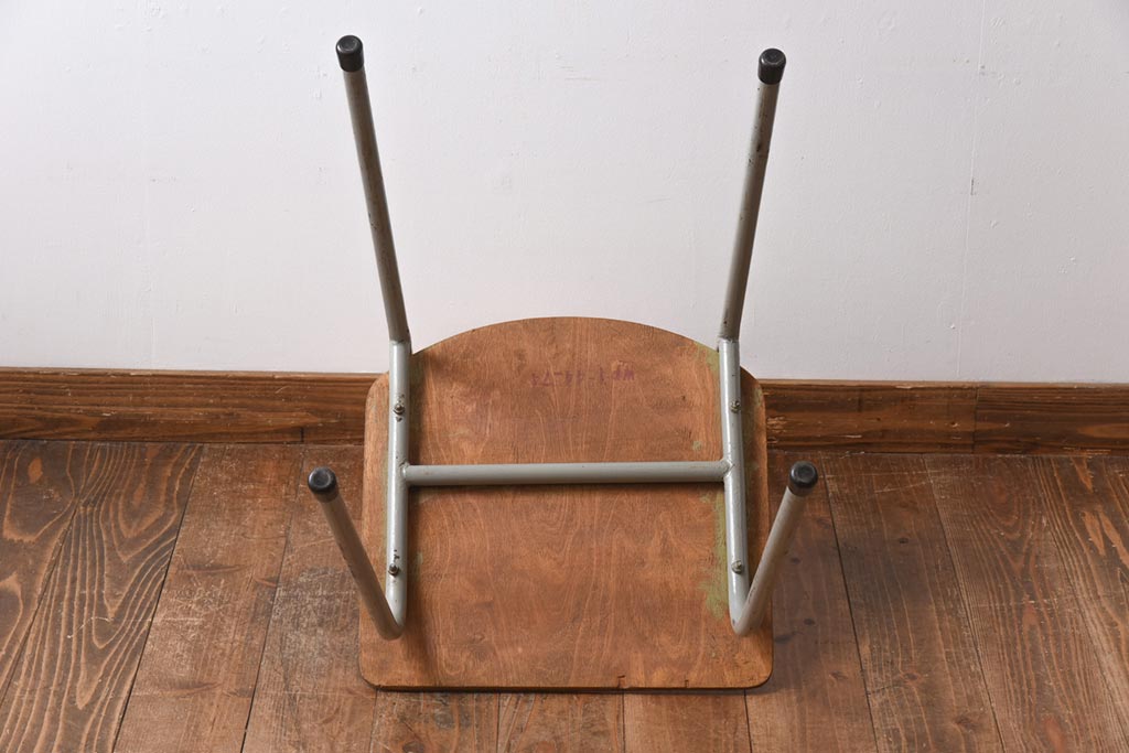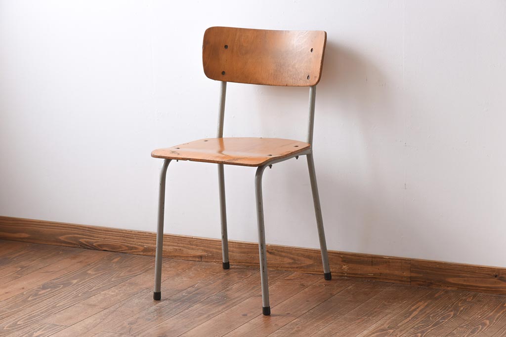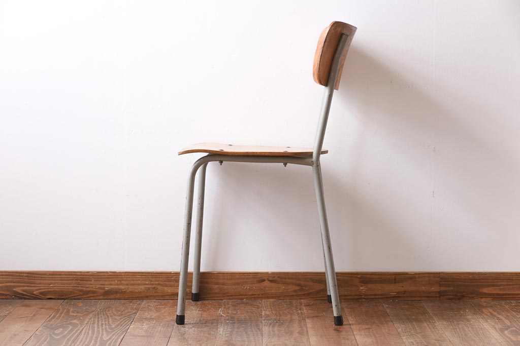 イギリスビンテージ 古い木と鉄脚がレトロなスクールチェア(ワークチェア)(3)です。