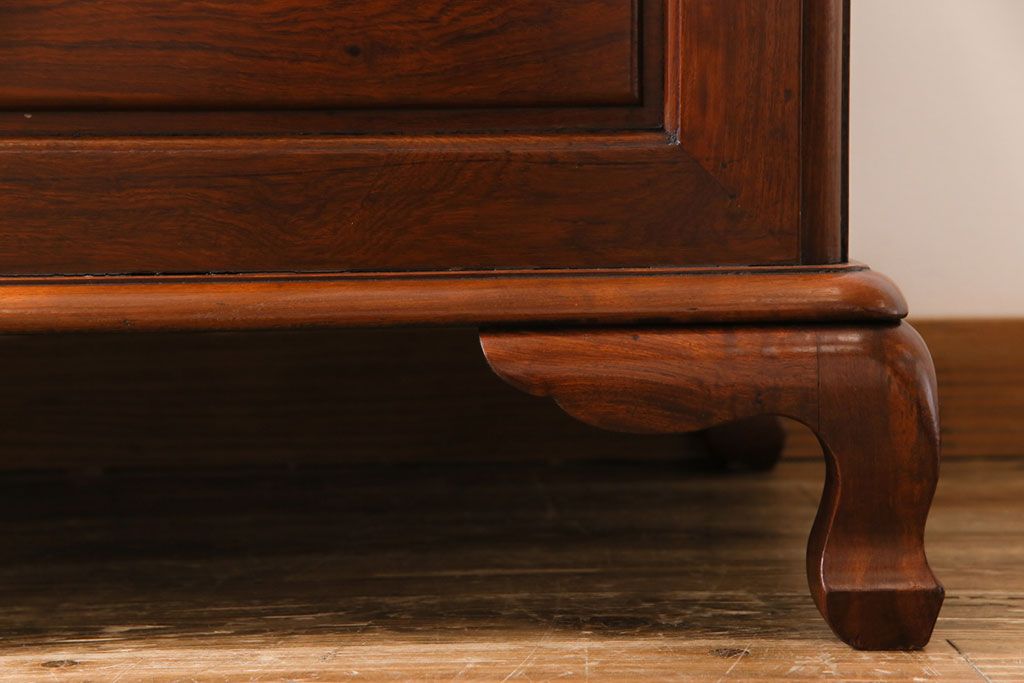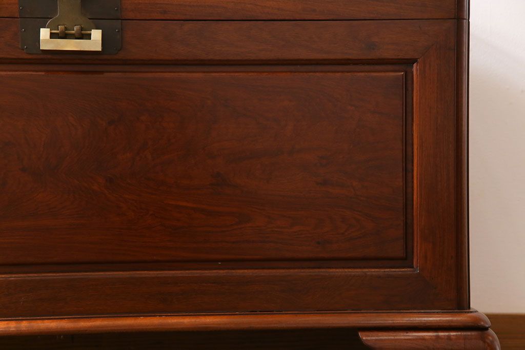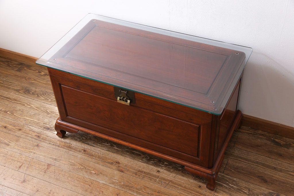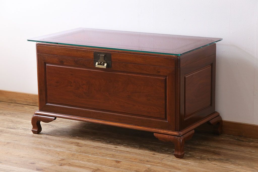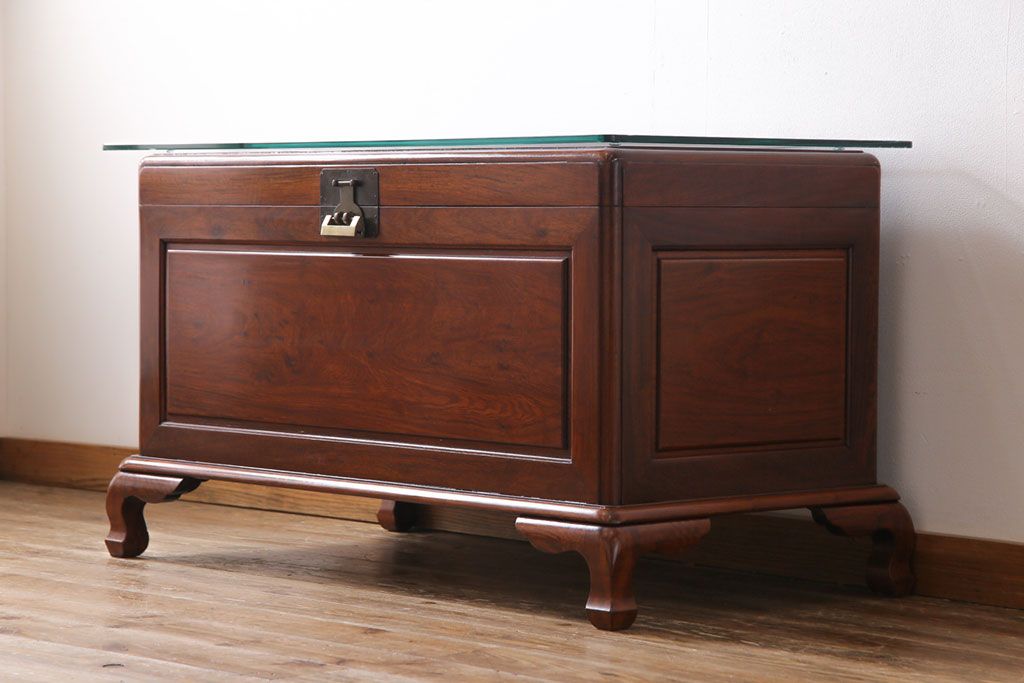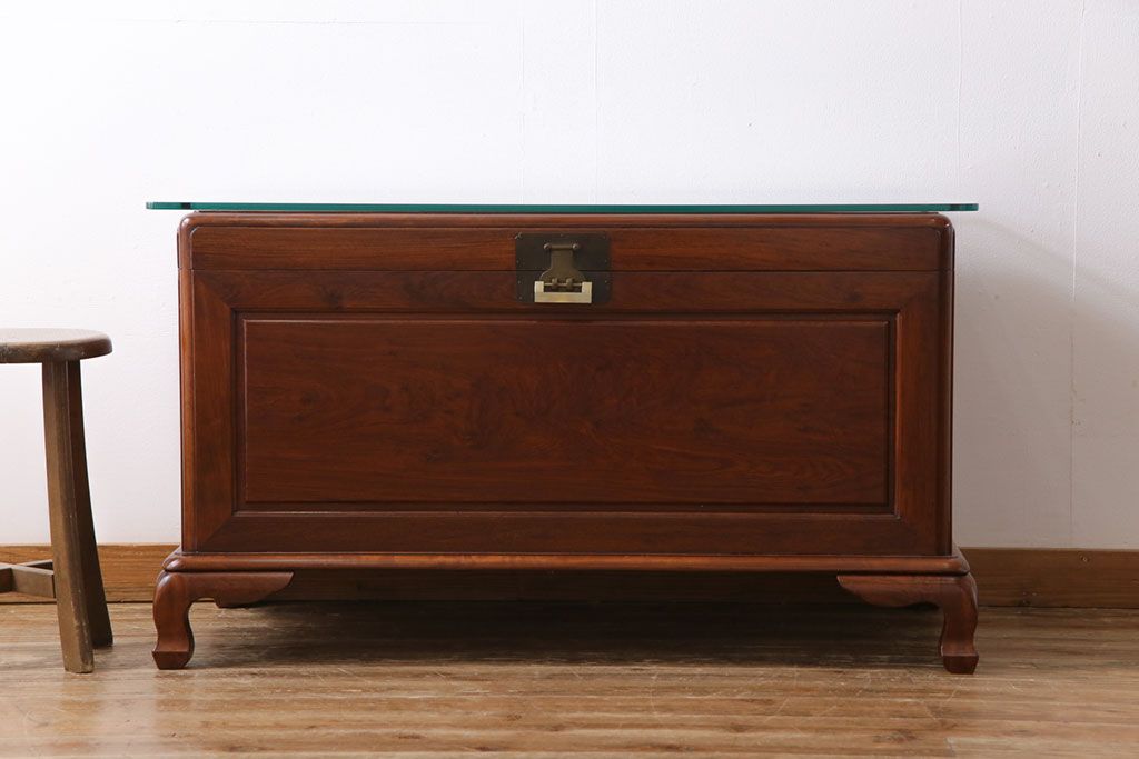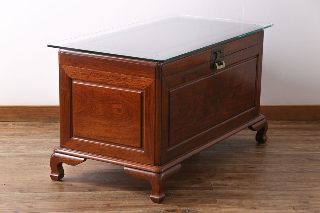 アンティーク雑貨 高級品! 花梨無垢材 天板付リメイク センターテーブルにもなるホープチェスト(収納箱、脚付木箱、カリン材)