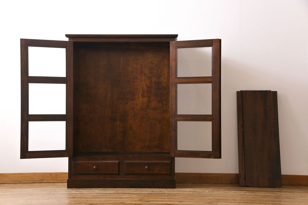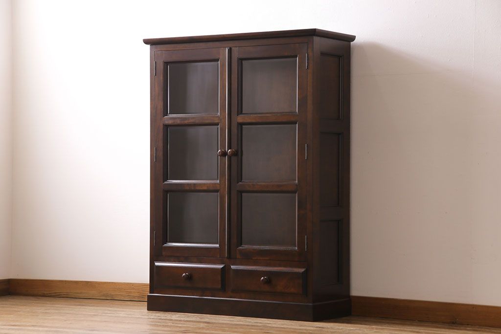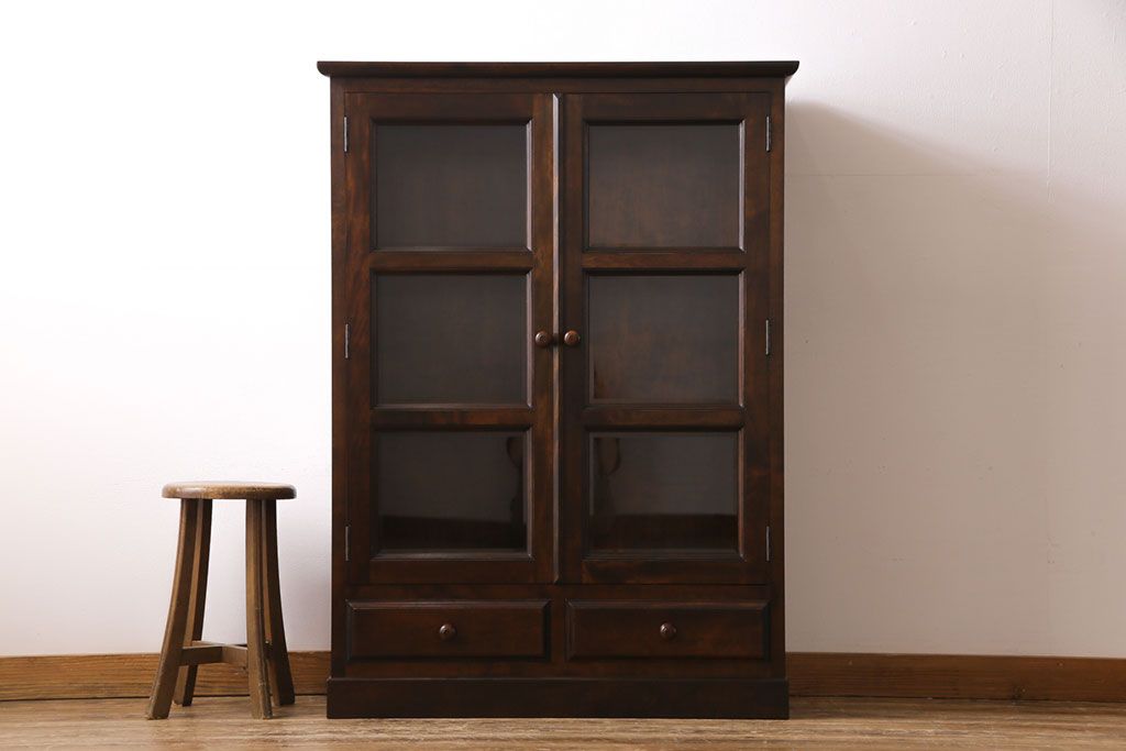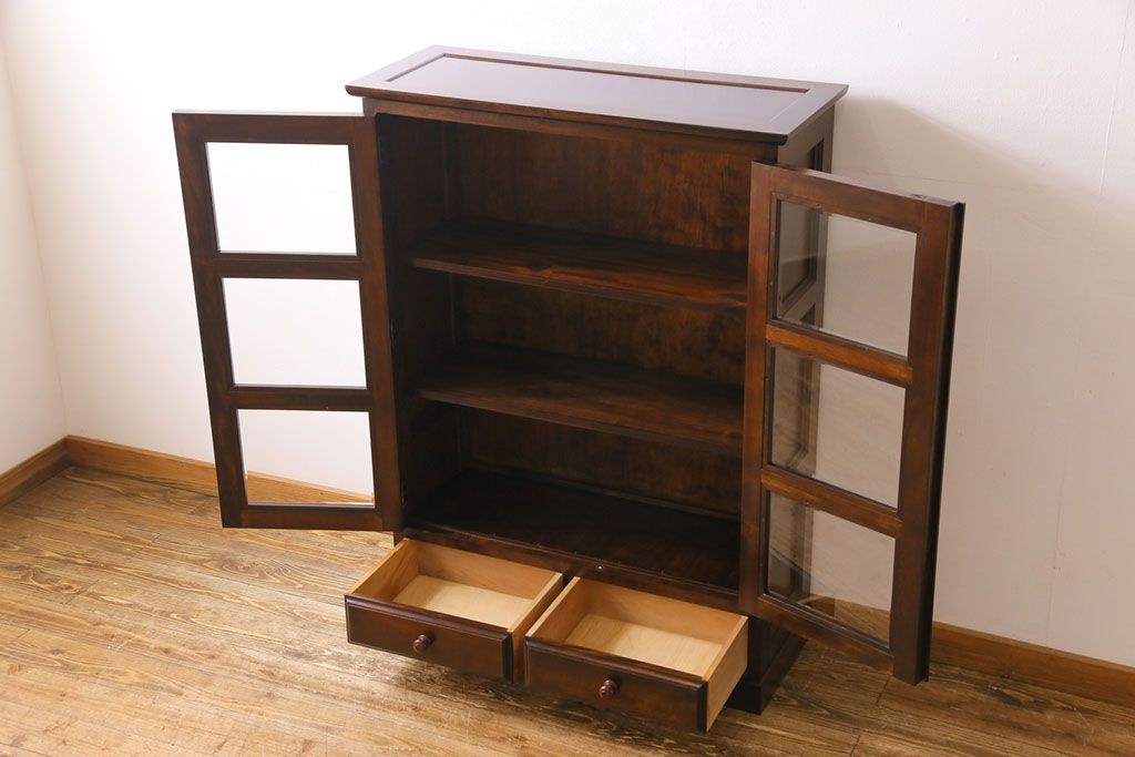ラフジュ工房> 民芸家具 > ビンテージ 松本民芸家具 深い色味が魅力的な小振りの本箱(飾り棚、食器棚、キャビネット)(定価約34万2千円)