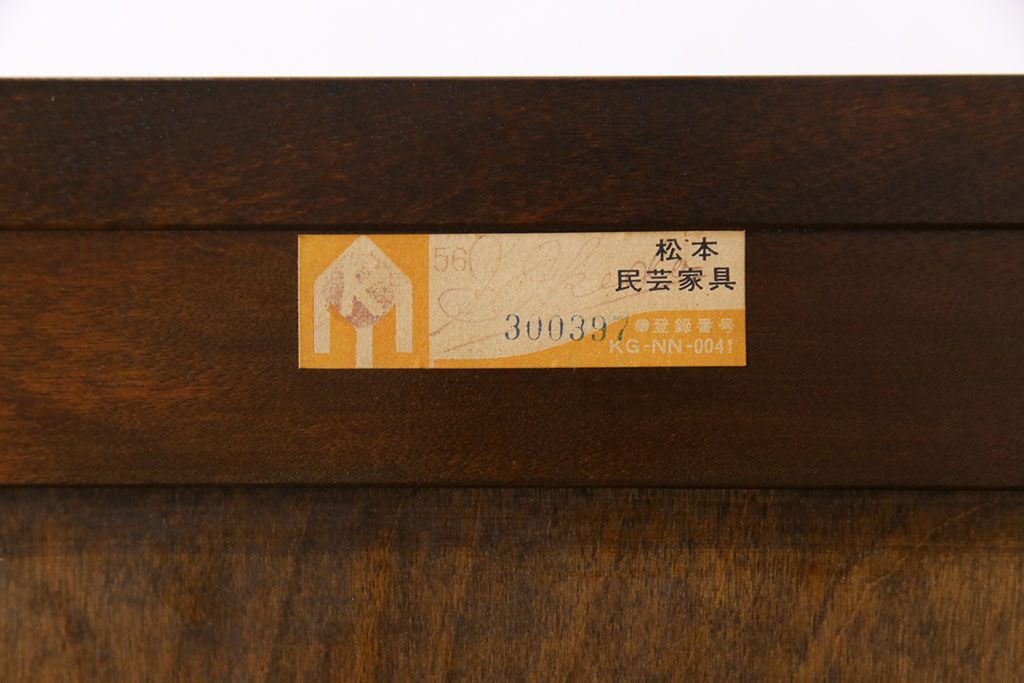 ビンテージ 松本民芸家具 深い色味が魅力的な小振りの本箱(飾り棚、食器棚、キャビネット)(定価約34万2千円)