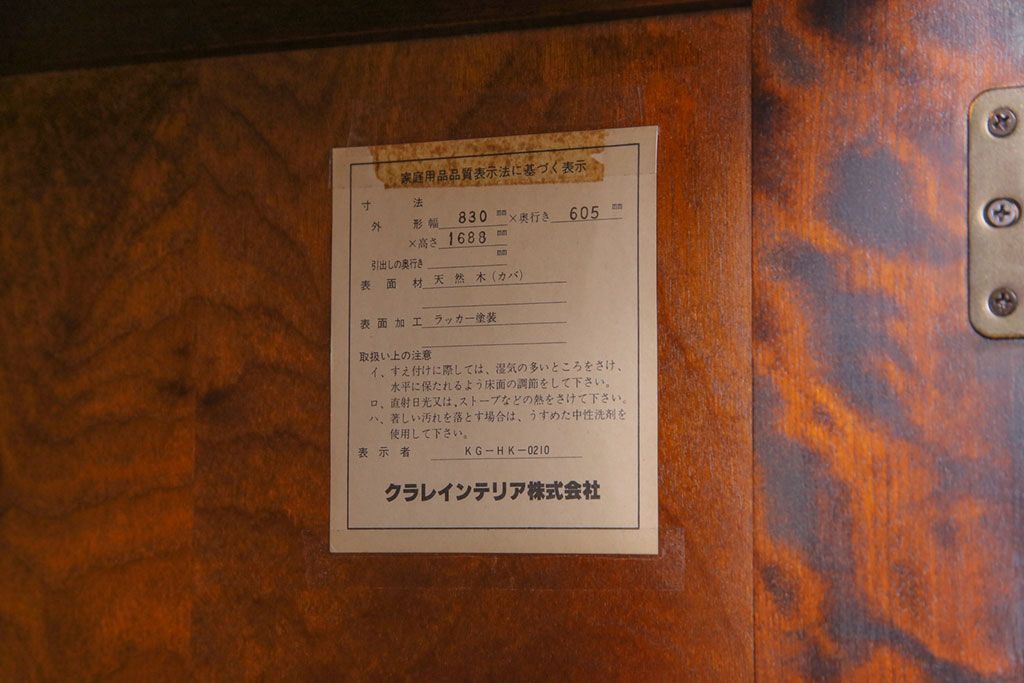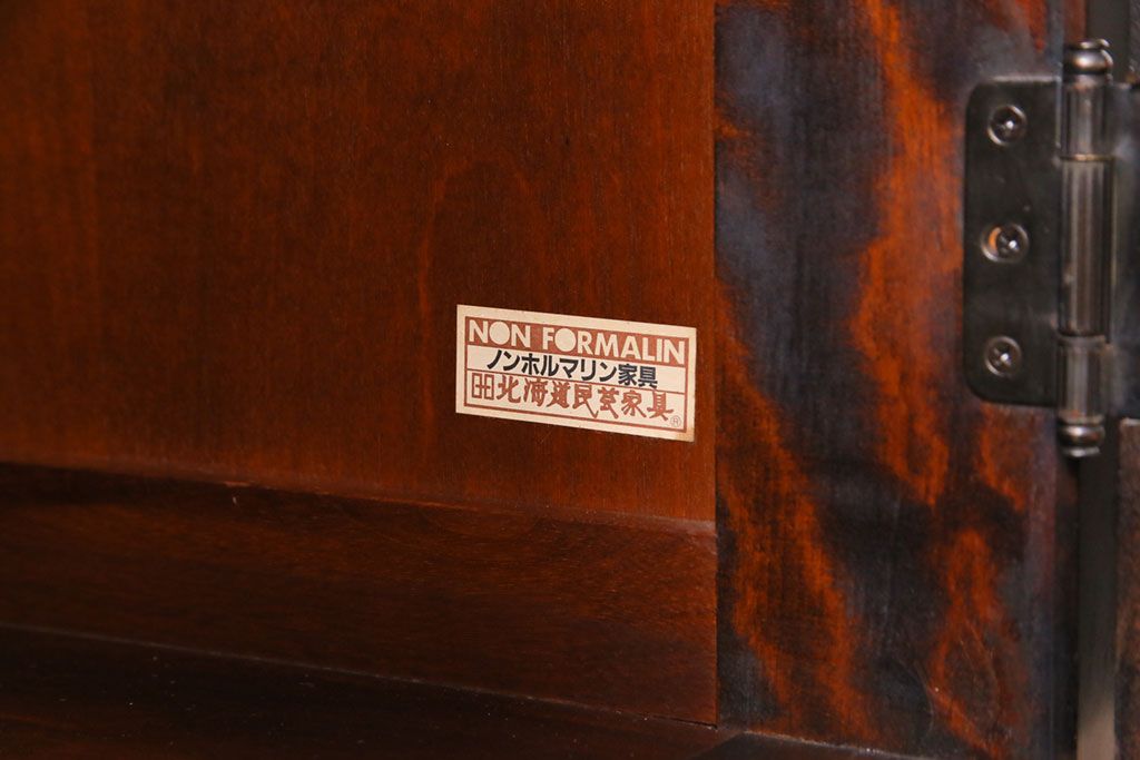 ラフジュ工房> ワードローブ・ロッカー> ワードローブ > ビンテージ家具 美品 北海道民芸家具 小振り 落ち着きあるシックな佇まいのワードローブ