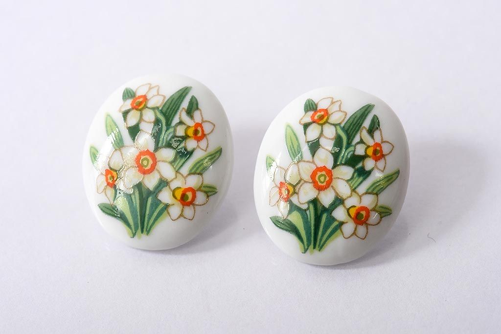 ラフジュ工房> 雑貨 > アンティーク雑貨 AVON(エイボン) 水仙が描かれた陶器製のビンテージピアス(アクセサリー)