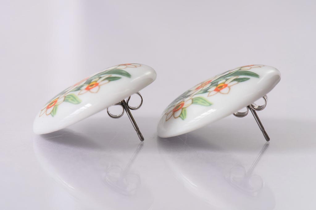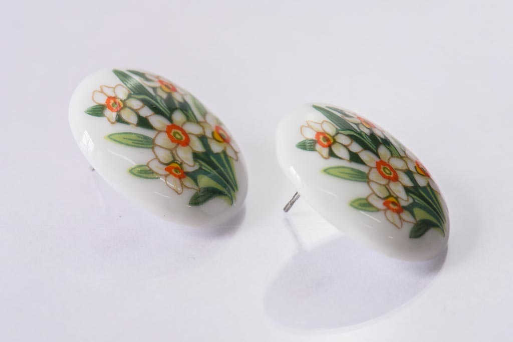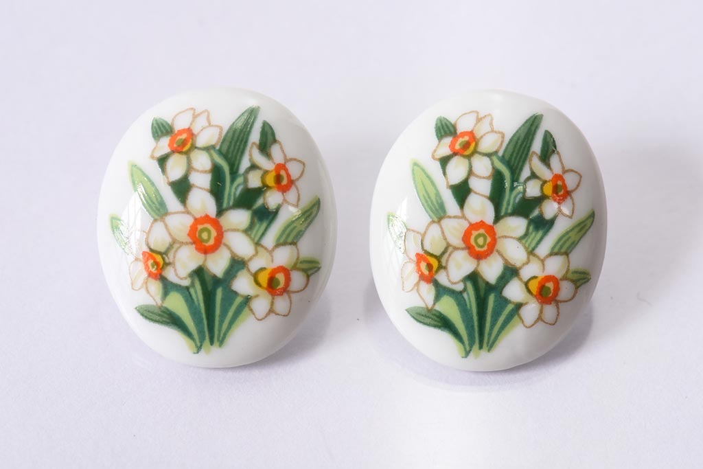 ラフジュ工房> アクセサリー > アンティーク雑貨 AVON(エイボン) 水仙が描かれた陶器製のビンテージピアス(アクセサリー)