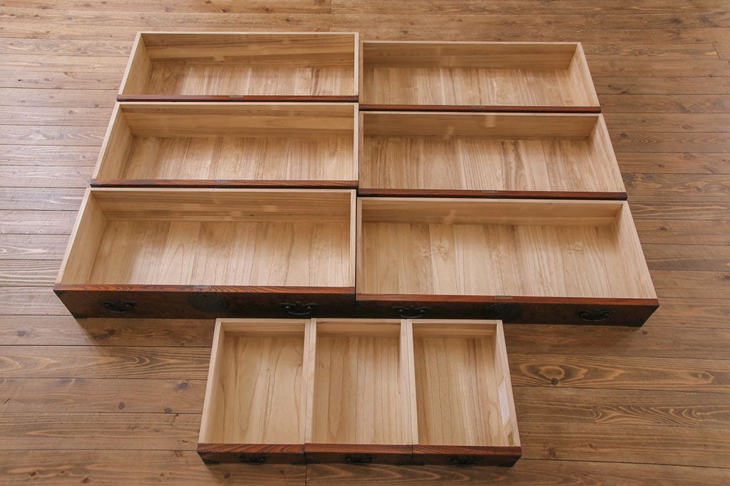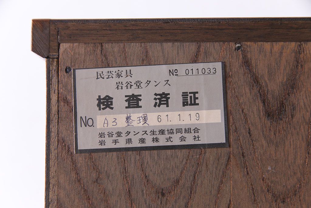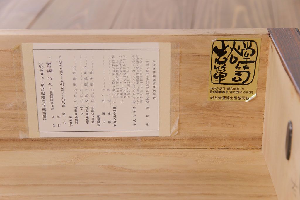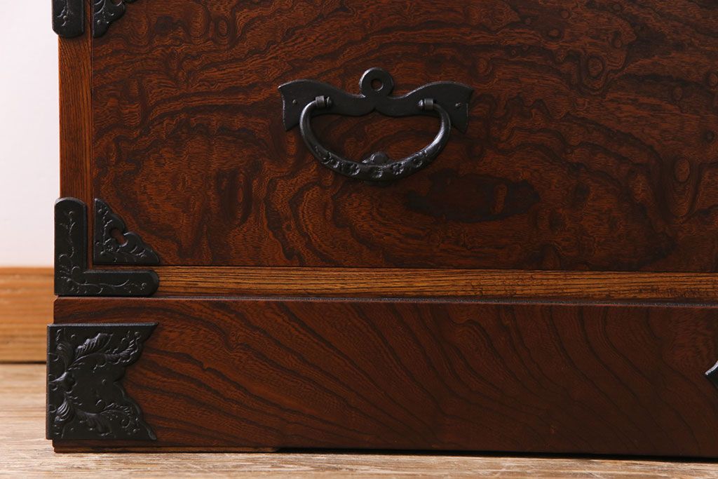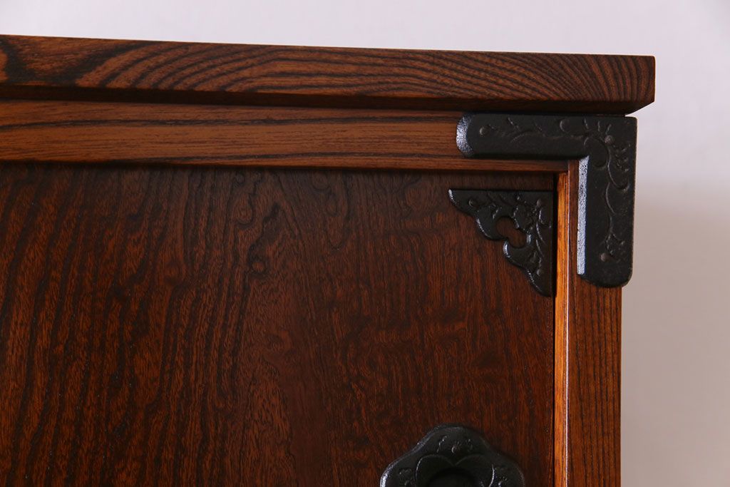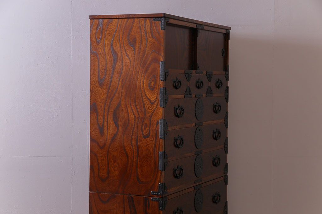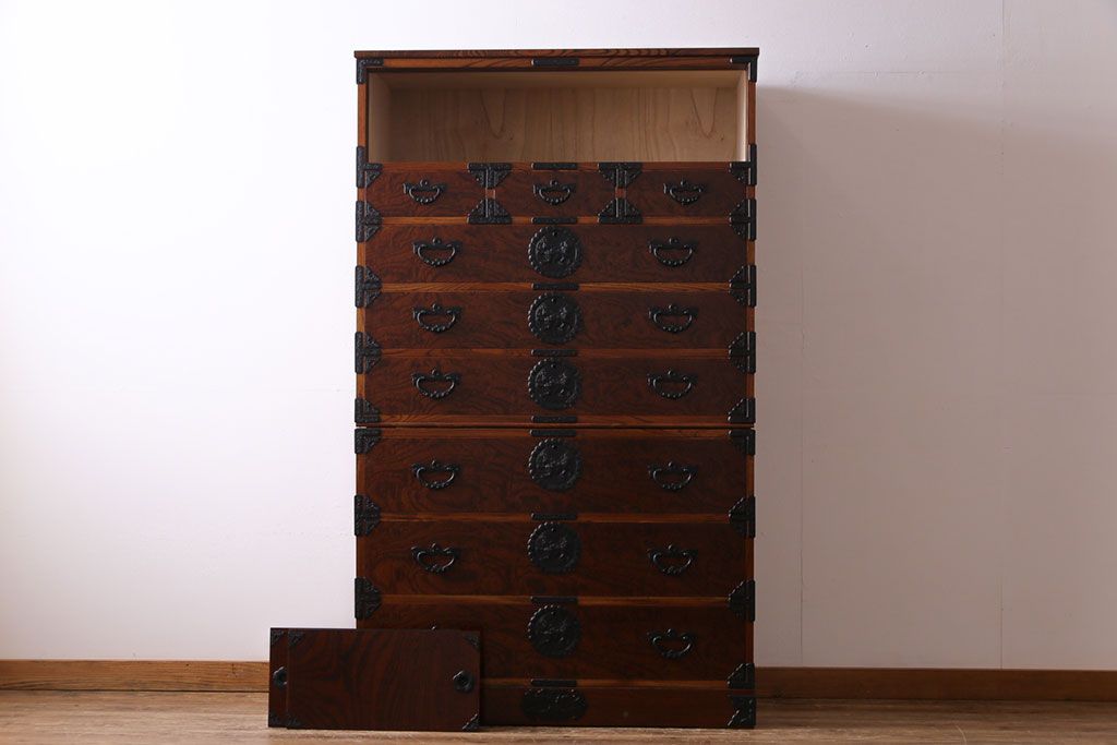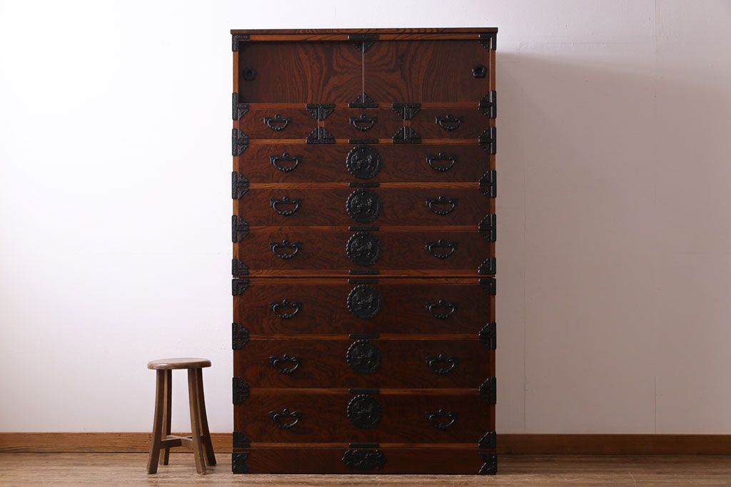 ラフジュ工房> 和箪笥> 衣装箪笥 > 中古美品 岩谷堂箪笥 獅子モチーフの金具が目を引く重ね箪笥(チェスト、整理箪笥)