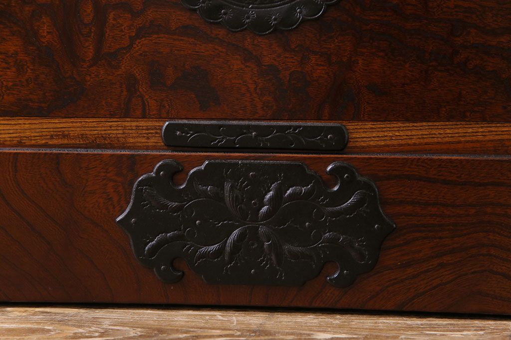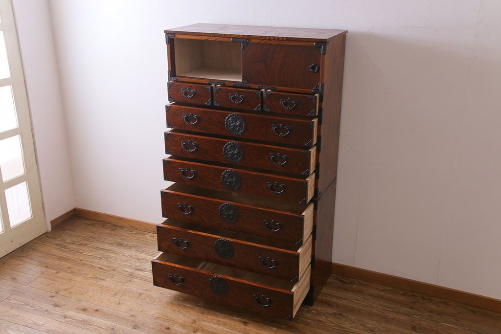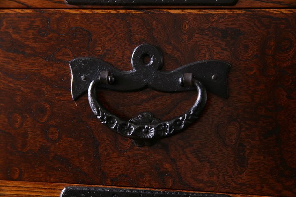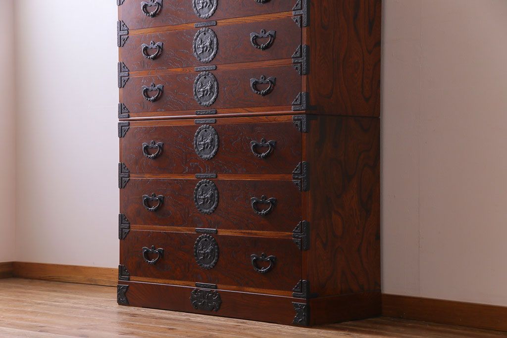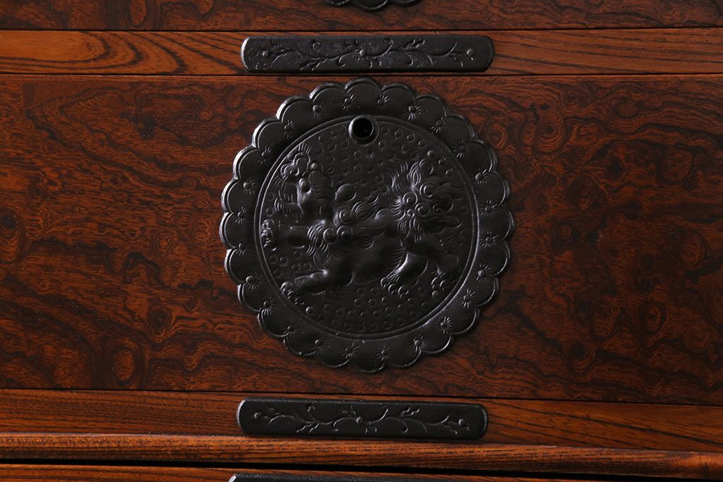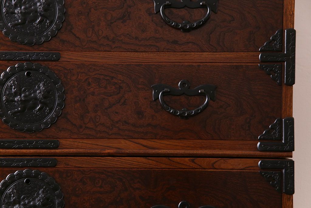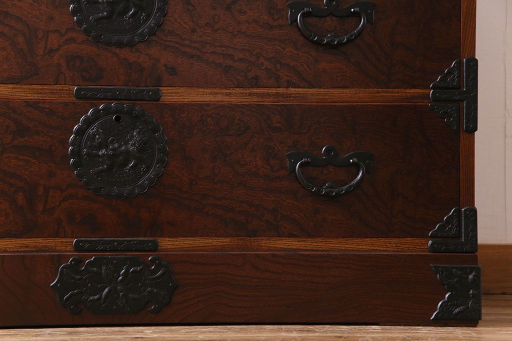 中古美品 岩谷堂箪笥 獅子モチーフの金具が目を引く重ね箪笥(チェスト、整理箪笥)