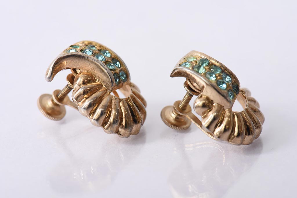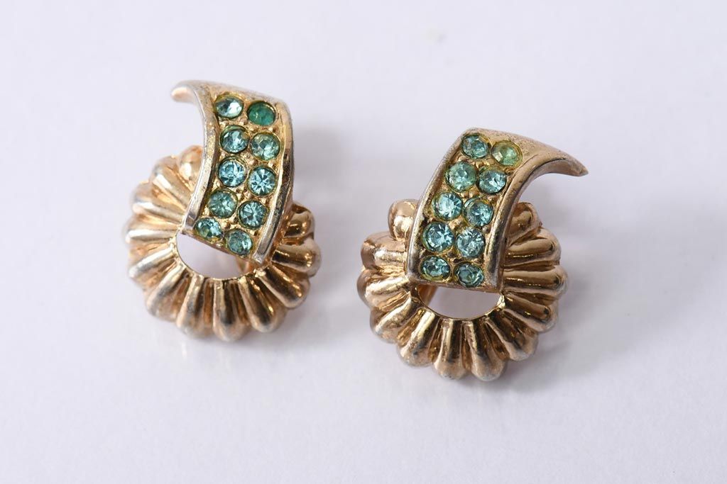 ラフジュ工房> アクセサリー > アンティーク雑貨 アメリカビンテージ Coro(コロ) シックで華やかな青い石入りイヤリング(アクセサリー)