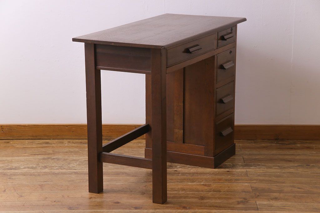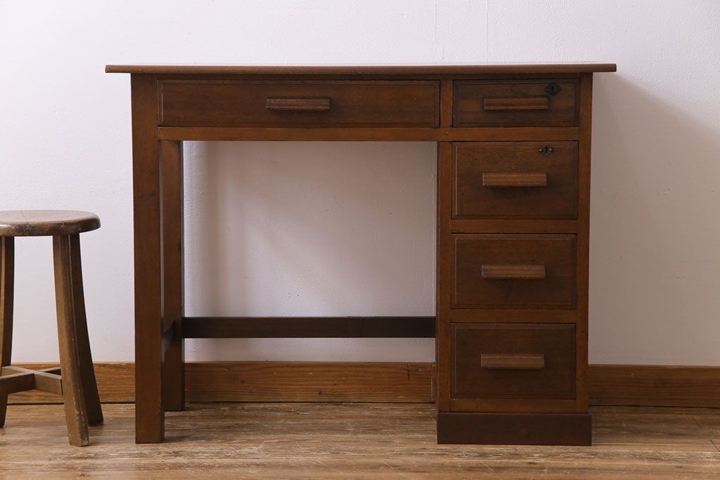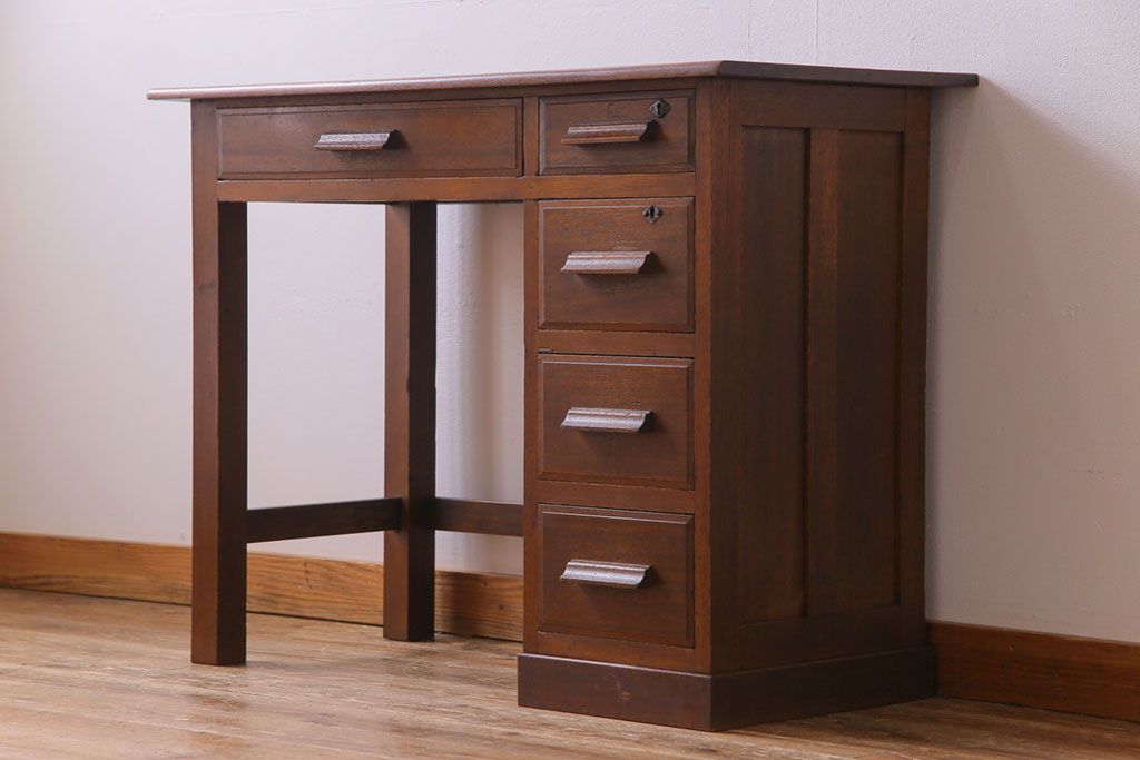 レトロ家具 昭和レトロ 温もりと懐かしさ溢れる薄型ワークデスク(片袖机、在宅ワーク、在宅用)