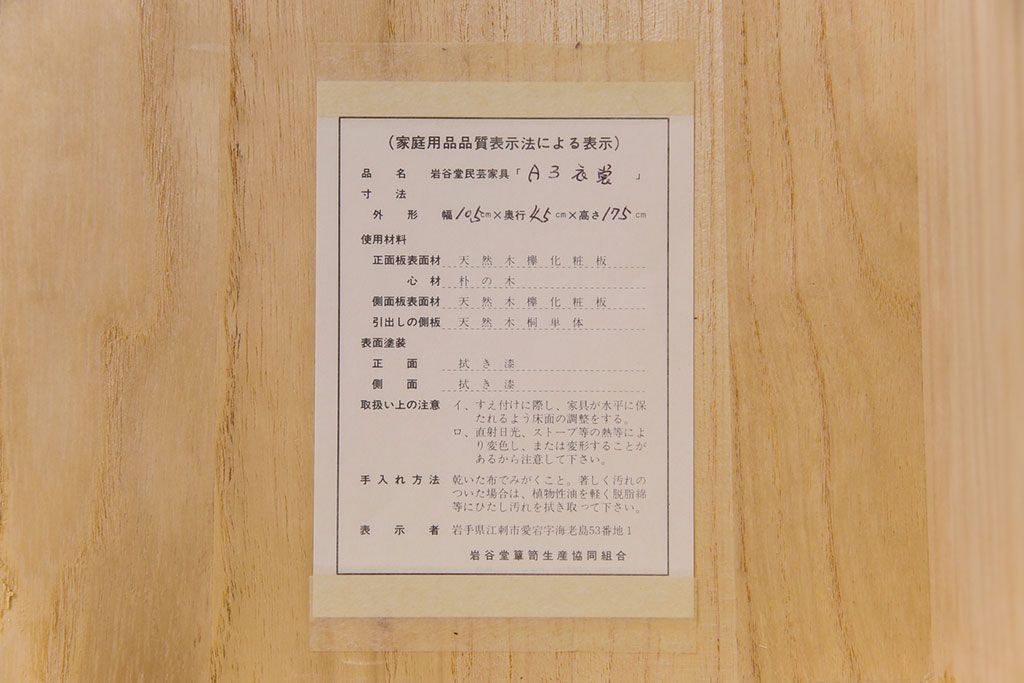 和箪笥 > 中古 岩谷堂箪笥 天板リメイク 上質な和の雰囲気漂う衣装箪笥(チェスト、整理ダンス)