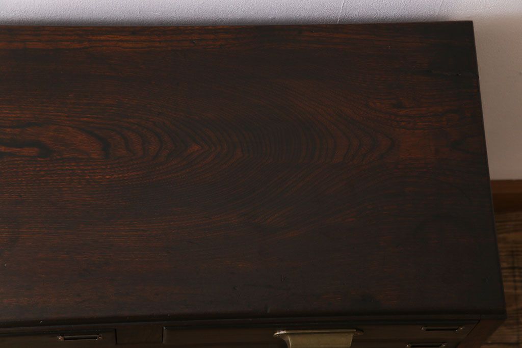 アンティーク家具 和製アンティーク 栗材 ネームプレート付き シックな佇まいの脚付きドロワー(引き出し、チェスト)