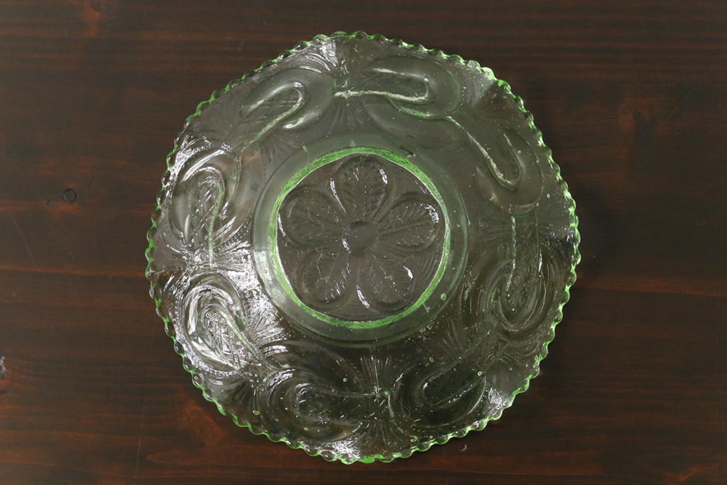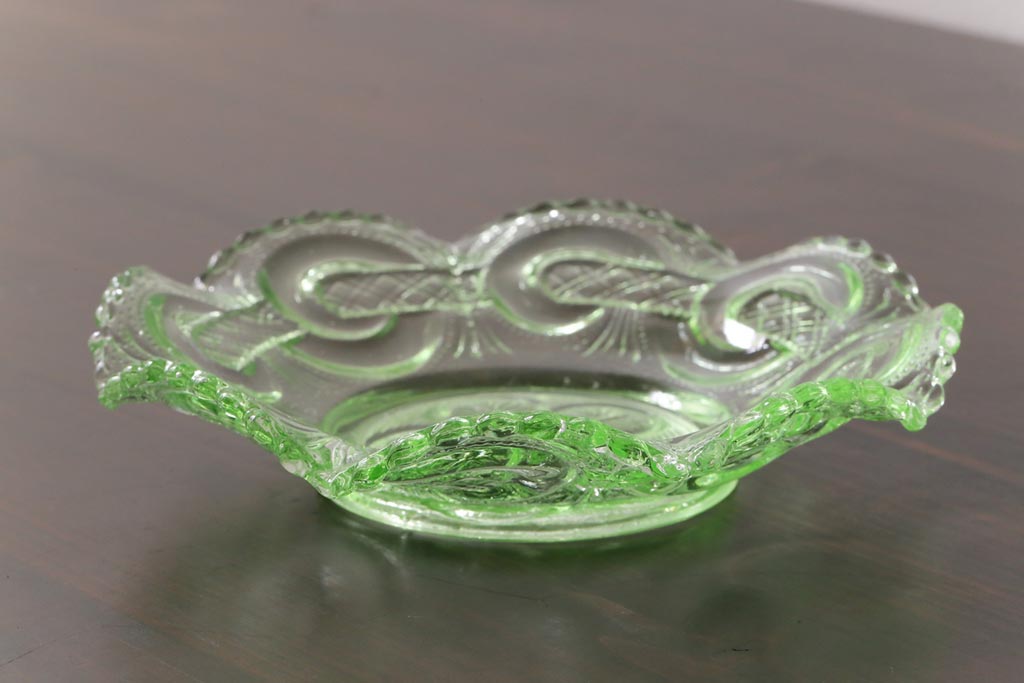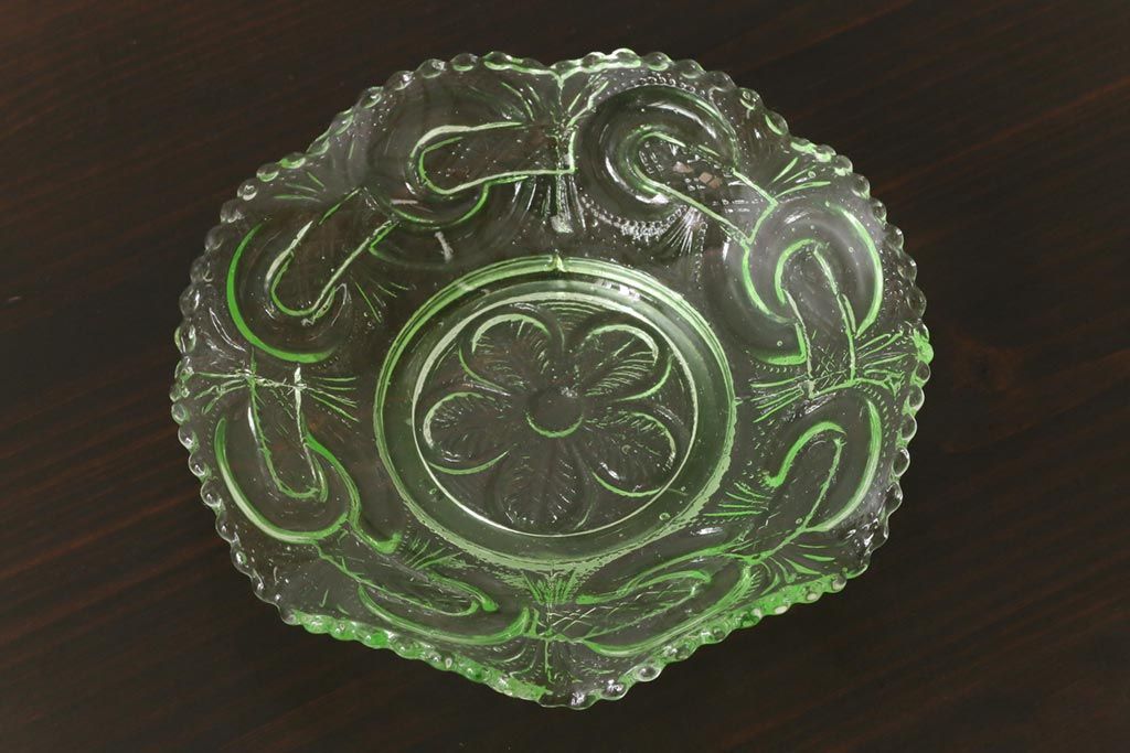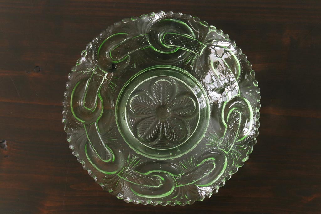 アンティーク雑貨 アンティーク 大正昭和初期 淡いグリーンが爽やかなプレスガラス製中皿(器)