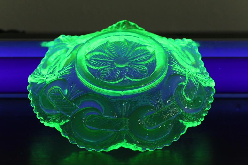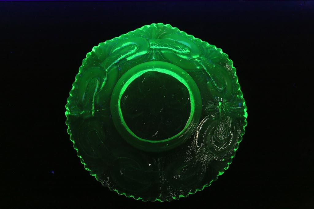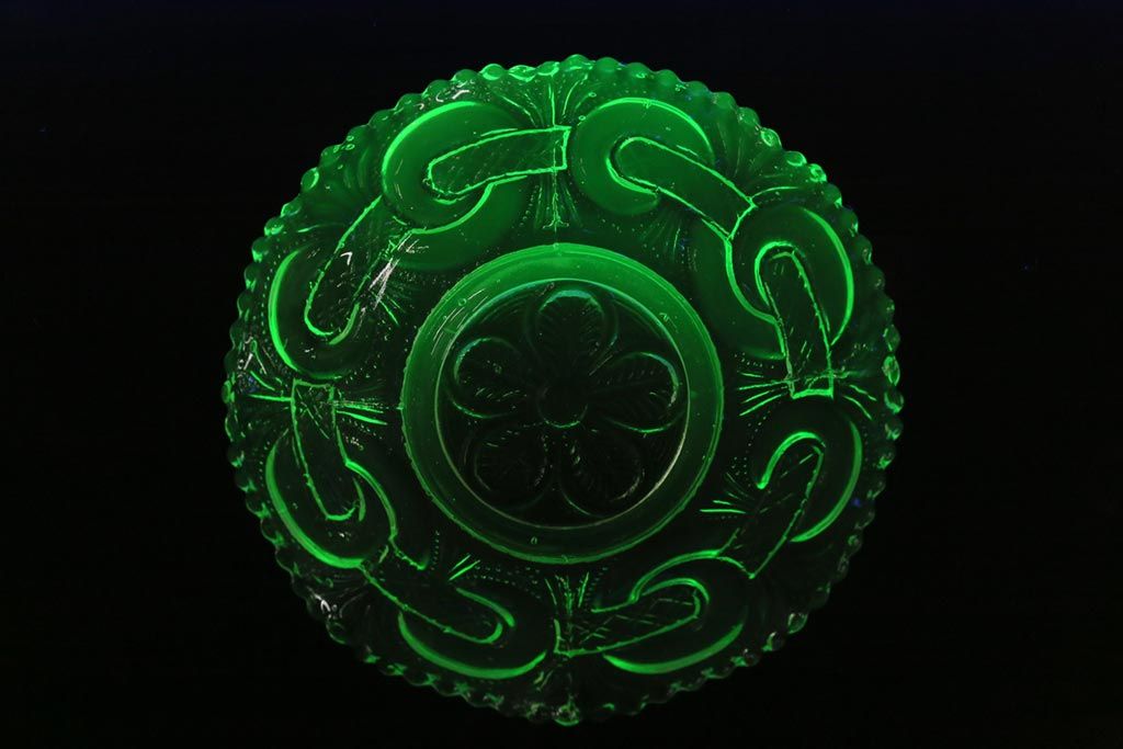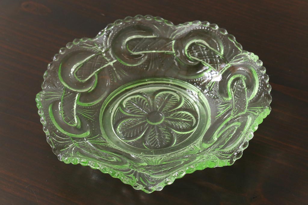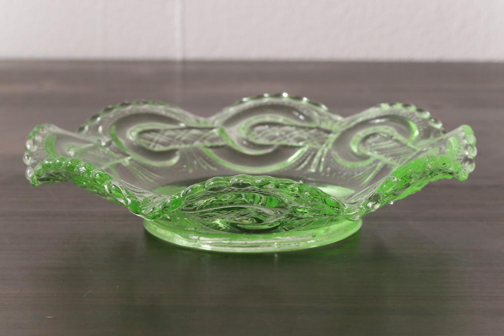 アンティーク雑貨 アンティーク 大正昭和初期 淡いグリーンが爽やかなプレスガラス製中皿(器)