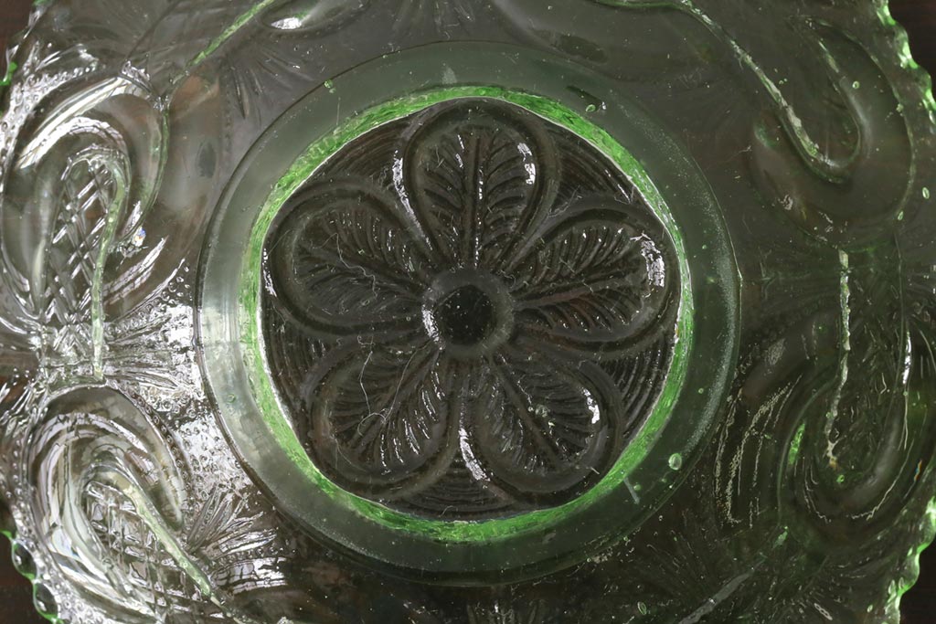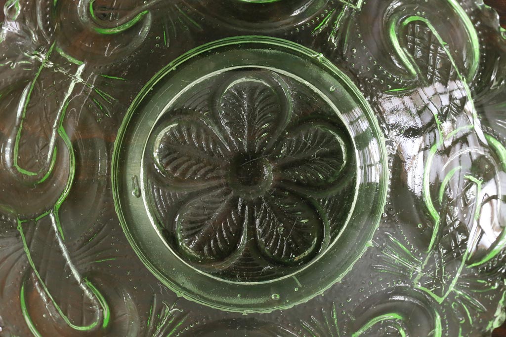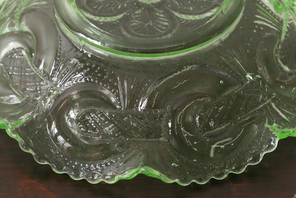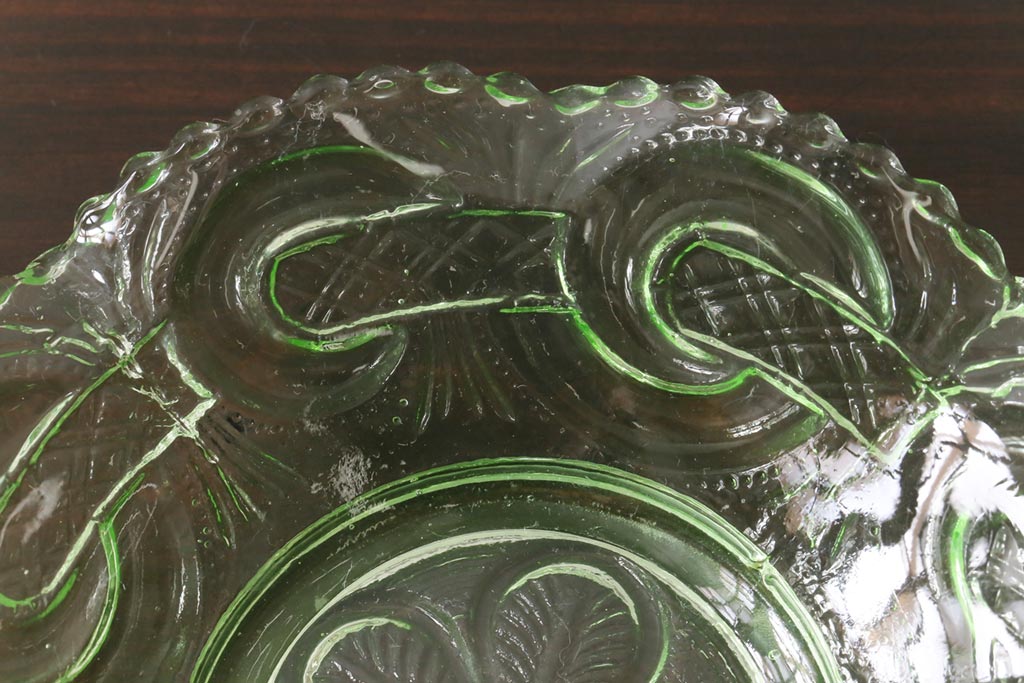 ラフジュ工房> 骨董・美術品> 骨董-ガラス食器 > アンティーク雑貨 アンティーク 大正昭和初期 淡いグリーンが爽やかなプレスガラス製中皿(器)