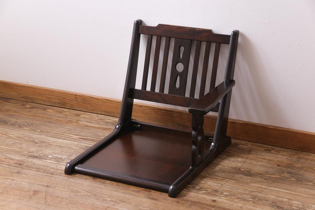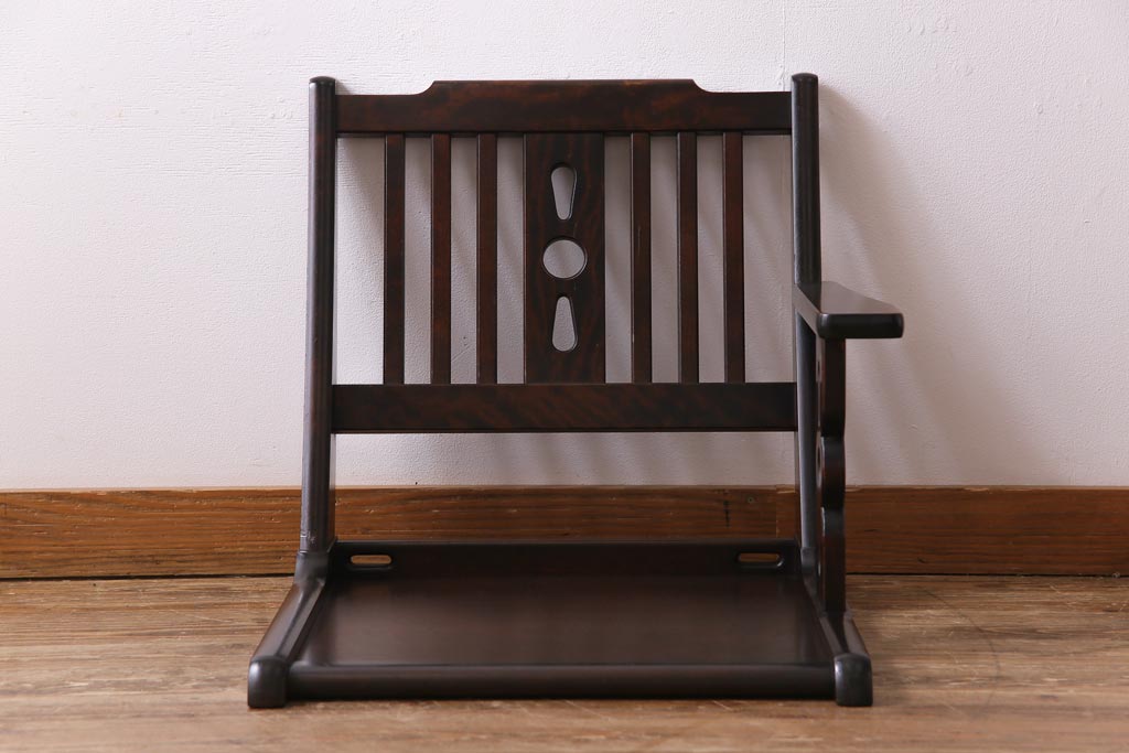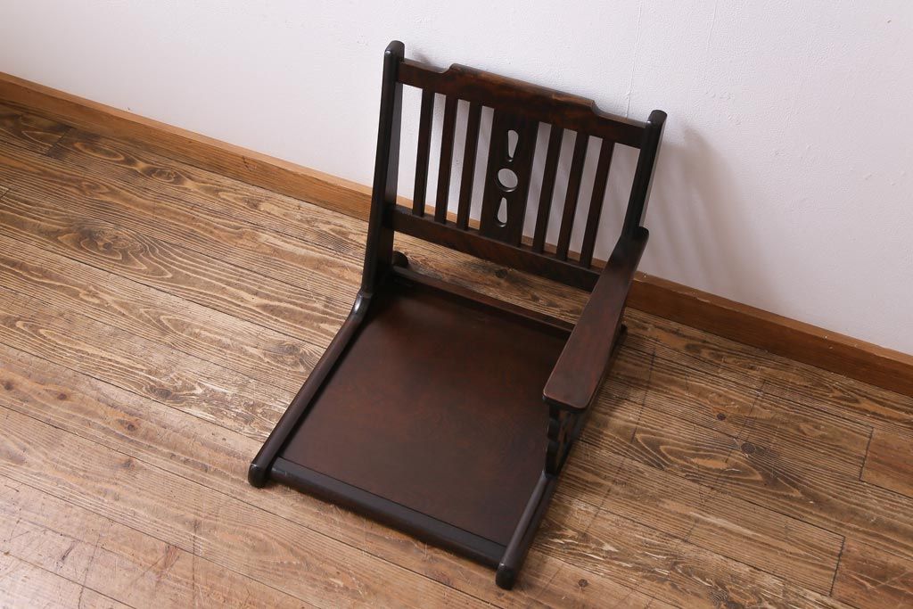 ラフジュ工房> 椅子・ベンチ> 座椅子 > 中古 北海道民芸家具 HM692 シックな色合いが上品な片肘付き座椅子(1)