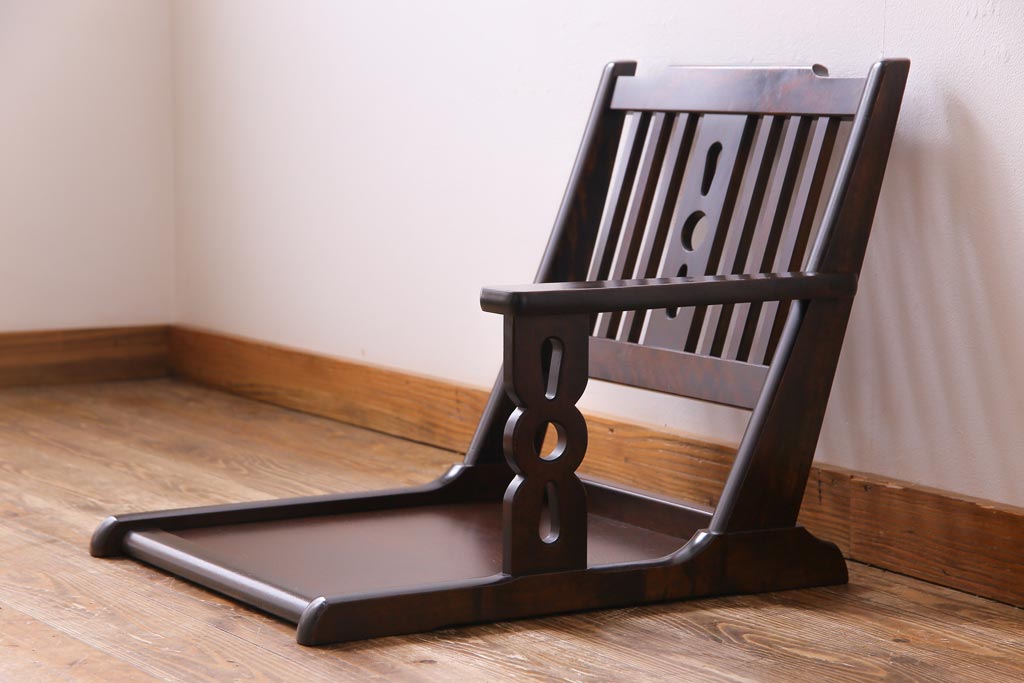 ラフジュ工房> 椅子・ベンチ> アームチェア > 中古 北海道民芸家具 HM692 シックな色合いが上品な片肘付き座椅子(1)