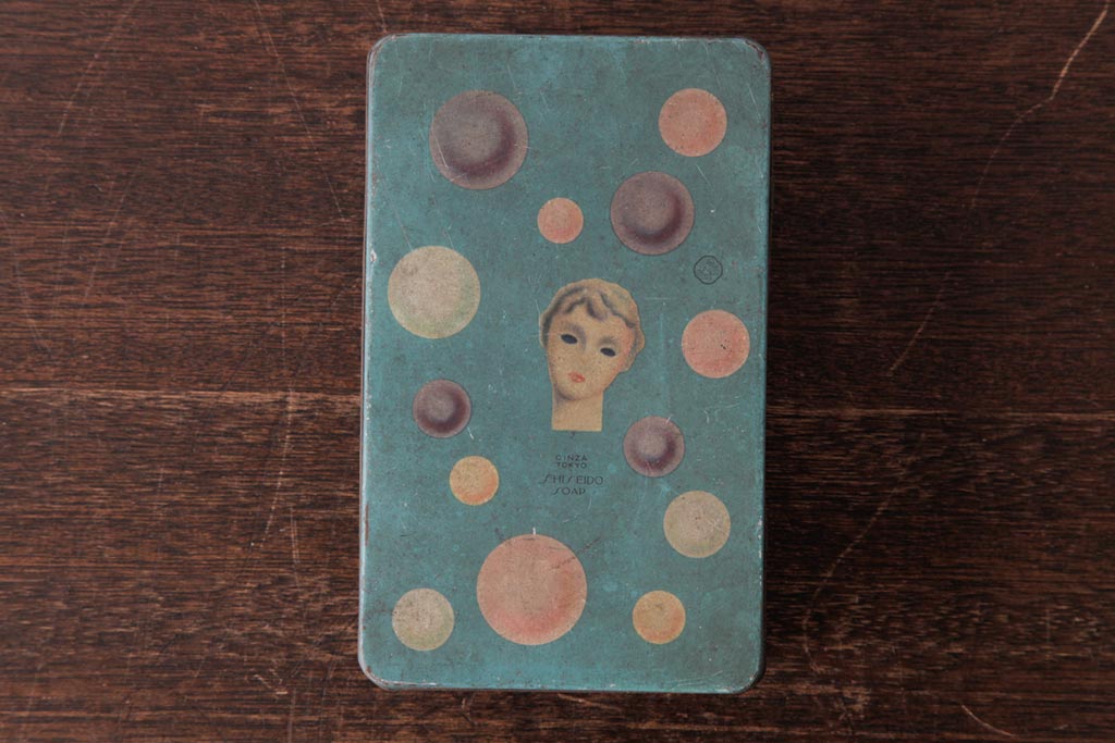 アンティーク雑貨 和製アンティーク 戦前 レトロな雰囲気あふれる資生堂の石鹸缶(収納箱、小物入れ)