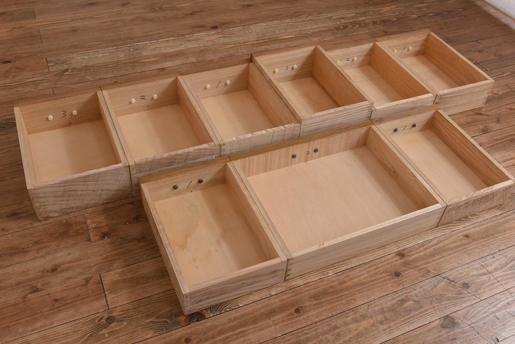 ■引き出しの内寸(小・右) 上から 深さ90・120・120・120mm/幅255mm/奥行385mm