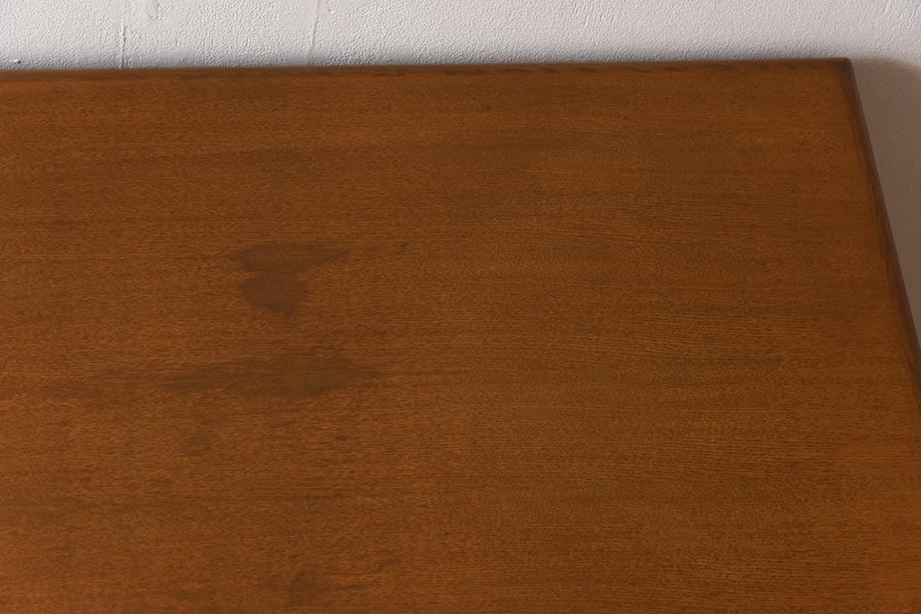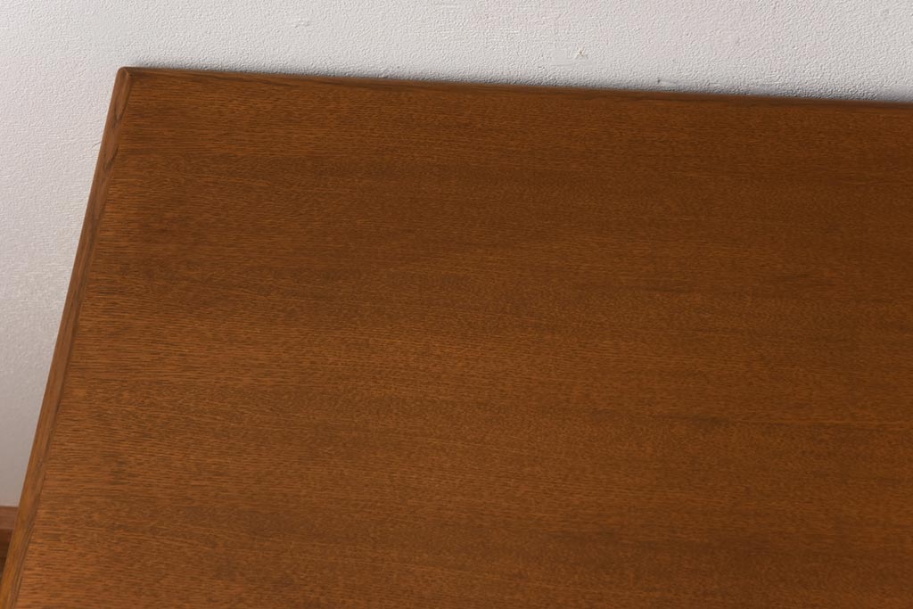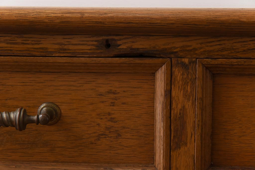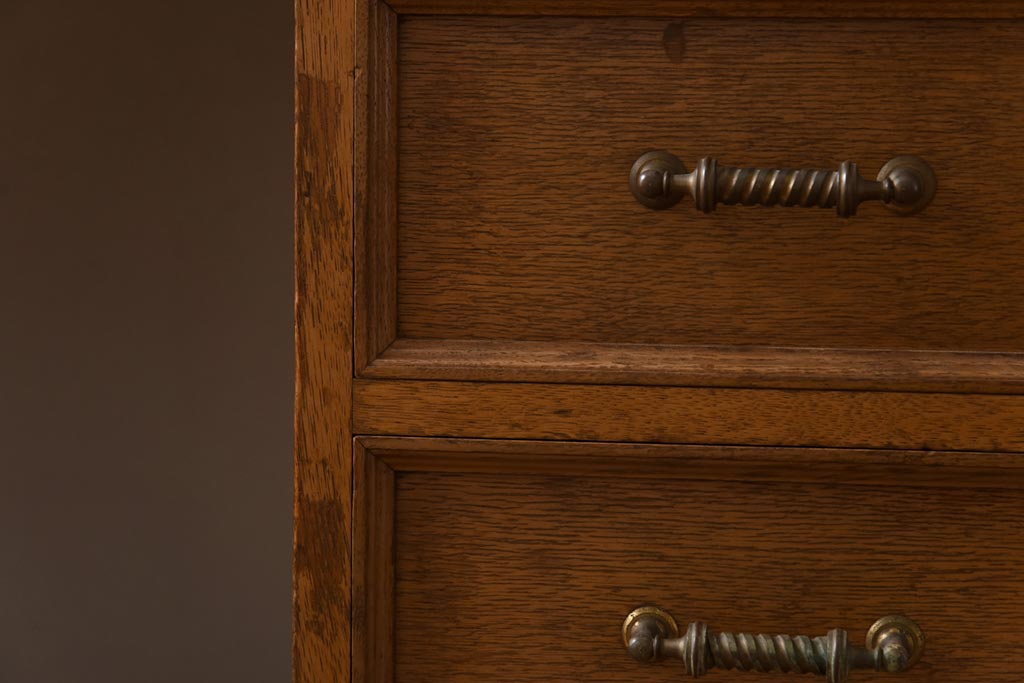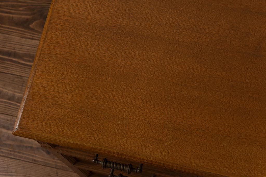デスク> 片袖机・両袖机 > ビンテージ 神戸洋家具 組み立て式 凝った取っ手がシックな印象を与えるナラ材のワークデスク(両袖机、在宅ワーク、在宅用)