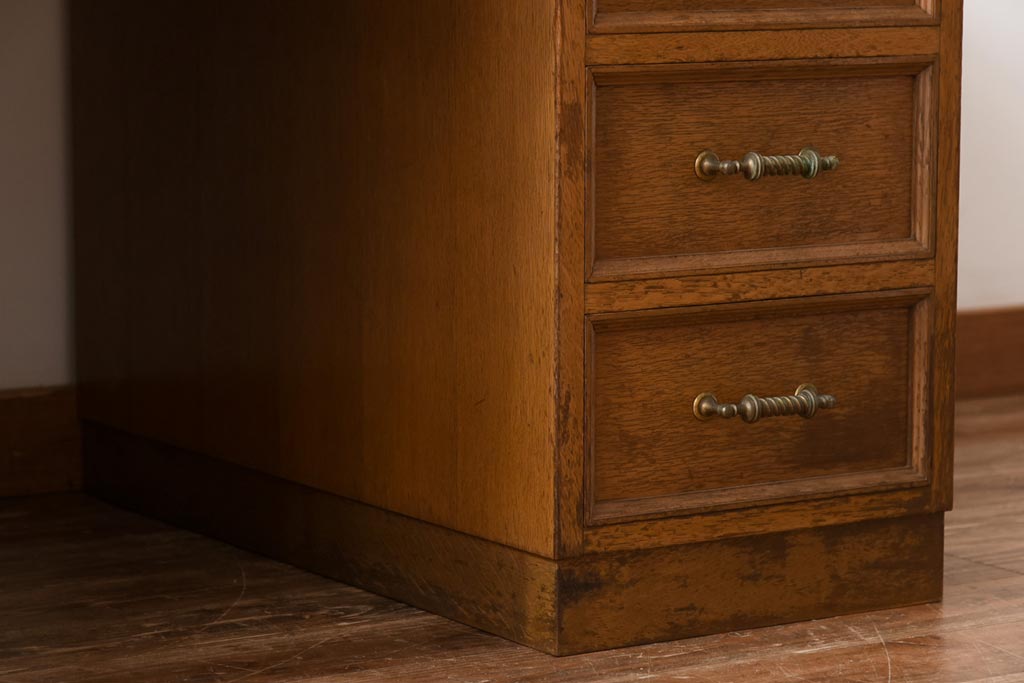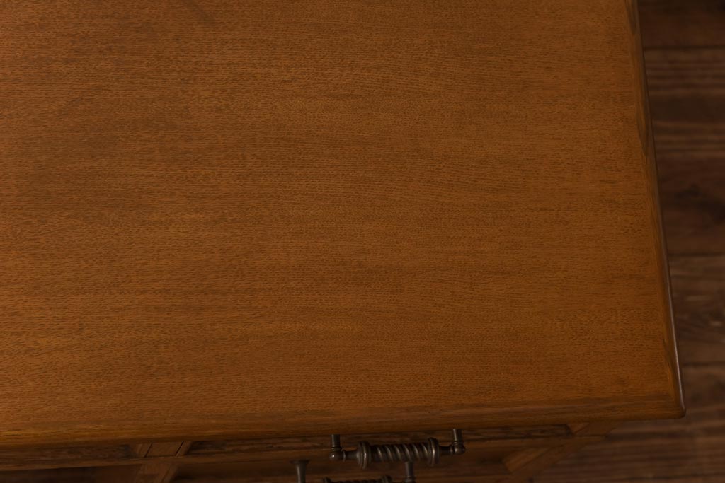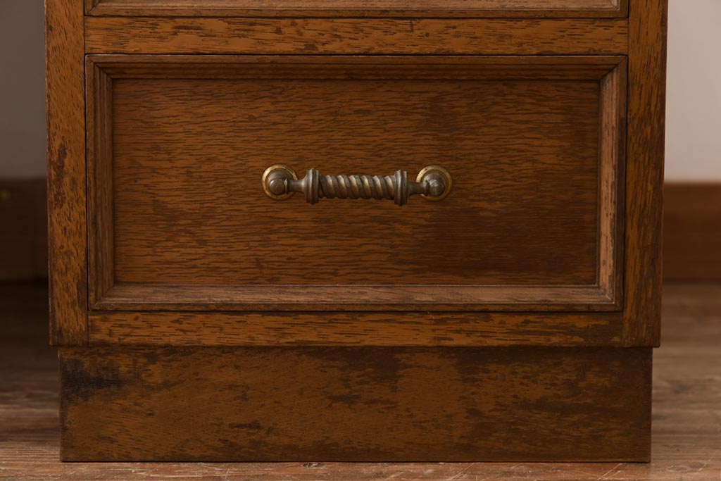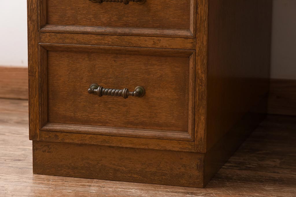 テーブル> 作業台 > ビンテージ 神戸洋家具 組み立て式 凝った取っ手がシックな印象を与えるナラ材のワークデスク(両袖机、在宅ワーク、在宅用)