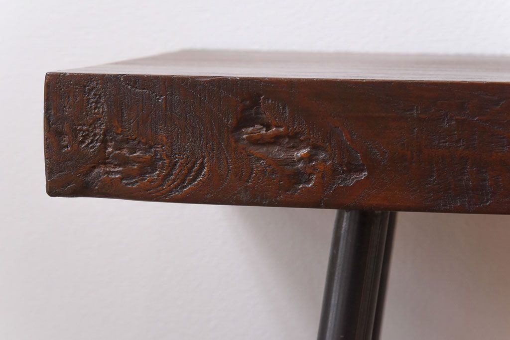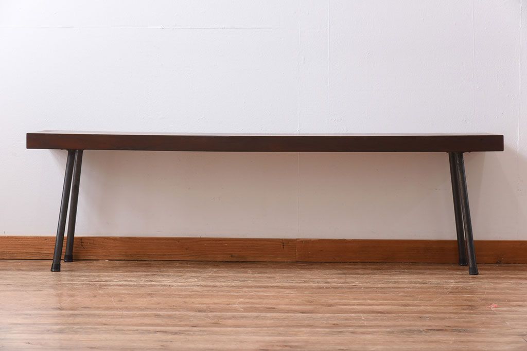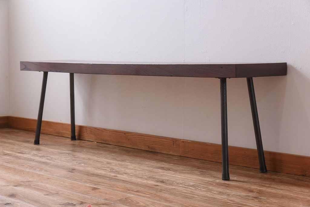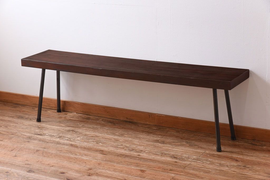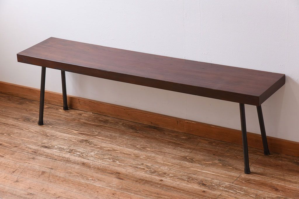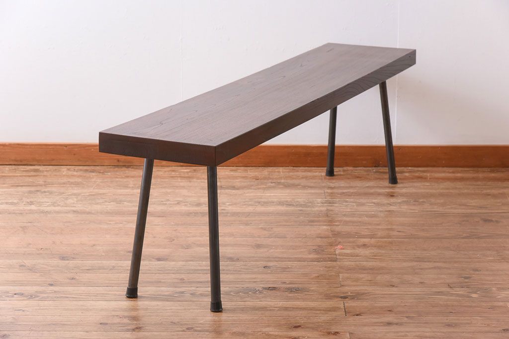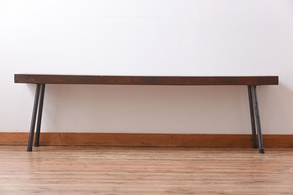 和製アンティーク ケヤキ材一枚板 すっきりとした佇まいのリメイク鉄脚ベンチ(板座チェア、椅子)