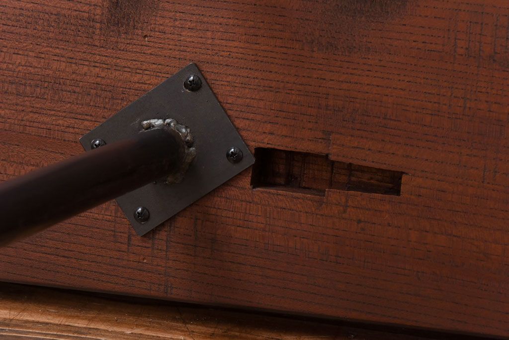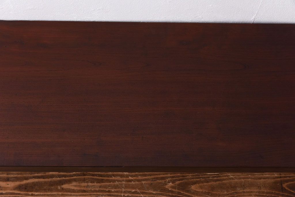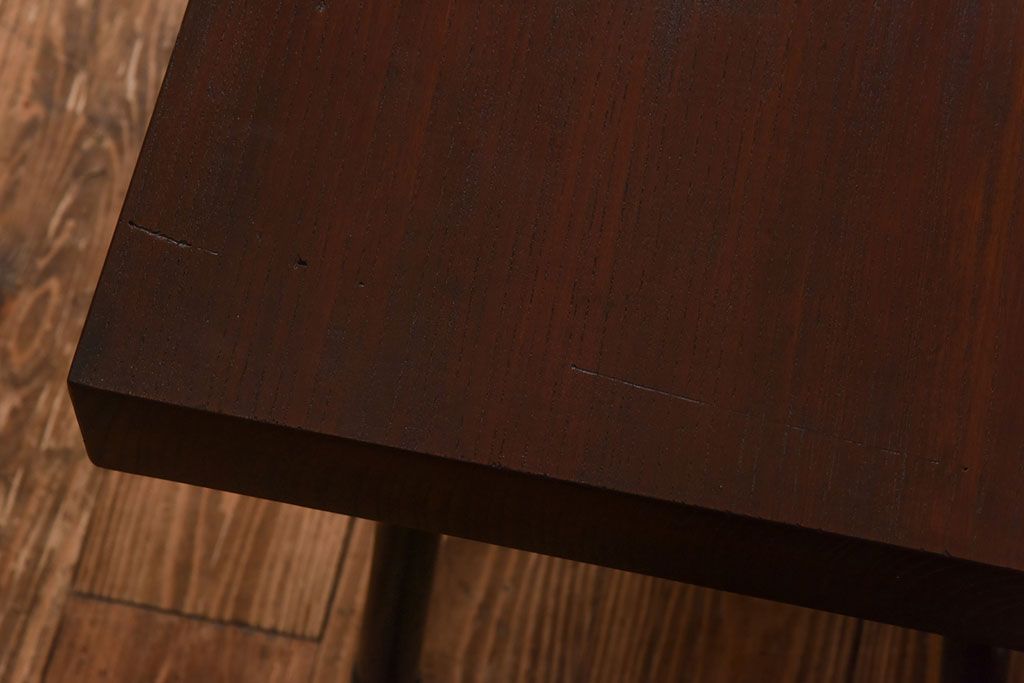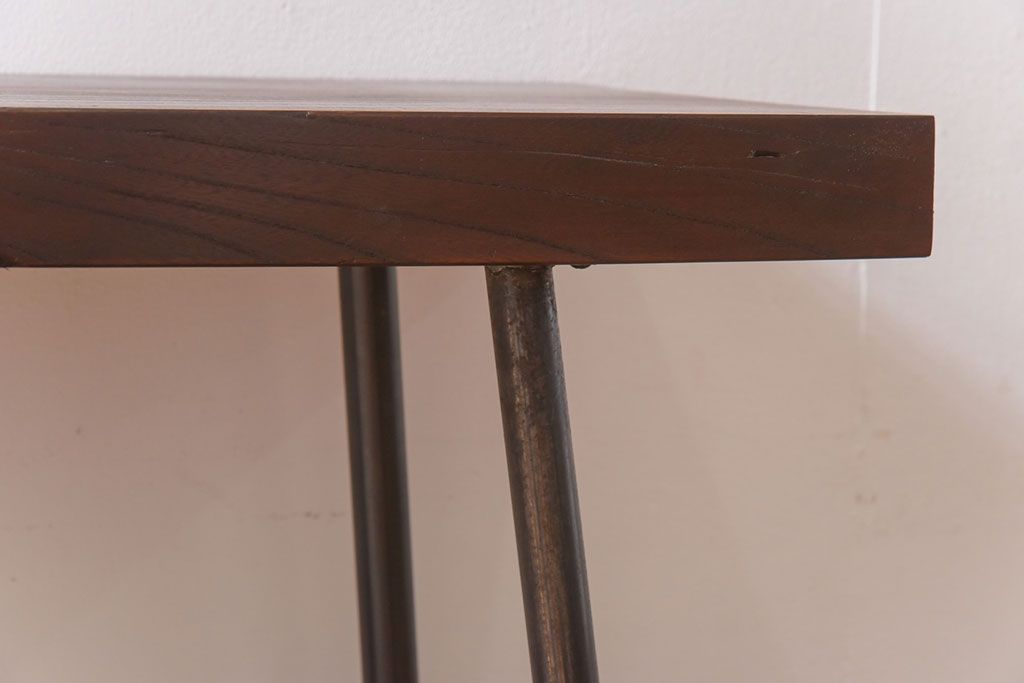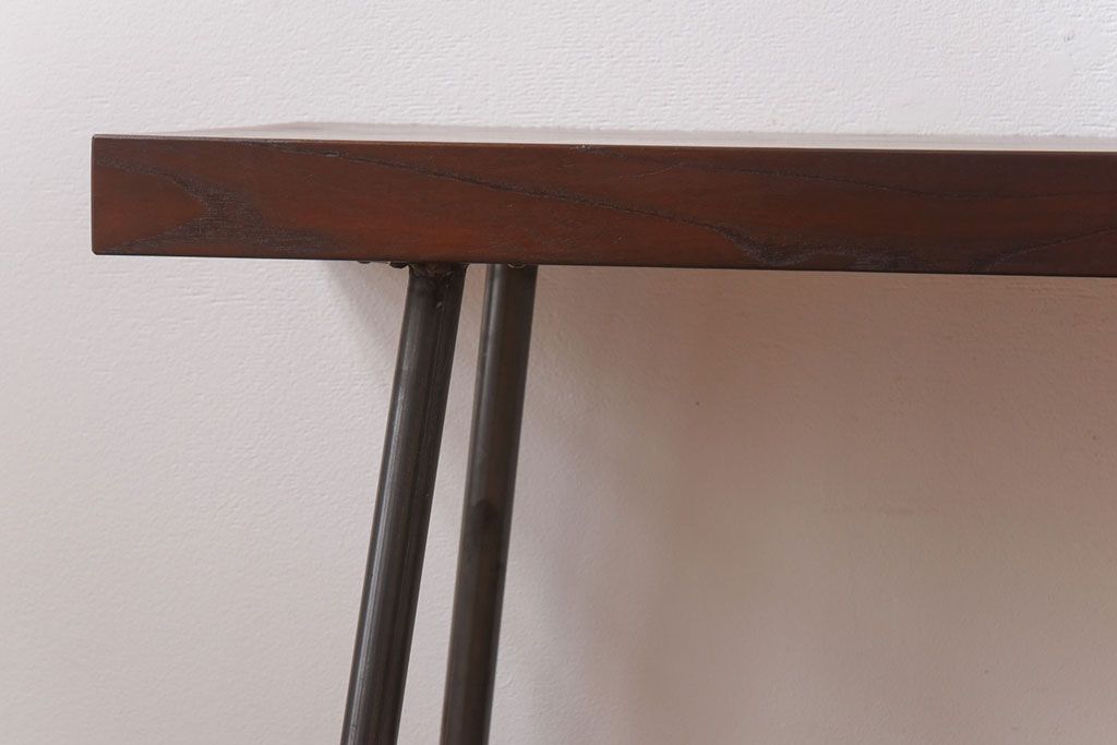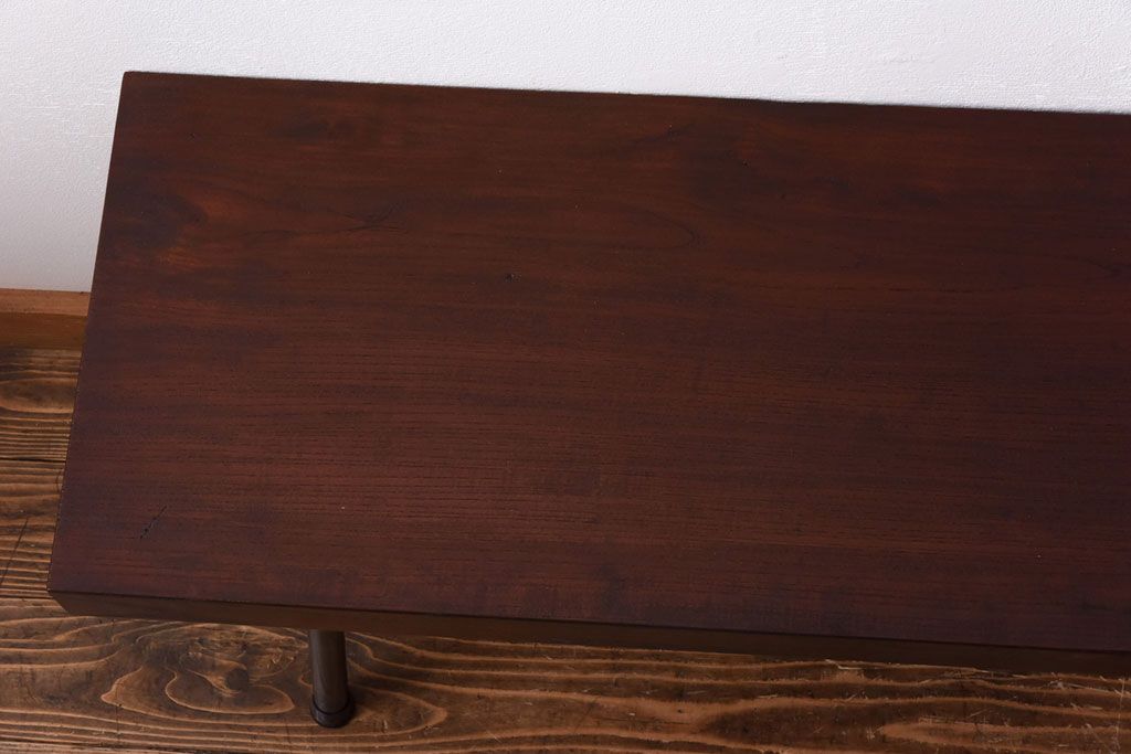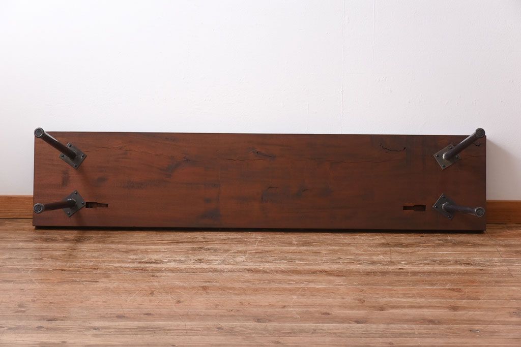 和製アンティーク ケヤキ材一枚板 すっきりとした佇まいのリメイク鉄脚ベンチ(板座チェア、椅子)