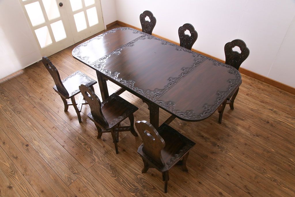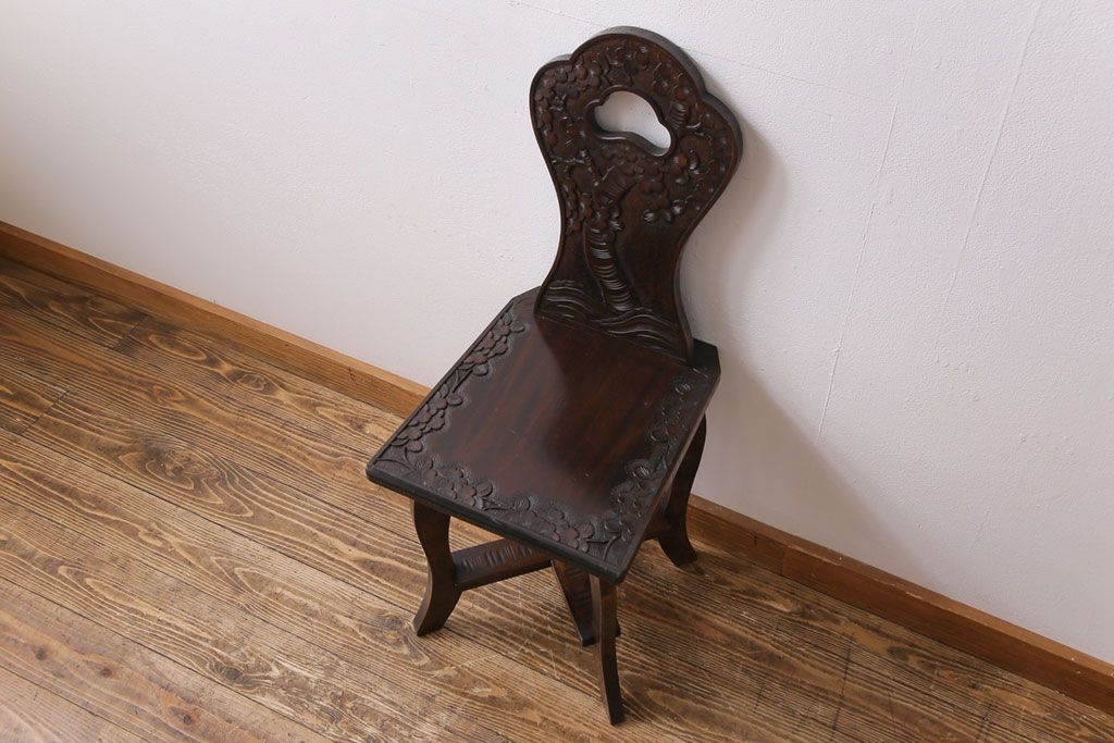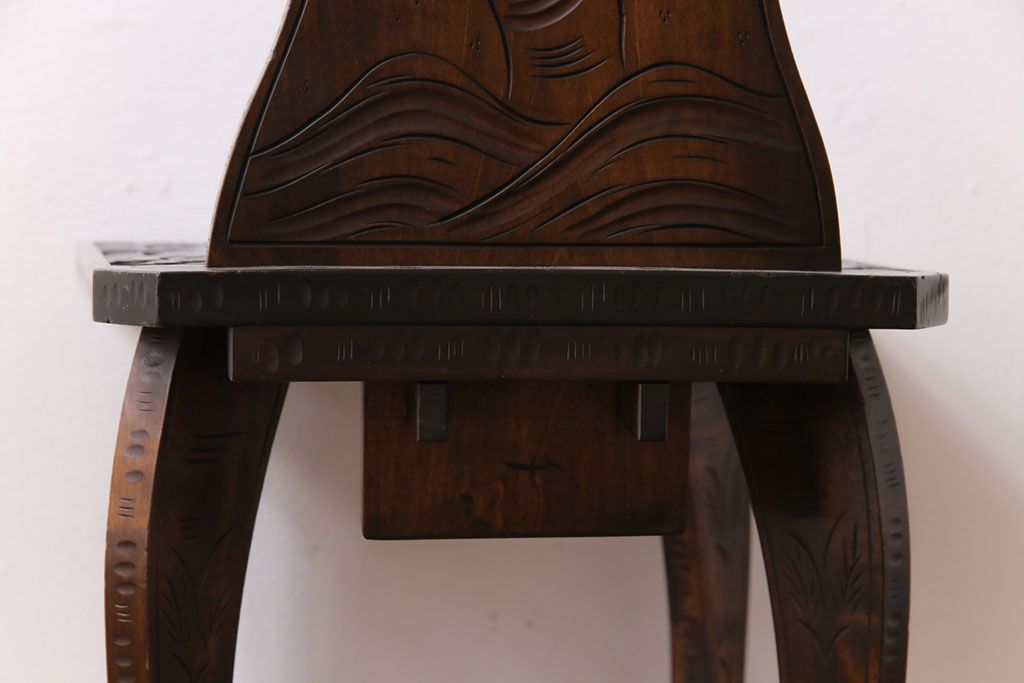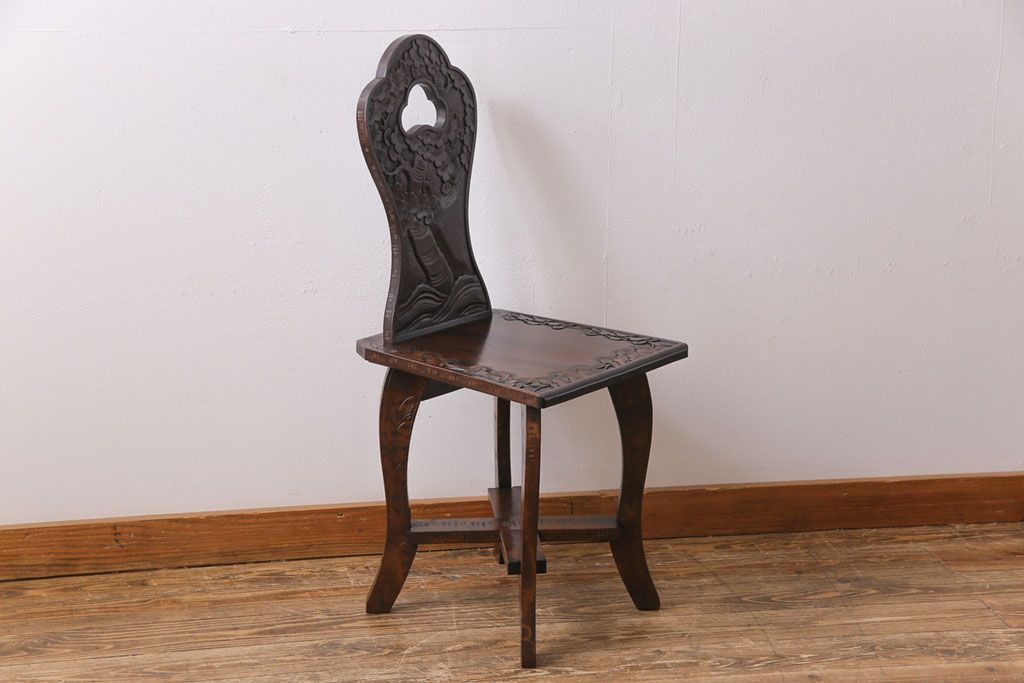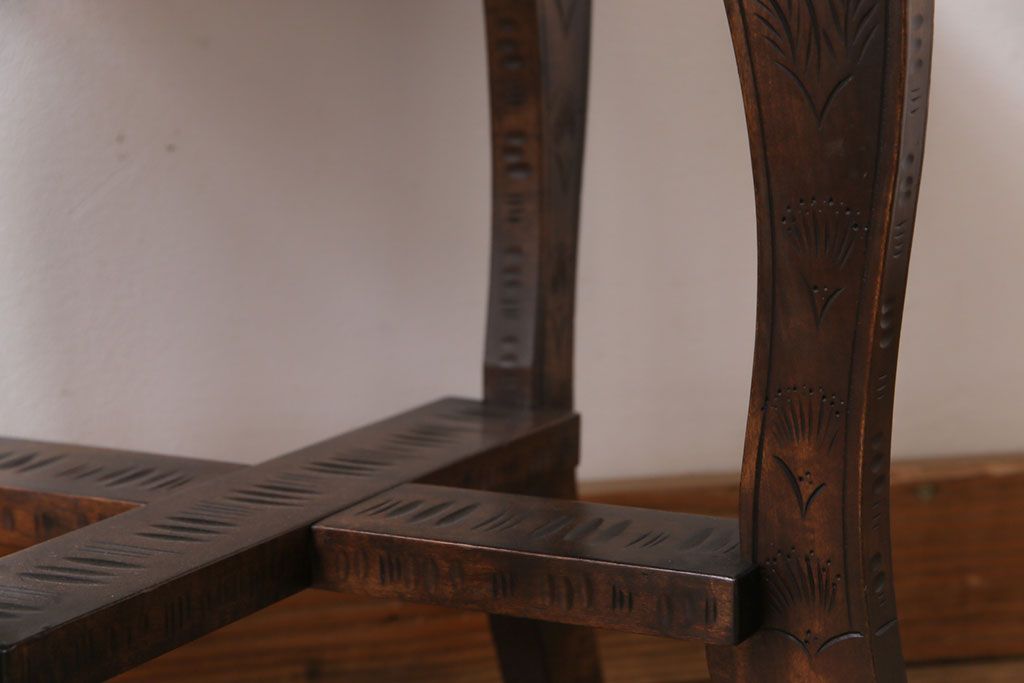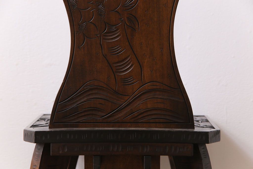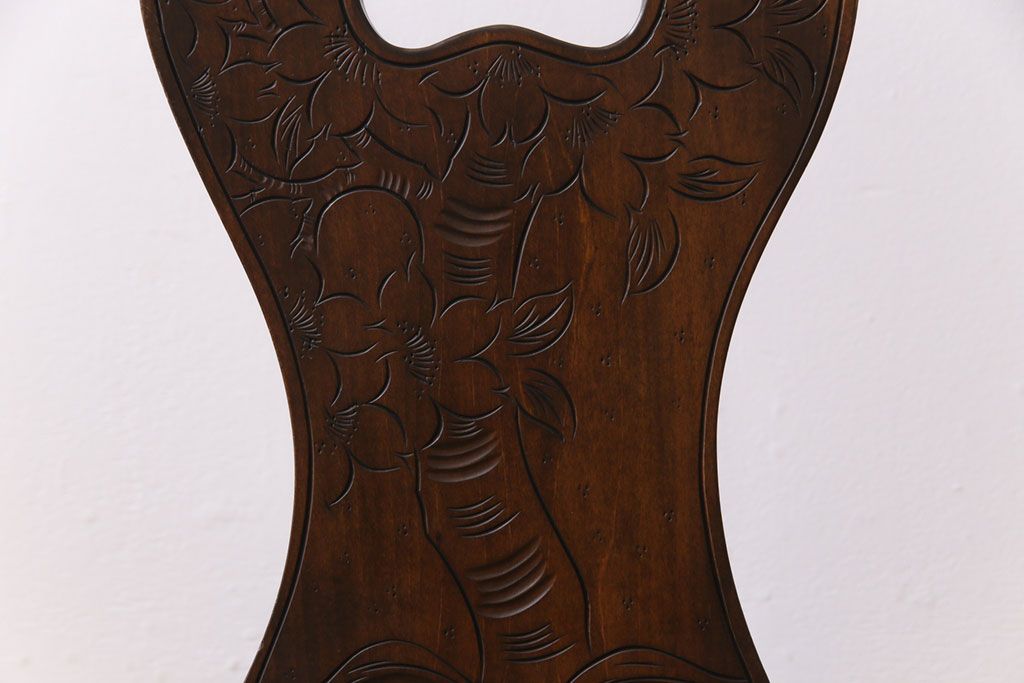 中古 伝統工芸 軽井沢彫り 華やかさが際立つダイニングチェア(1)