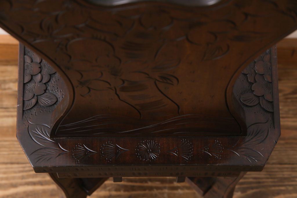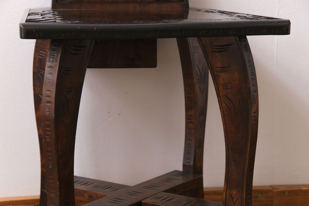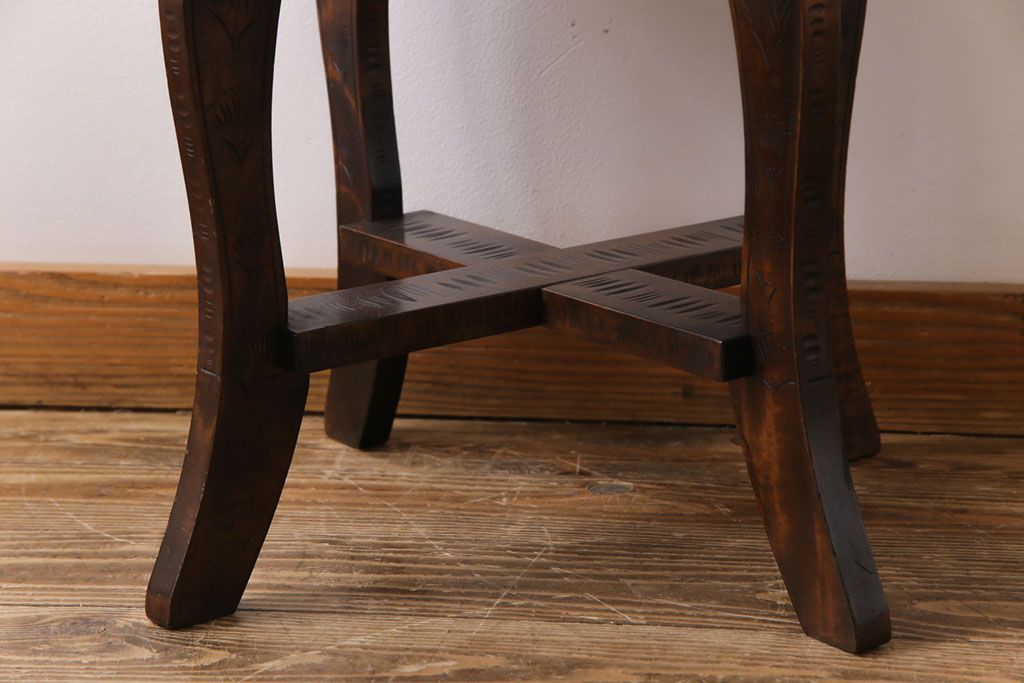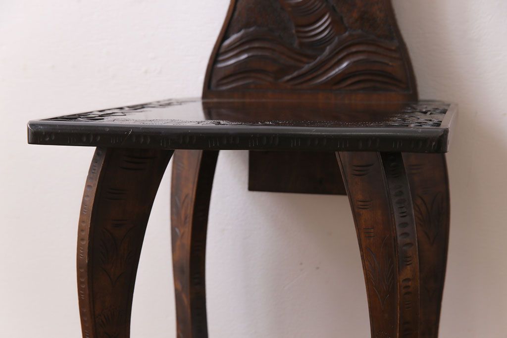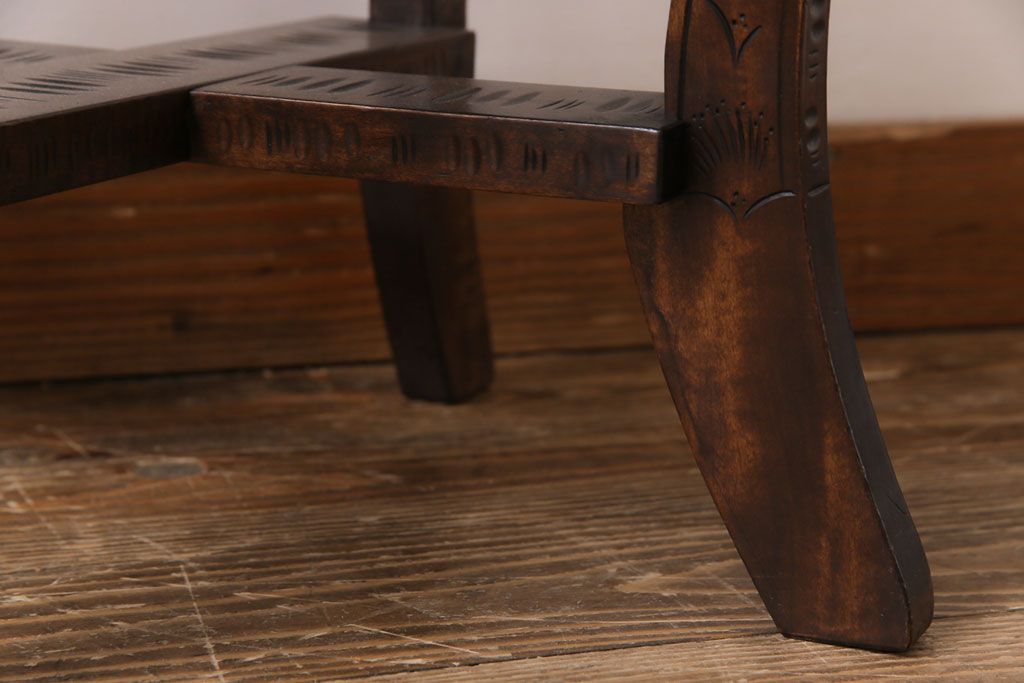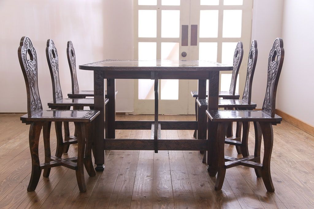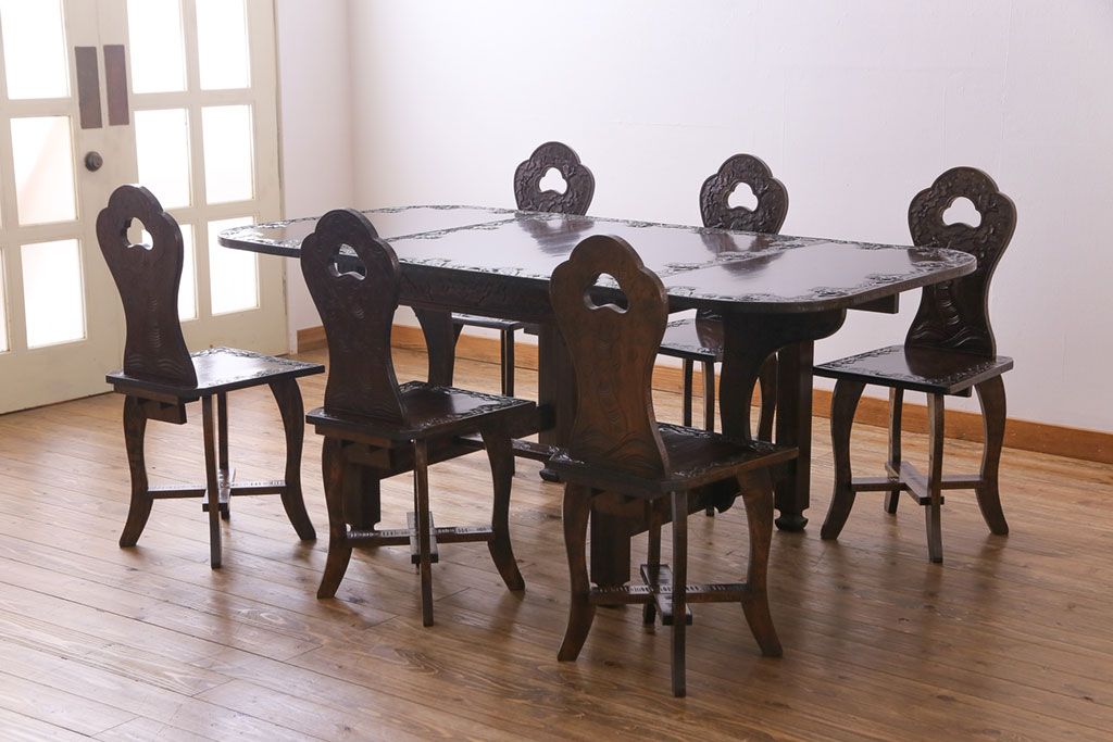 中古 伝統工芸 軽井沢彫り 華やかさが際立つダイニングチェア(1)