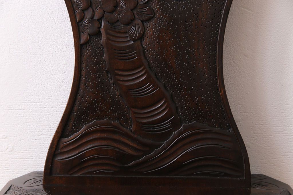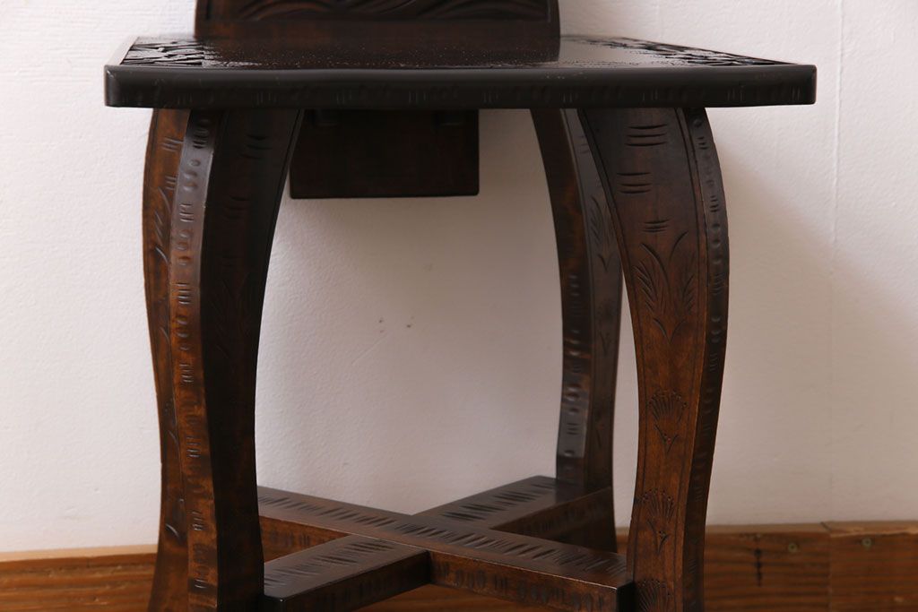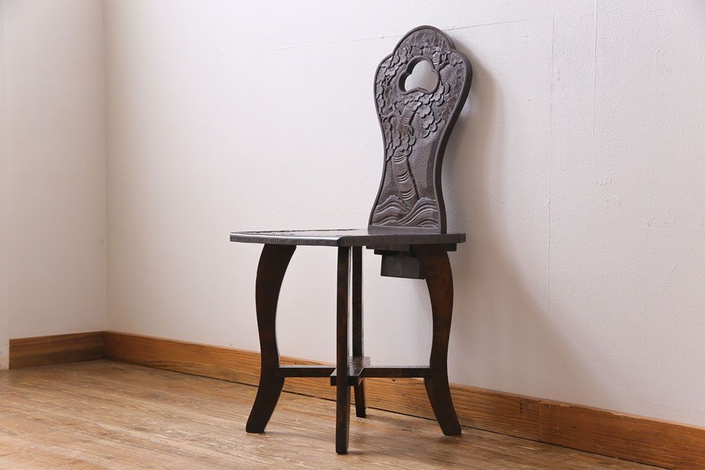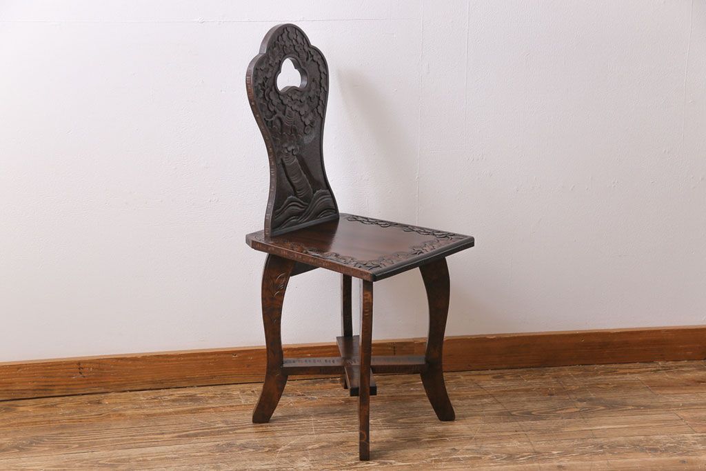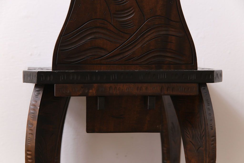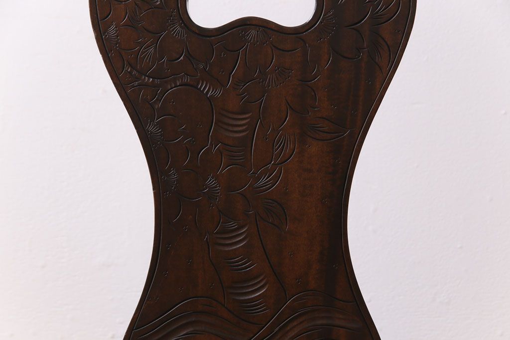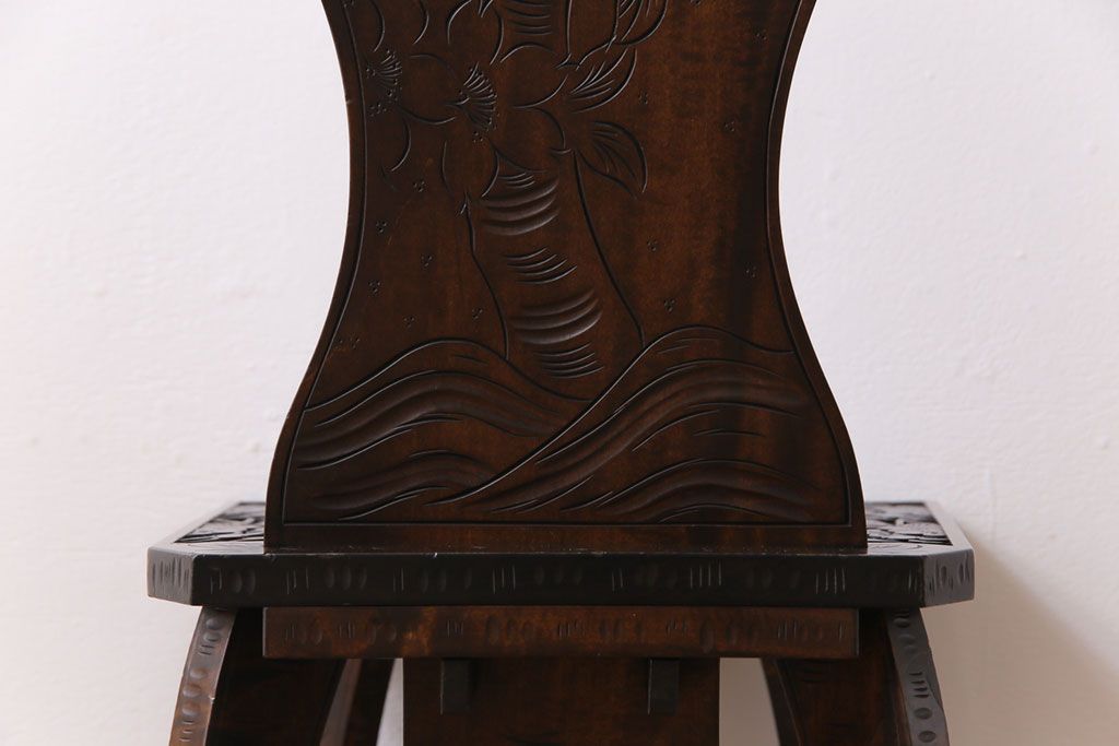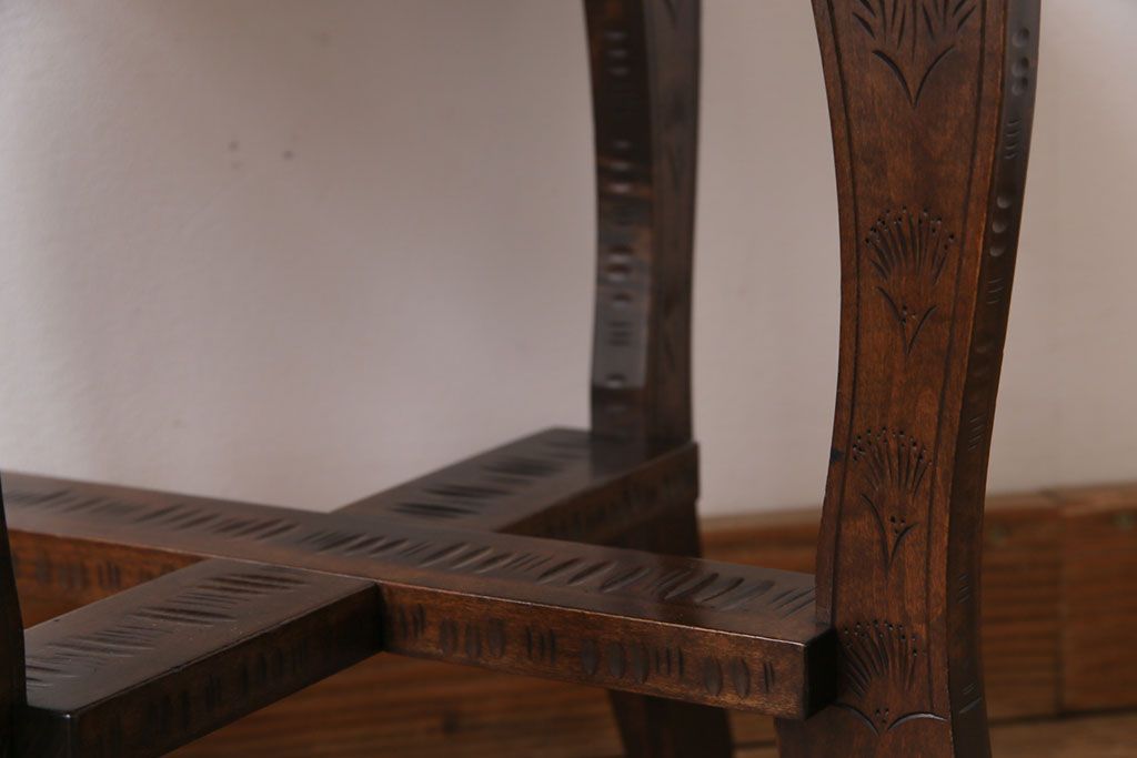 中古 伝統工芸 軽井沢彫り 華やかさが際立つダイニングチェア(2)