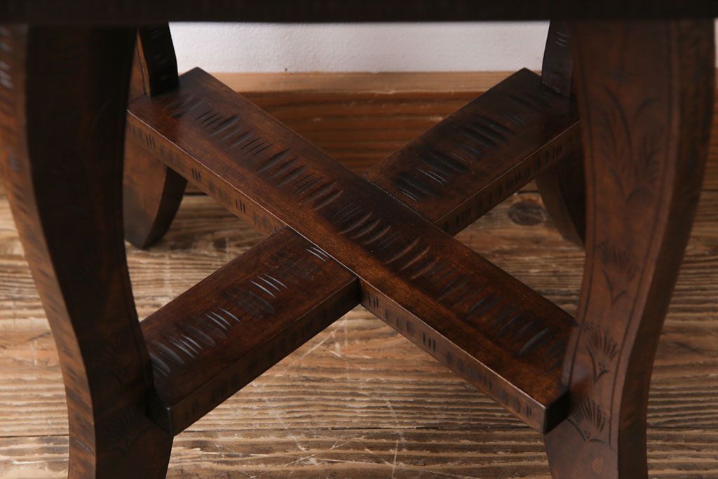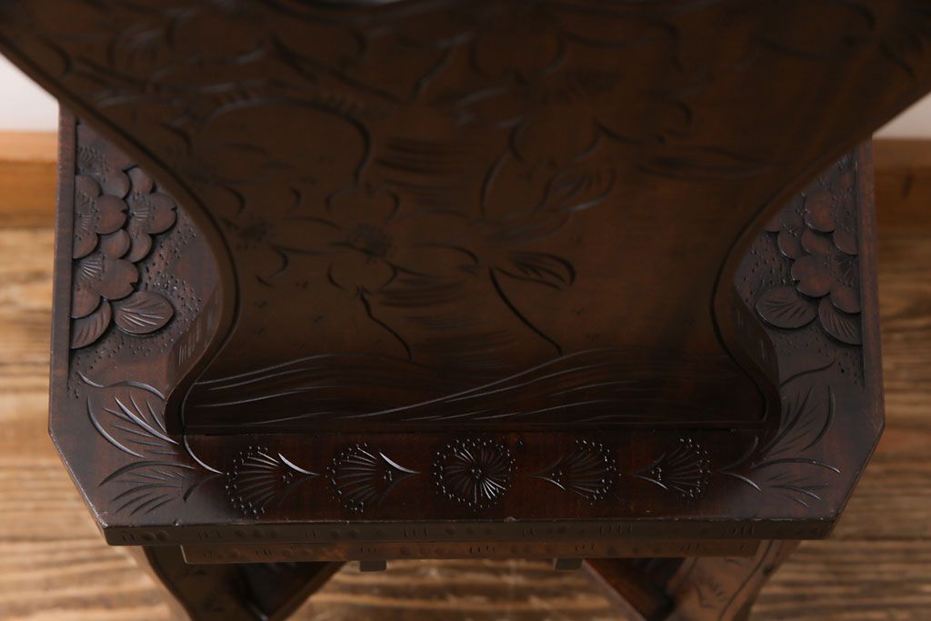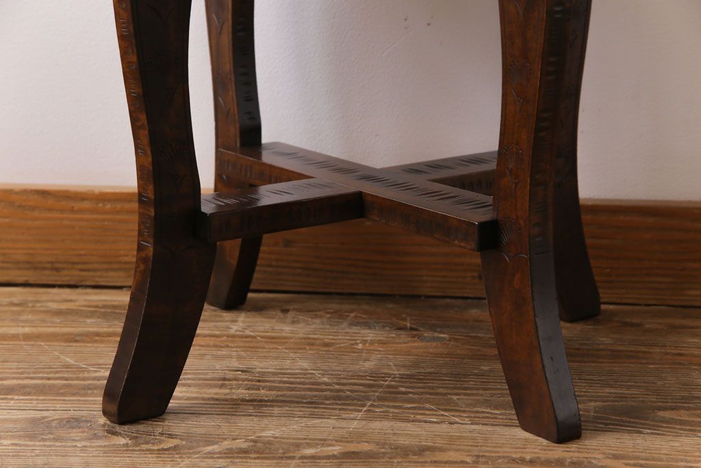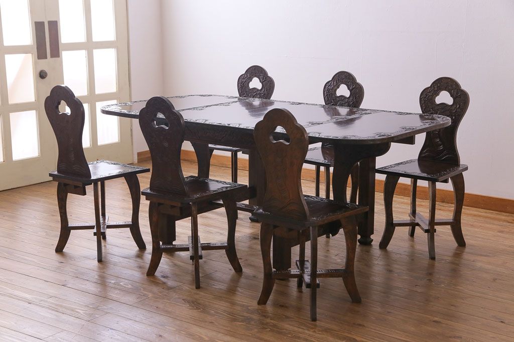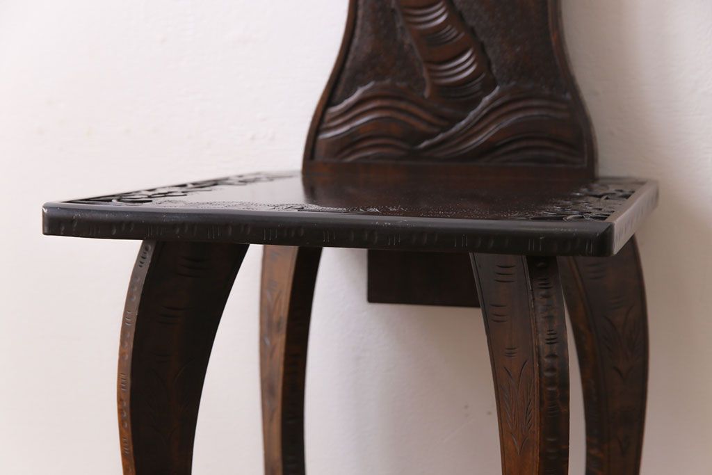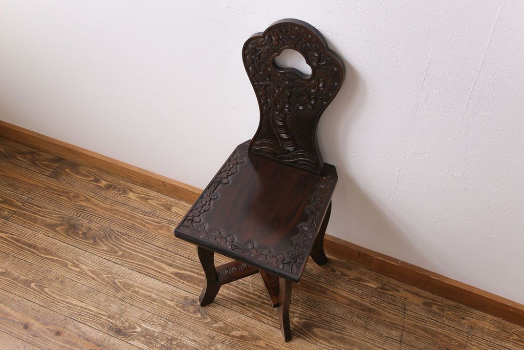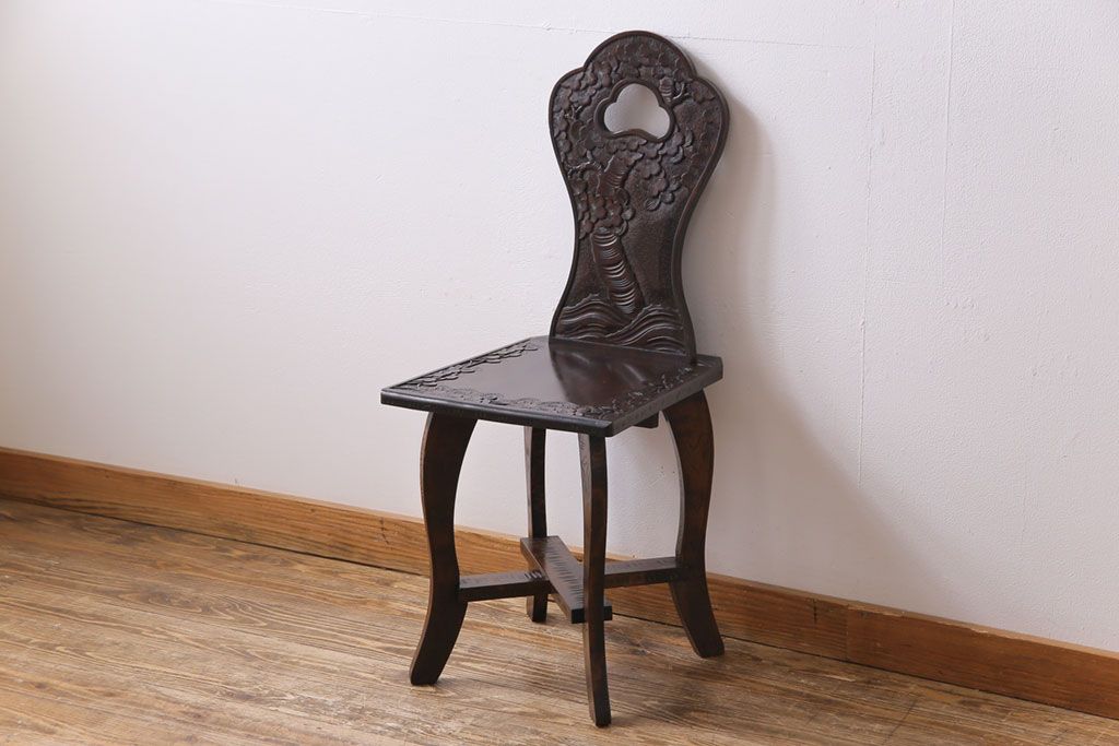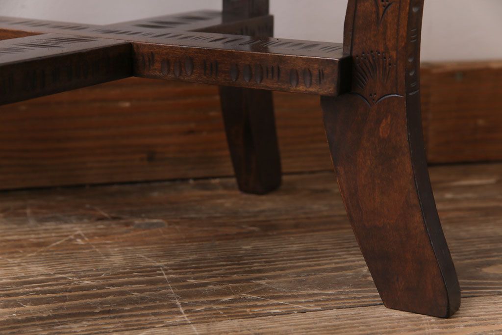 中古 伝統工芸 軽井沢彫り 華やかさが際立つダイニングチェア(2)