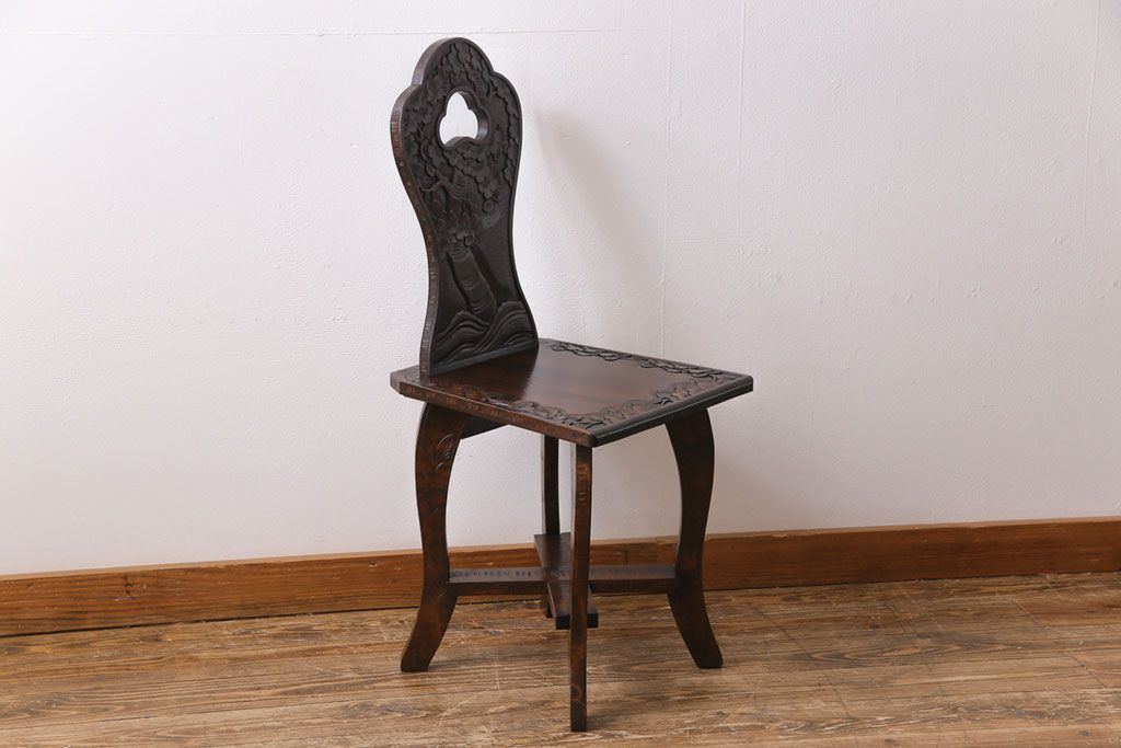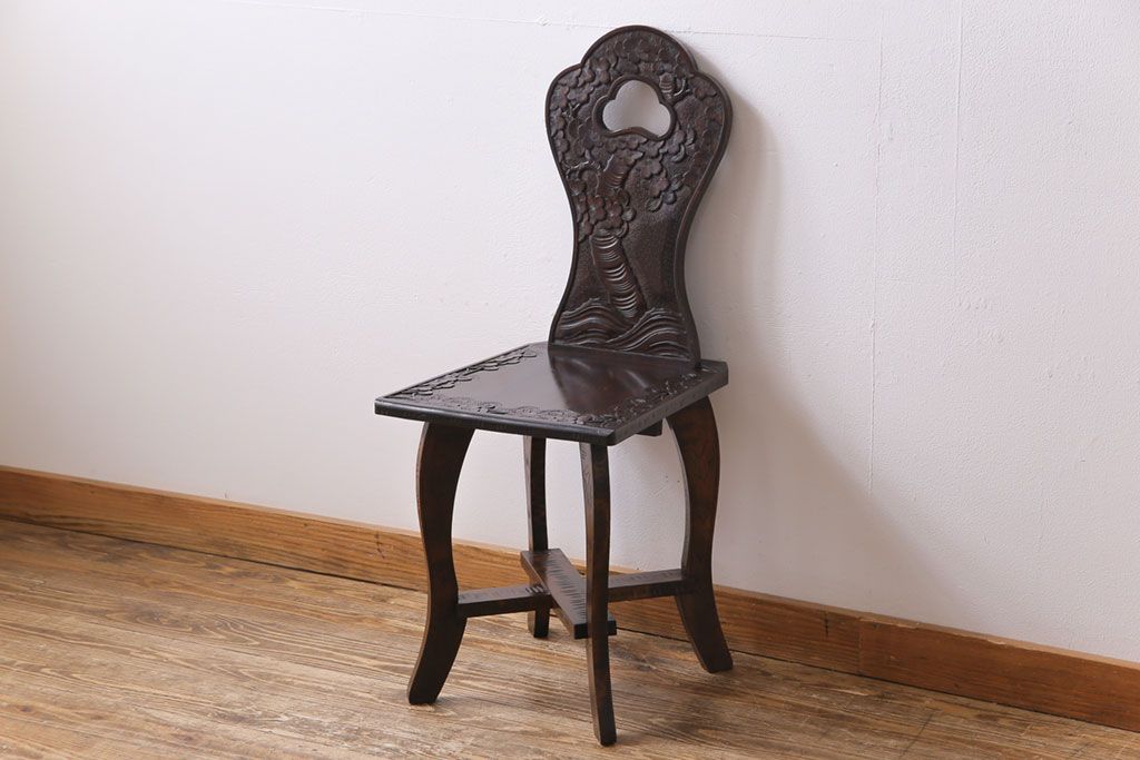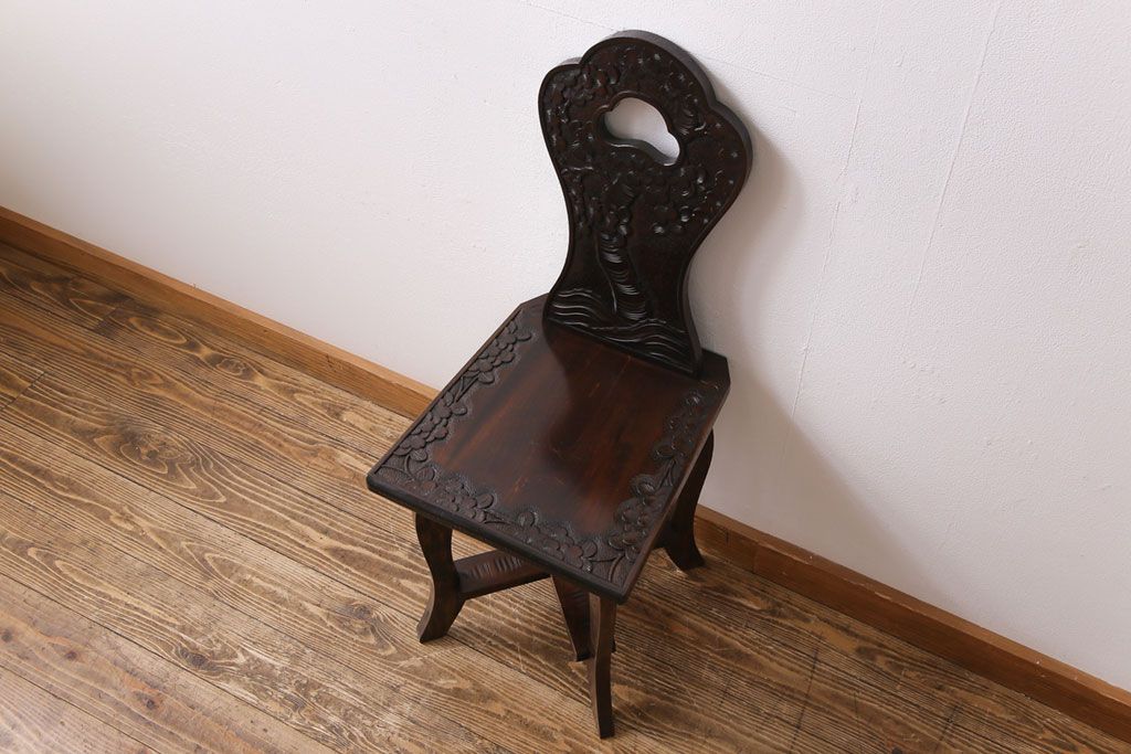 中古 伝統工芸 華やかさが際立つ軽井沢彫りのダイニングチェア(2)です。