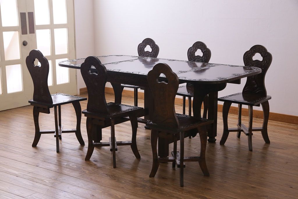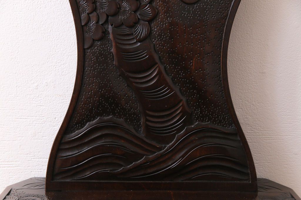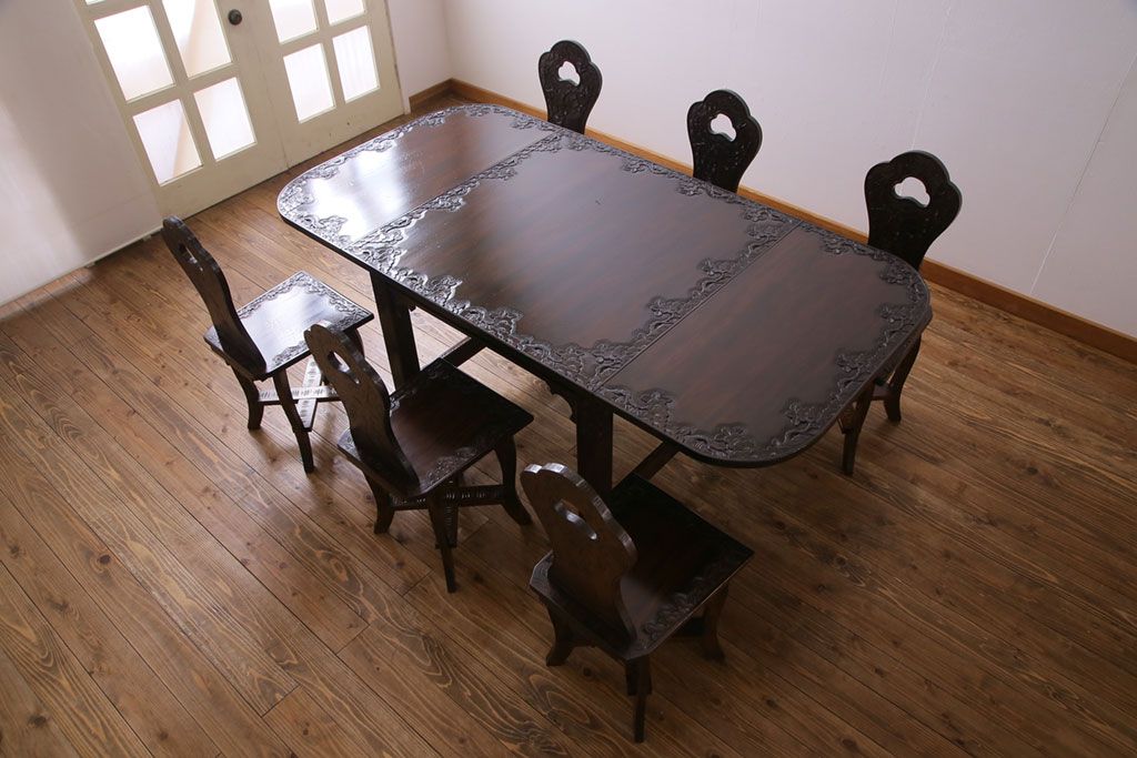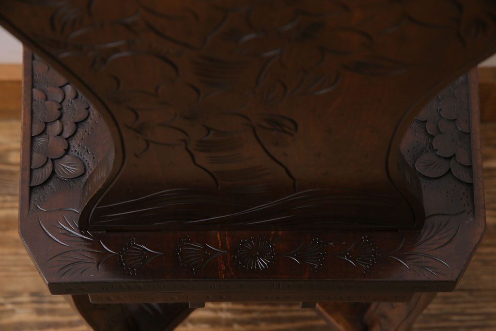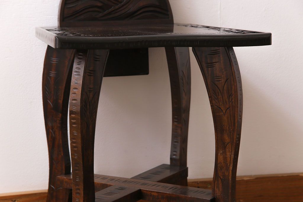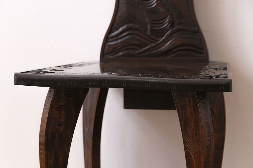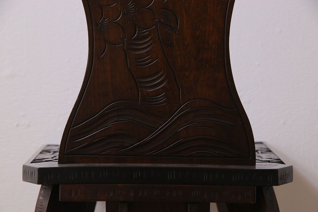 中古 伝統工芸 華やかさが際立つ軽井沢彫りのダイニングチェア(2)