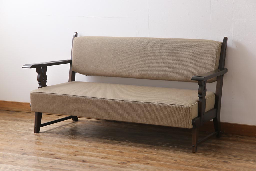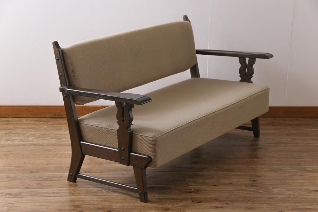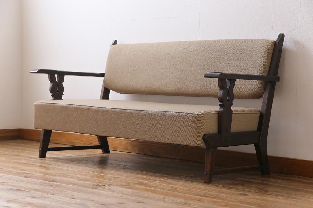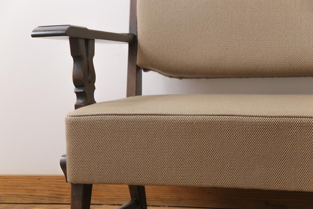中古 神戸洋家具 永田良介商店 上質なつくりが魅力的なチロル型ソファ(3人掛けソファ)