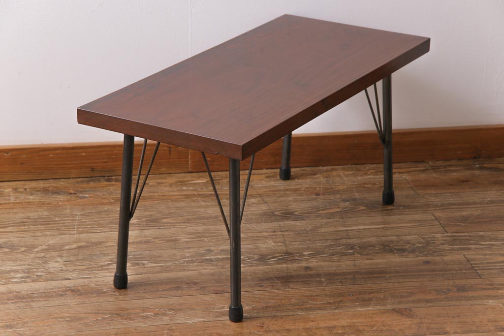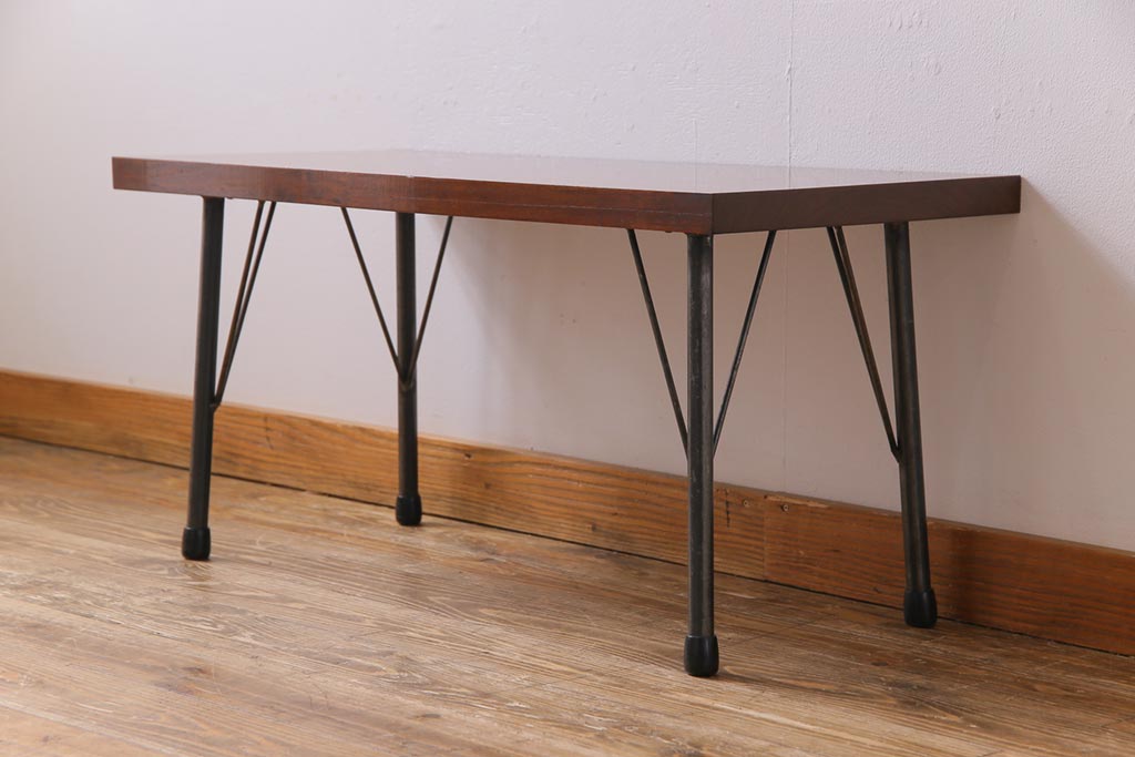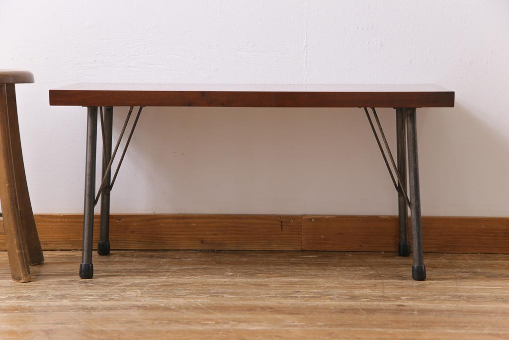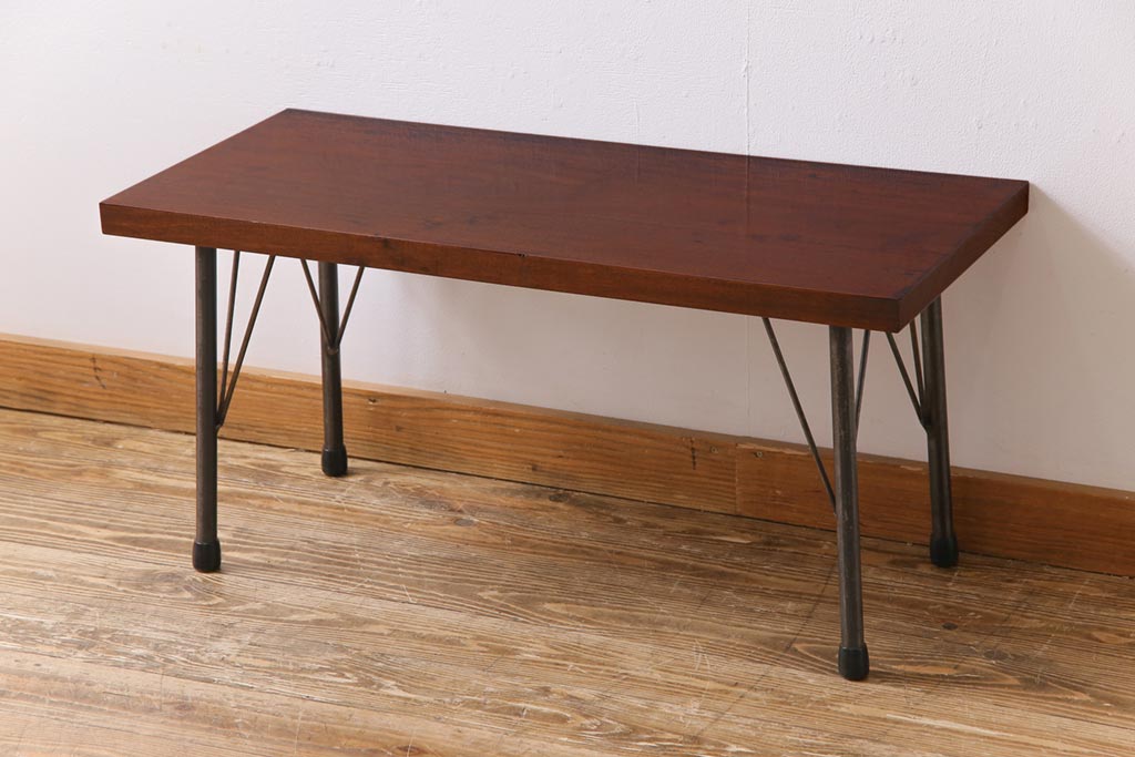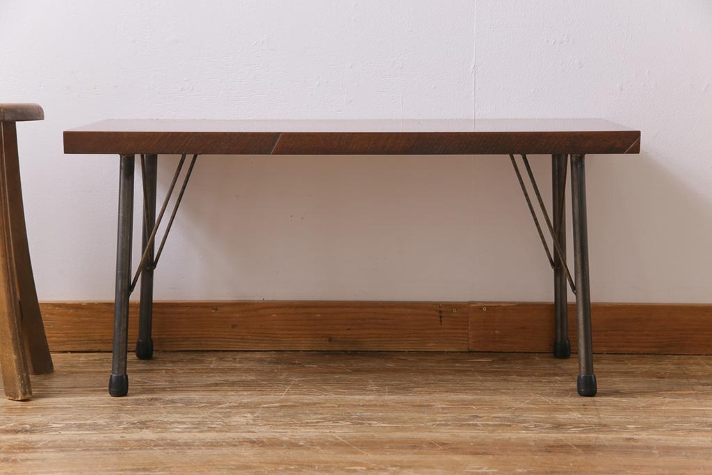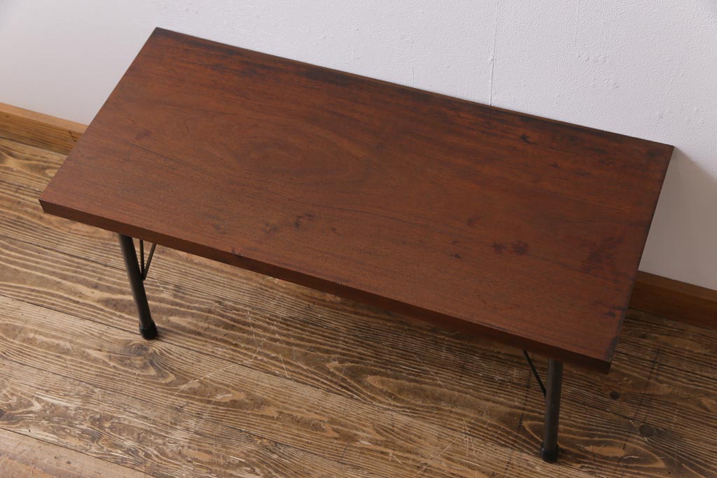 昭和中期 楠木材一枚板 シンプルなデザインが取り入れやすい鉄脚テーブル(サイドテーブル、ローテーブル、ベンチ)です。