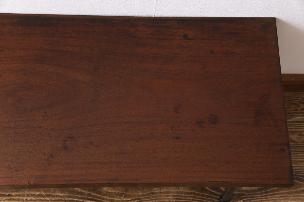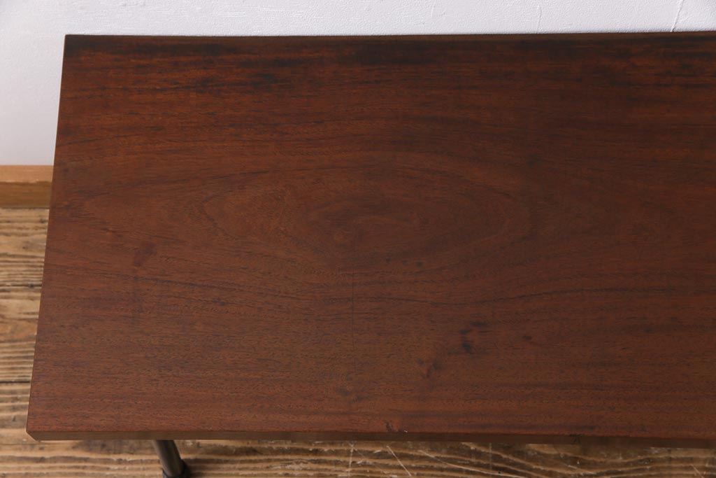 テーブル> サイドテーブル > アンティーク家具 昭和中期 楠木材一枚板 シンプルなデザインが取り入れやすい鉄脚テーブル(サイドテーブル、ローテーブル、ベンチ)