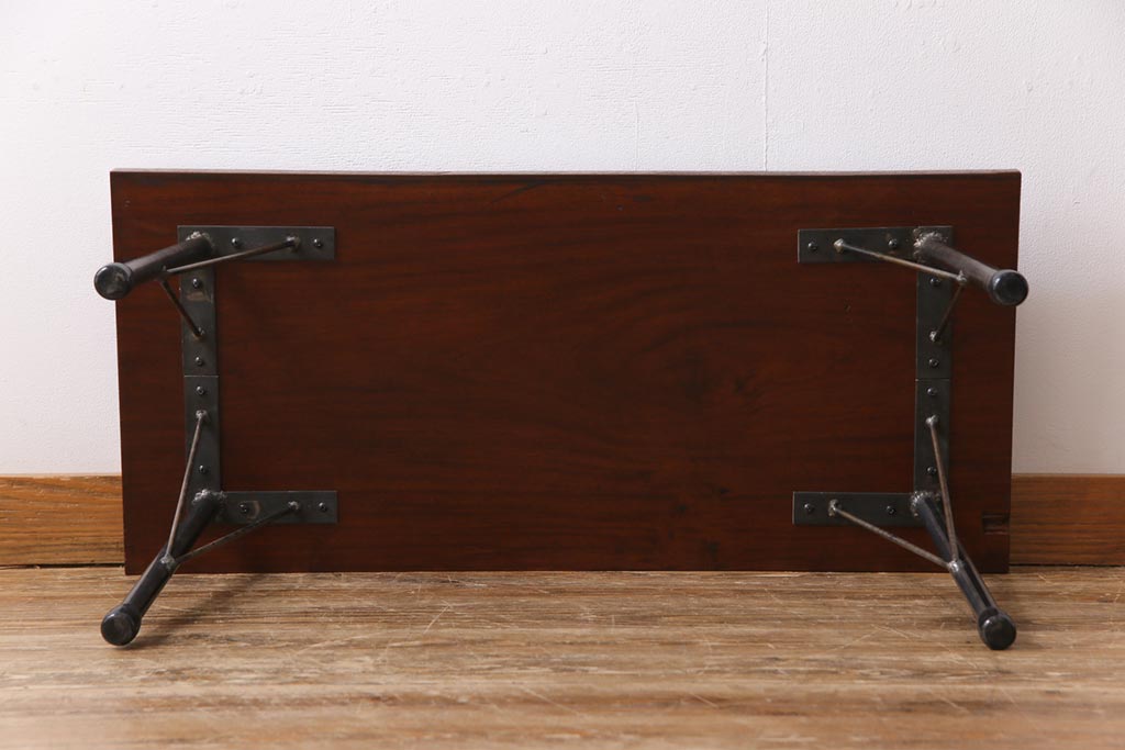 アンティーク家具 昭和中期 楠木材一枚板 シンプルなデザインが取り入れやすい鉄脚テーブル(サイドテーブル、ローテーブル、ベンチ)