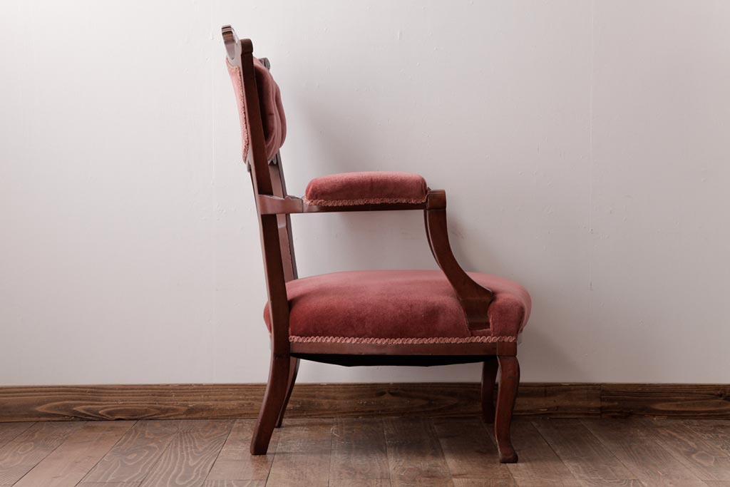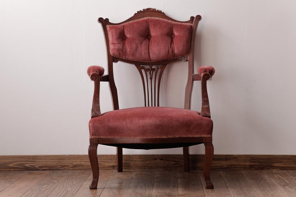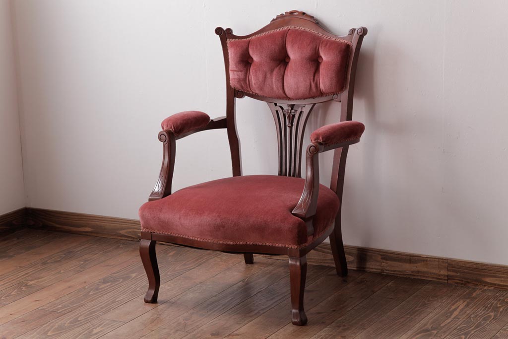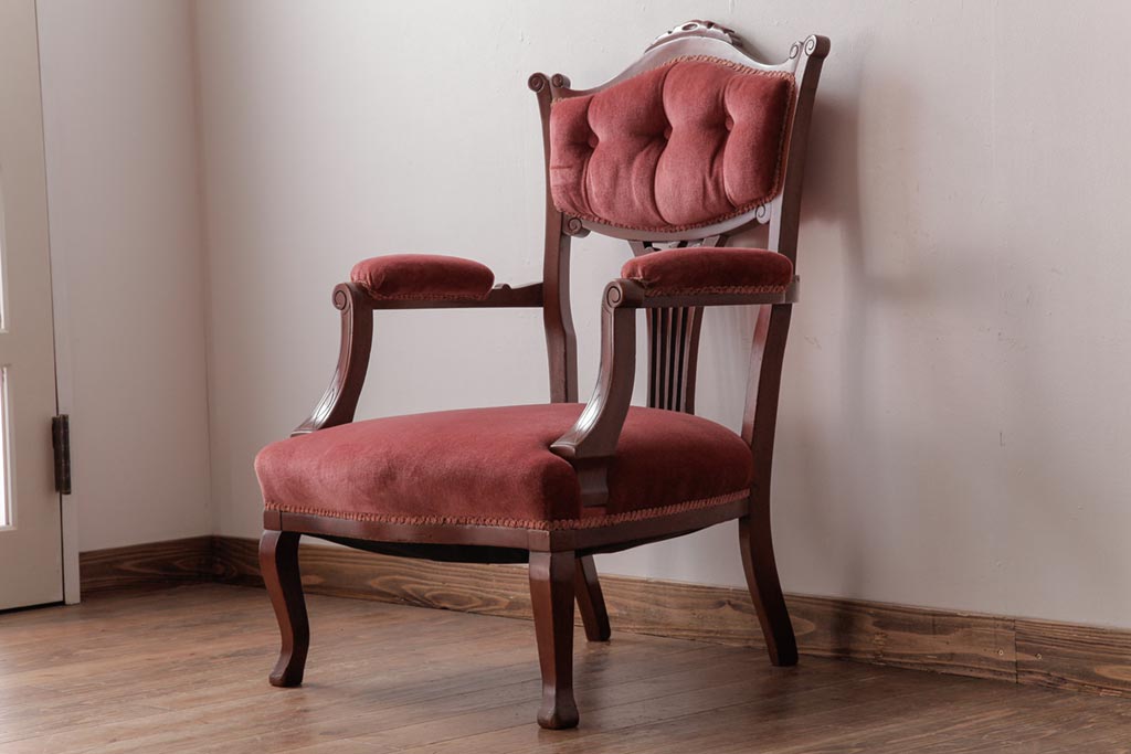 アンティーク家具 フランスアンティーク マホガニー材 チッペンデール様式 優雅な佇まいのアームチェア(1人掛けソファ)