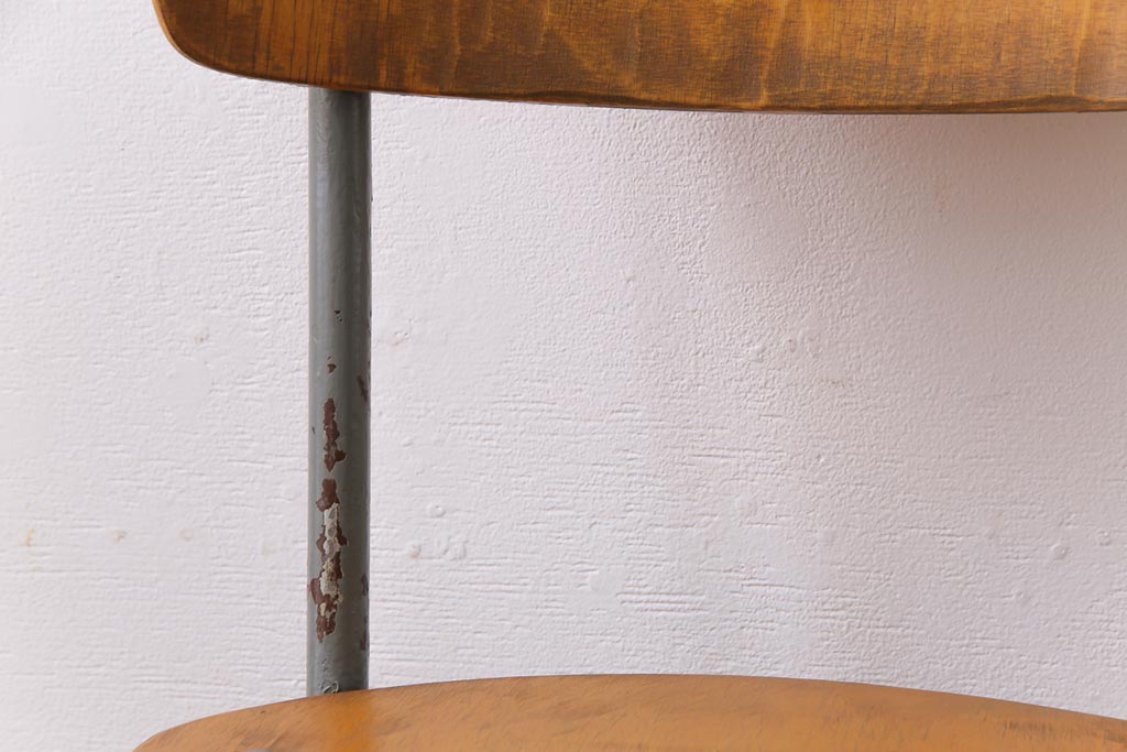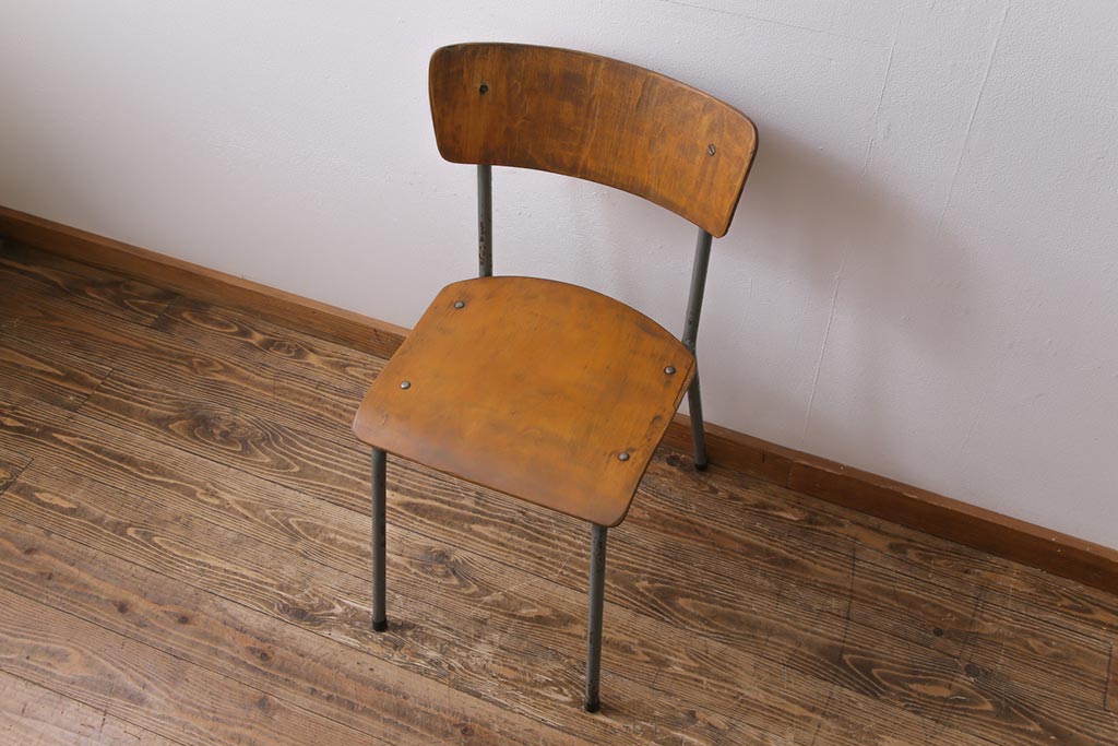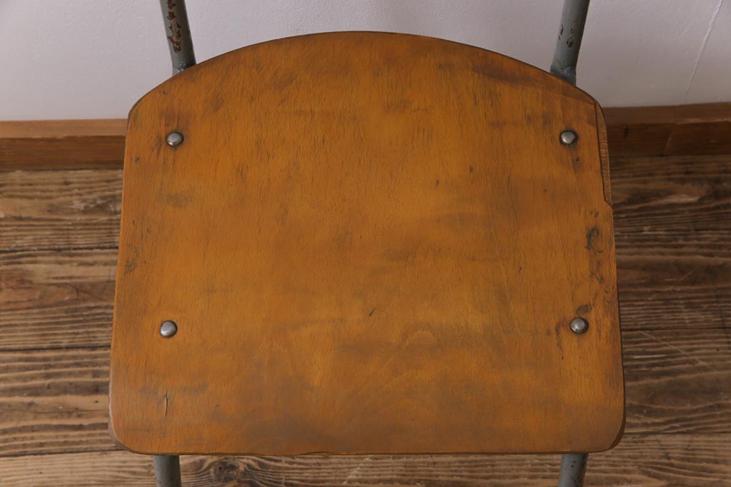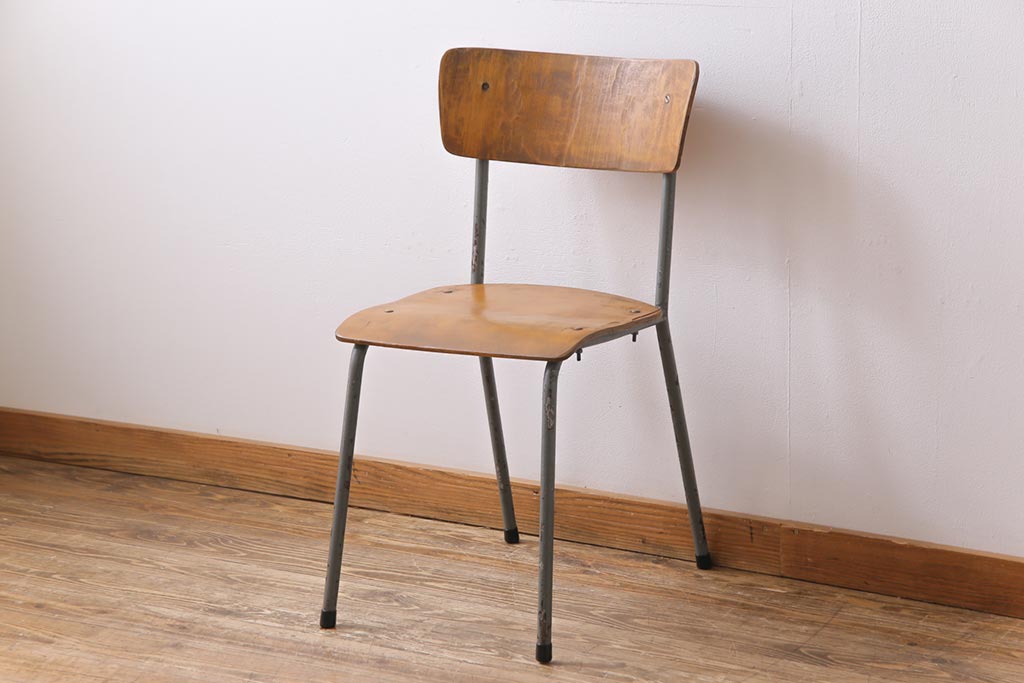ヴィンテージ家具 イギリスビンテージ ジャンク感が楽しめる使い込まれたスクールチェア(ワークチェア、板座チェア)(2)