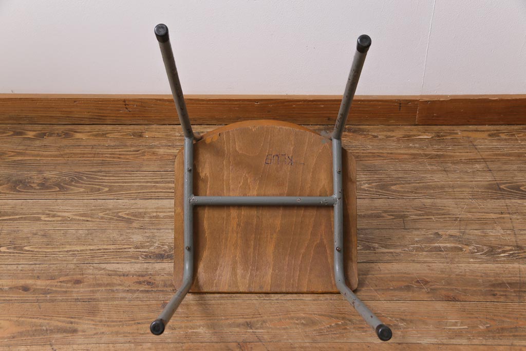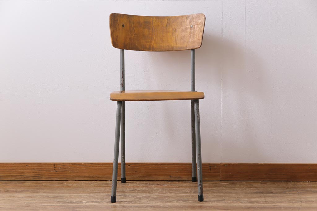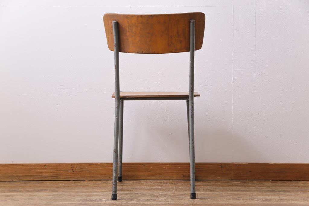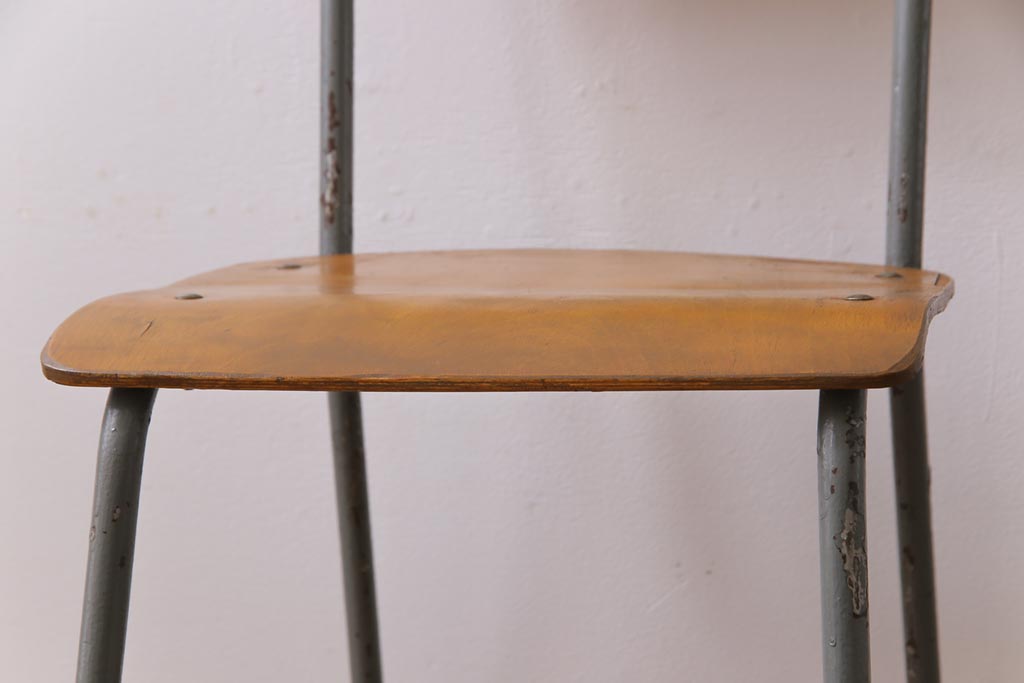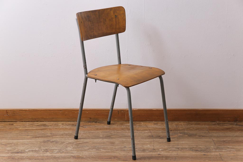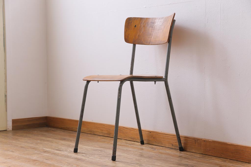 イギリスビンテージ ジャンク感が楽しめる使い込まれたスクールチェア(ワークチェア、板座チェア)(2)です。