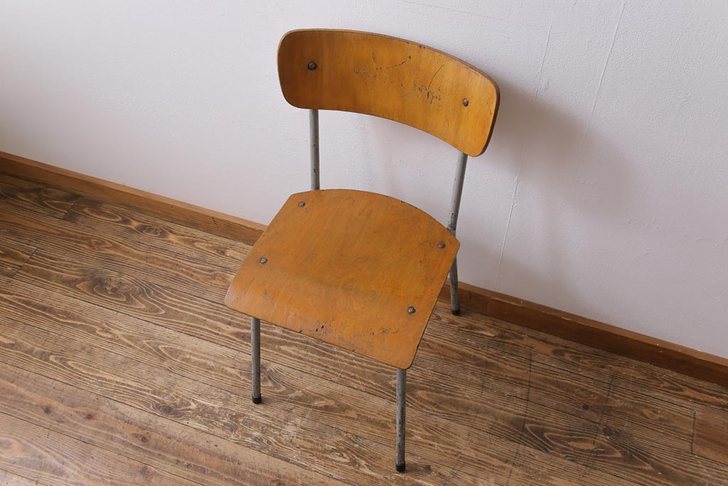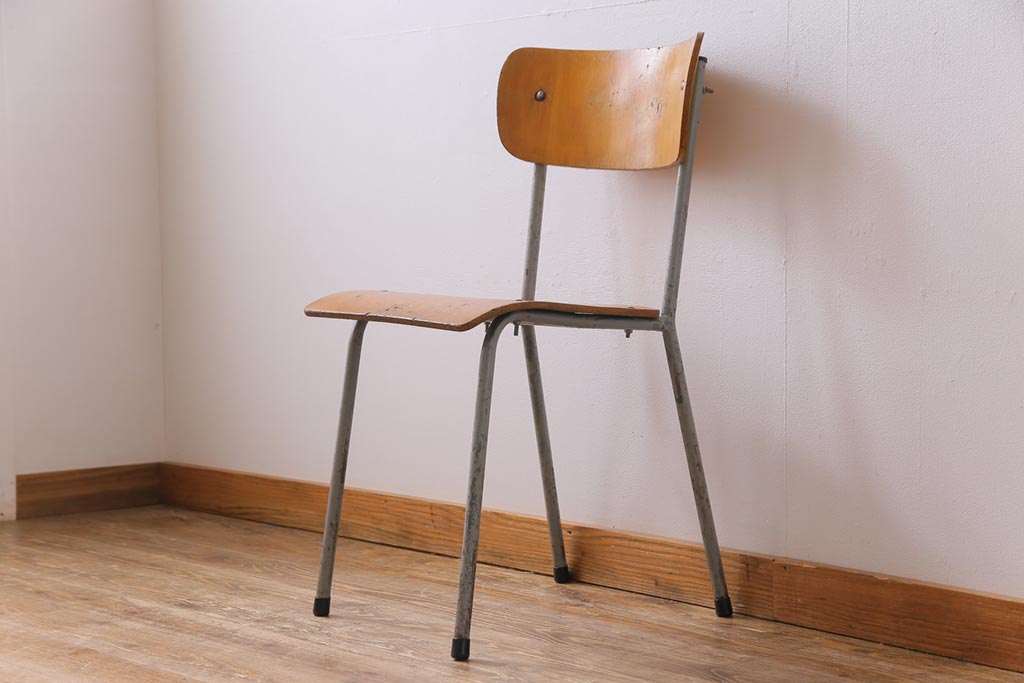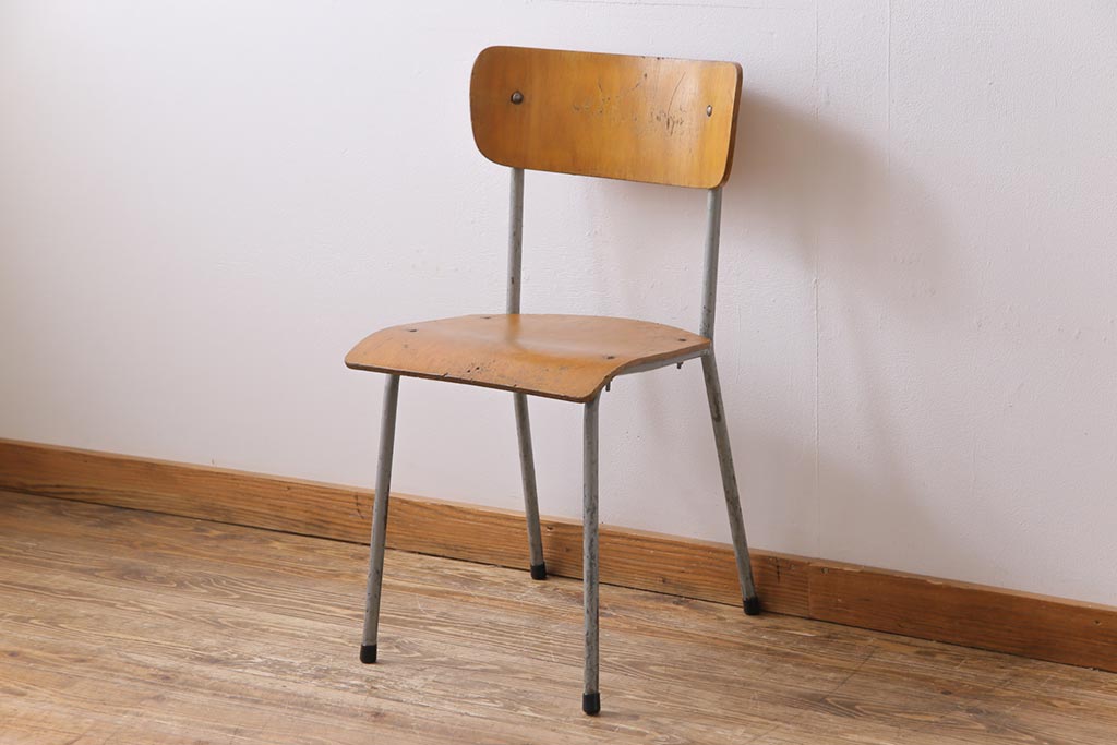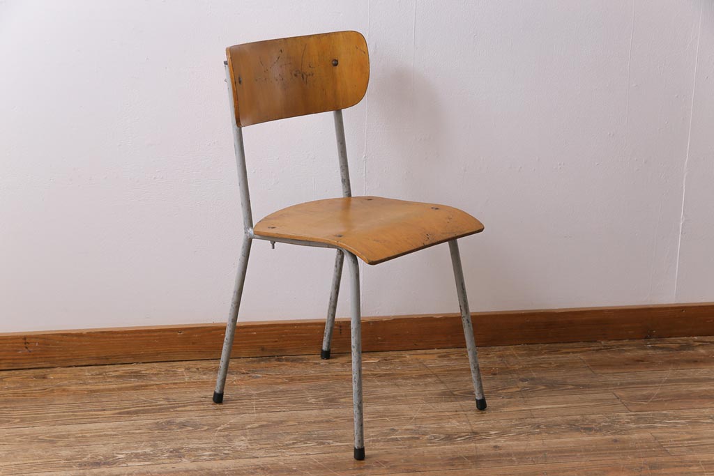 ヴィンテージ家具 イギリスビンテージ ジャンク感が楽しめる使い込まれたスクールチェア(ワークチェア、板座チェア)(1)