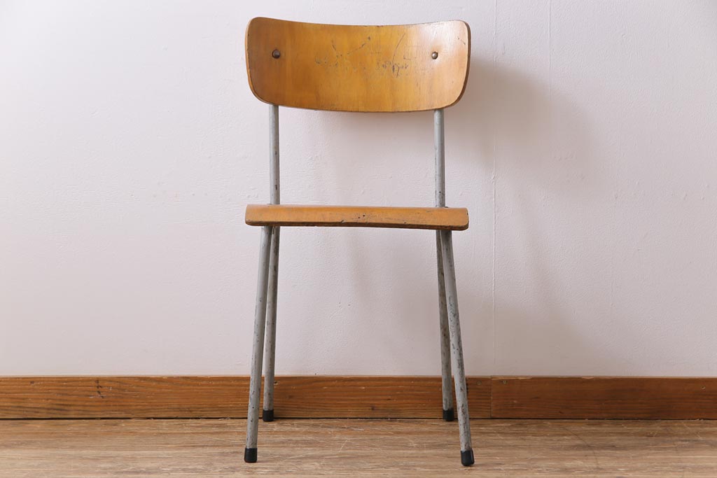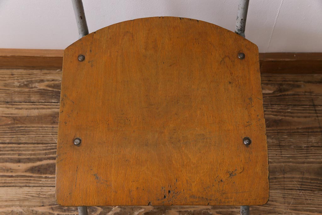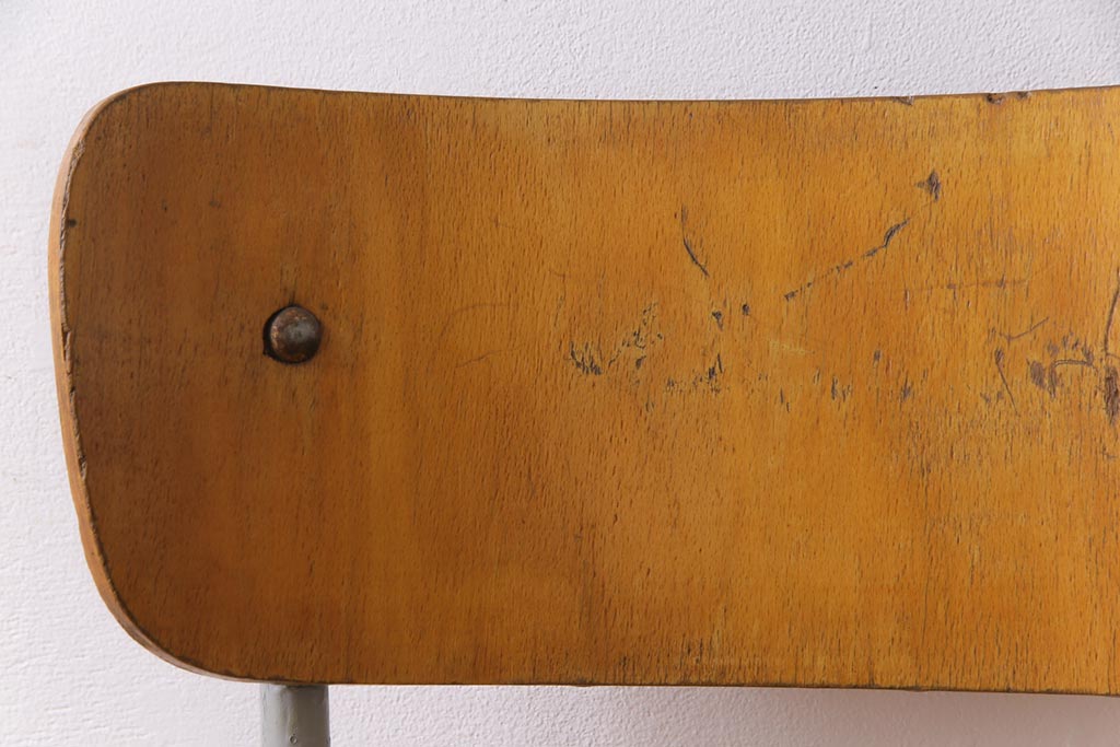 イギリスビンテージ ジャンク感が楽しめる使い込まれたスクールチェア(ワークチェア、板座チェア)(1)です。