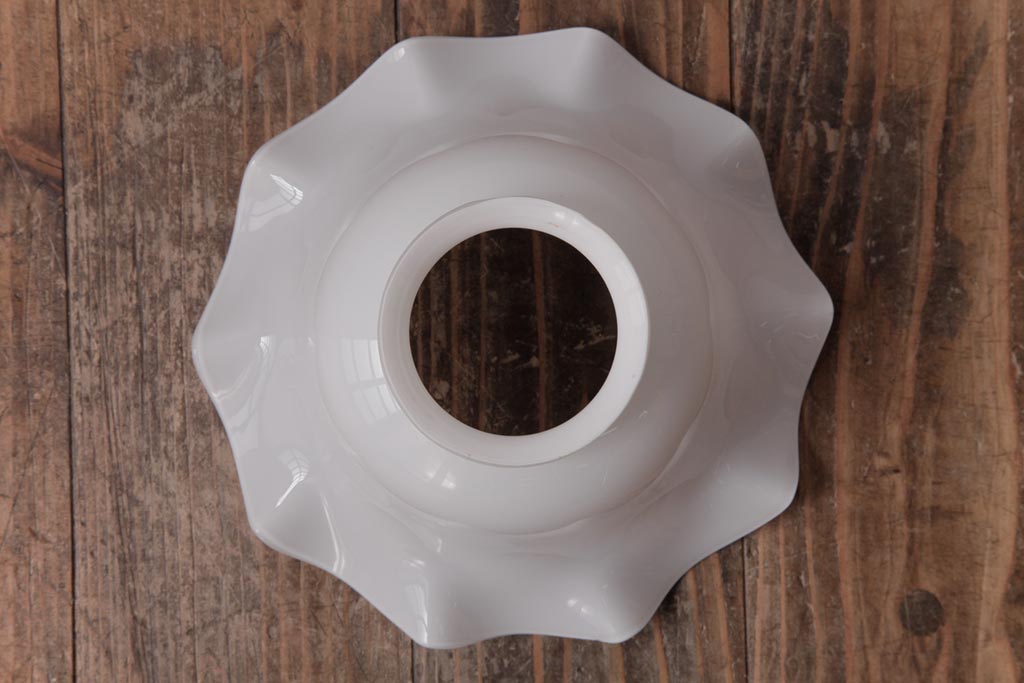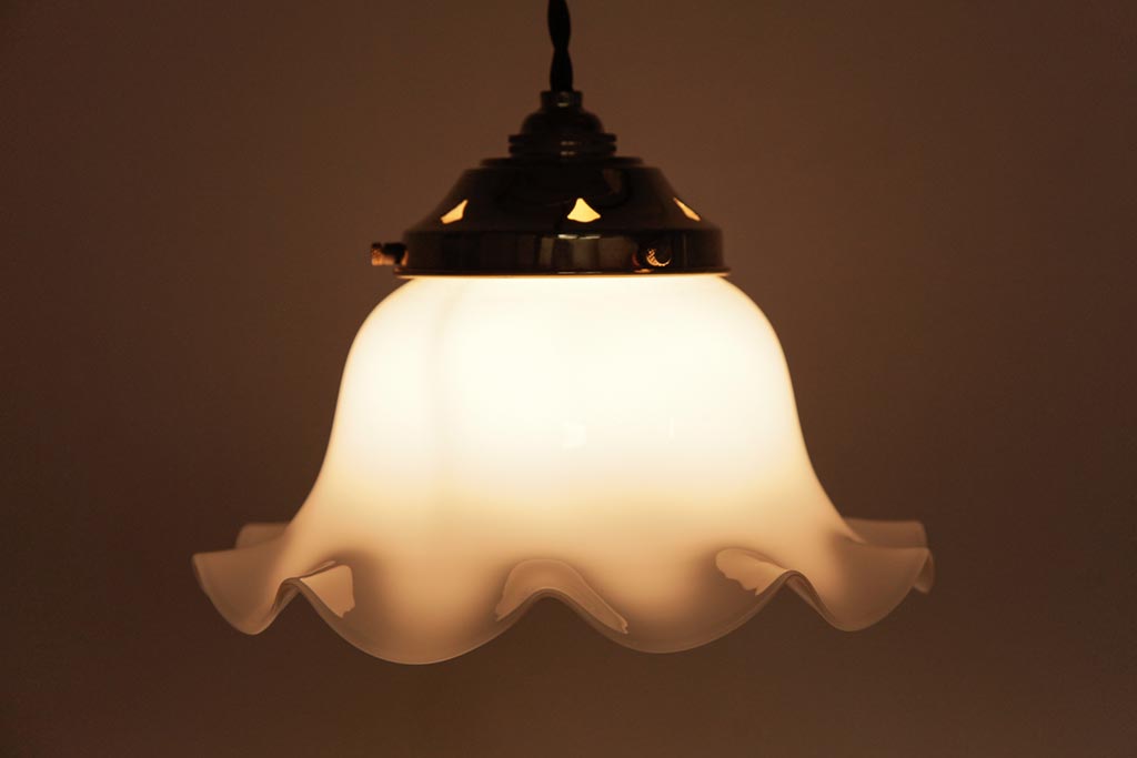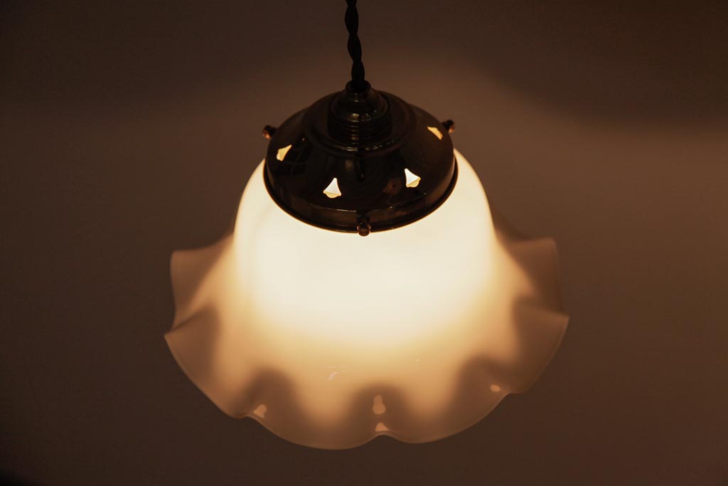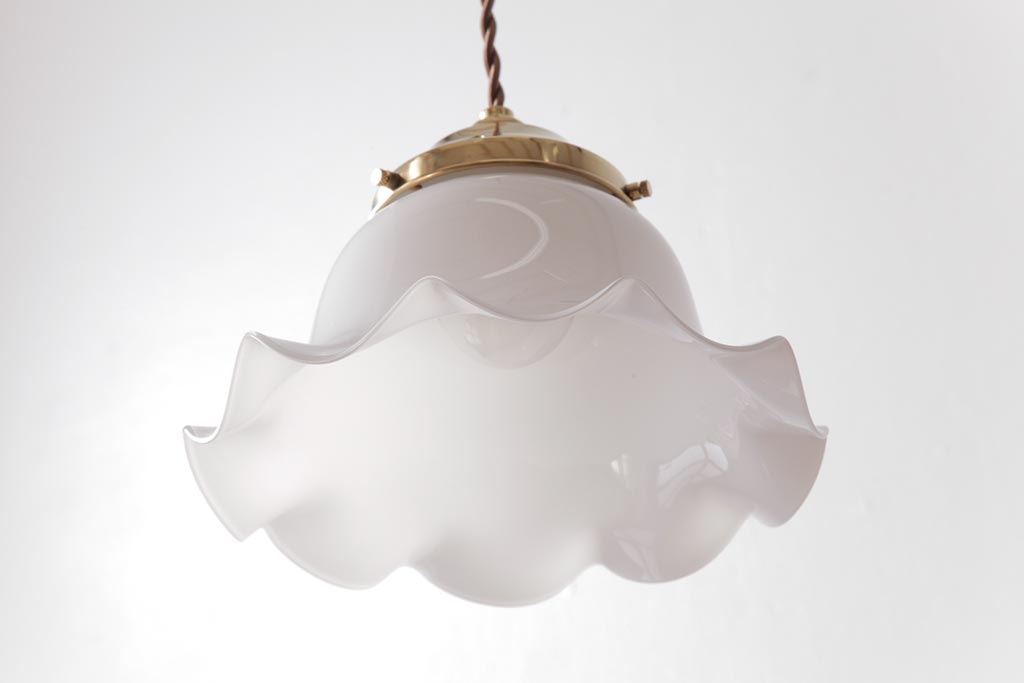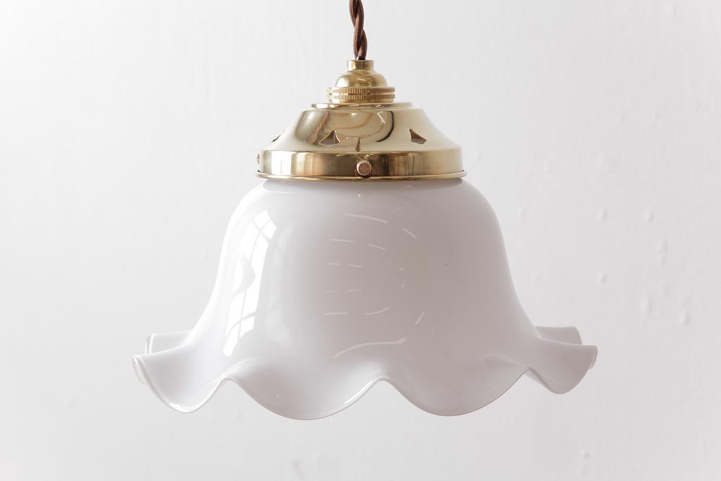ビンテージ 白ガラス フリルシェードが可愛らしいペンダントライト(天井照明)
