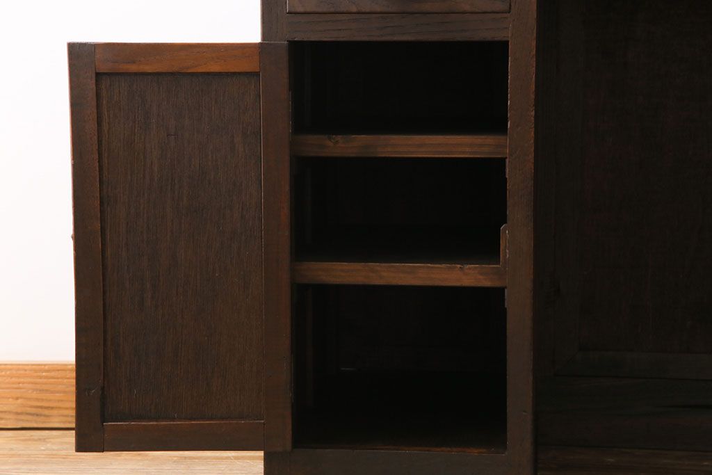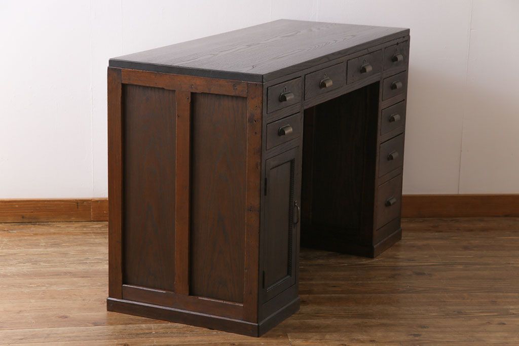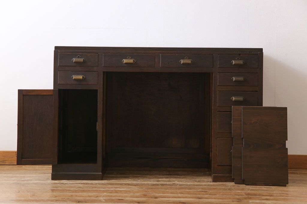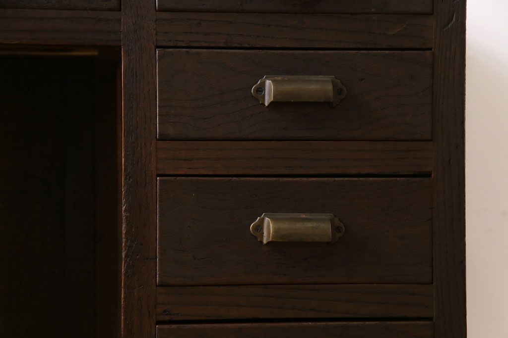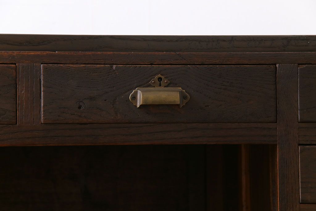 ラフジュ工房> 店舗什器 > アンティーク家具 和製アンティーク 栗材 重厚な佇まいが存在感を放つ薄型の両袖机(デスク、在宅ワーク、在宅用作業台、カウンターテーブル)