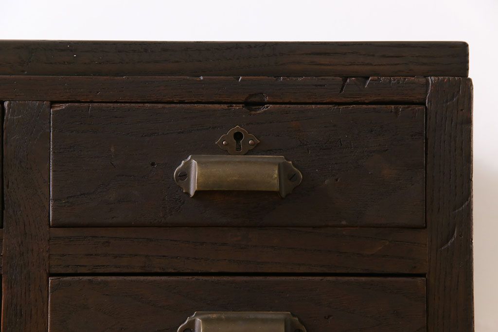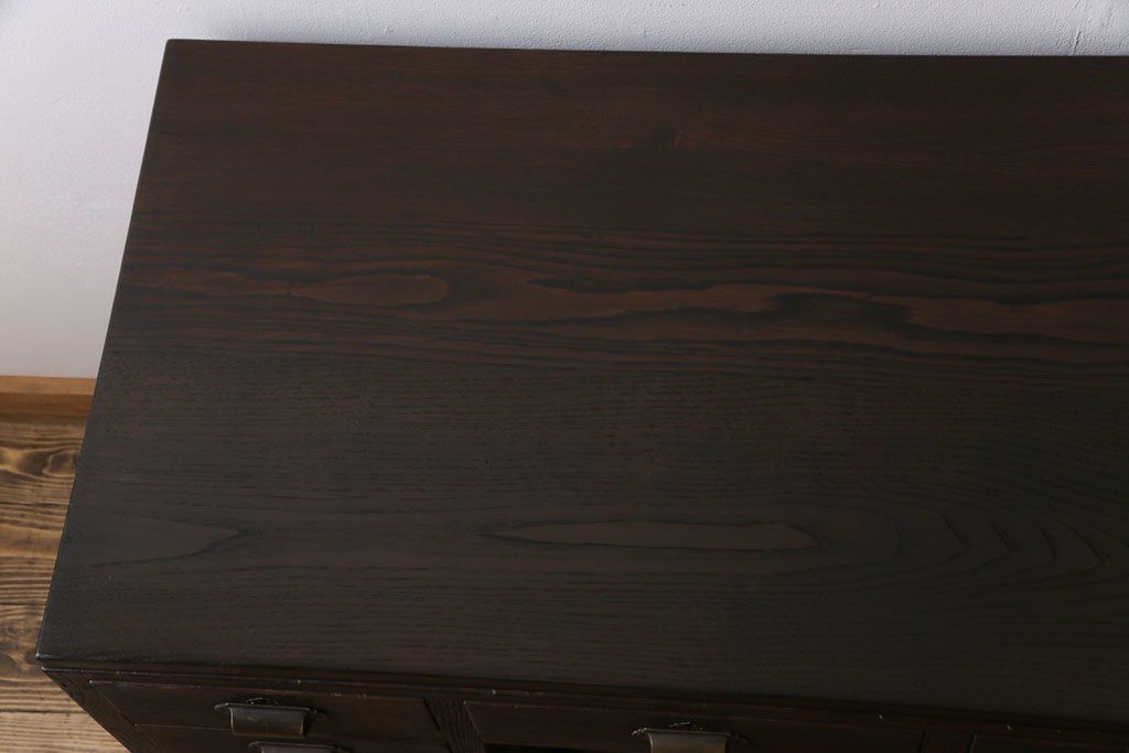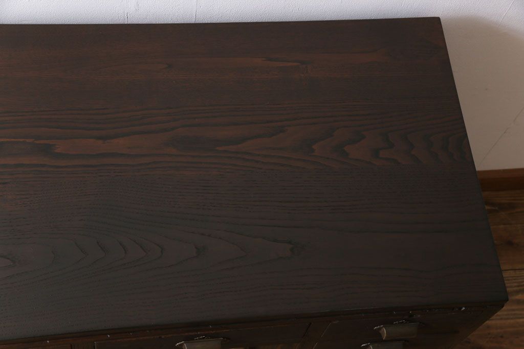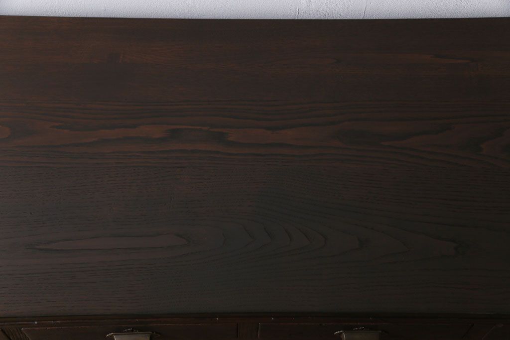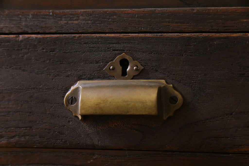 ラフジュ工房> 店舗什器 > アンティーク家具 和製アンティーク 栗材 重厚な佇まいが存在感を放つ薄型の両袖机(デスク、在宅ワーク、在宅用作業台、カウンターテーブル)